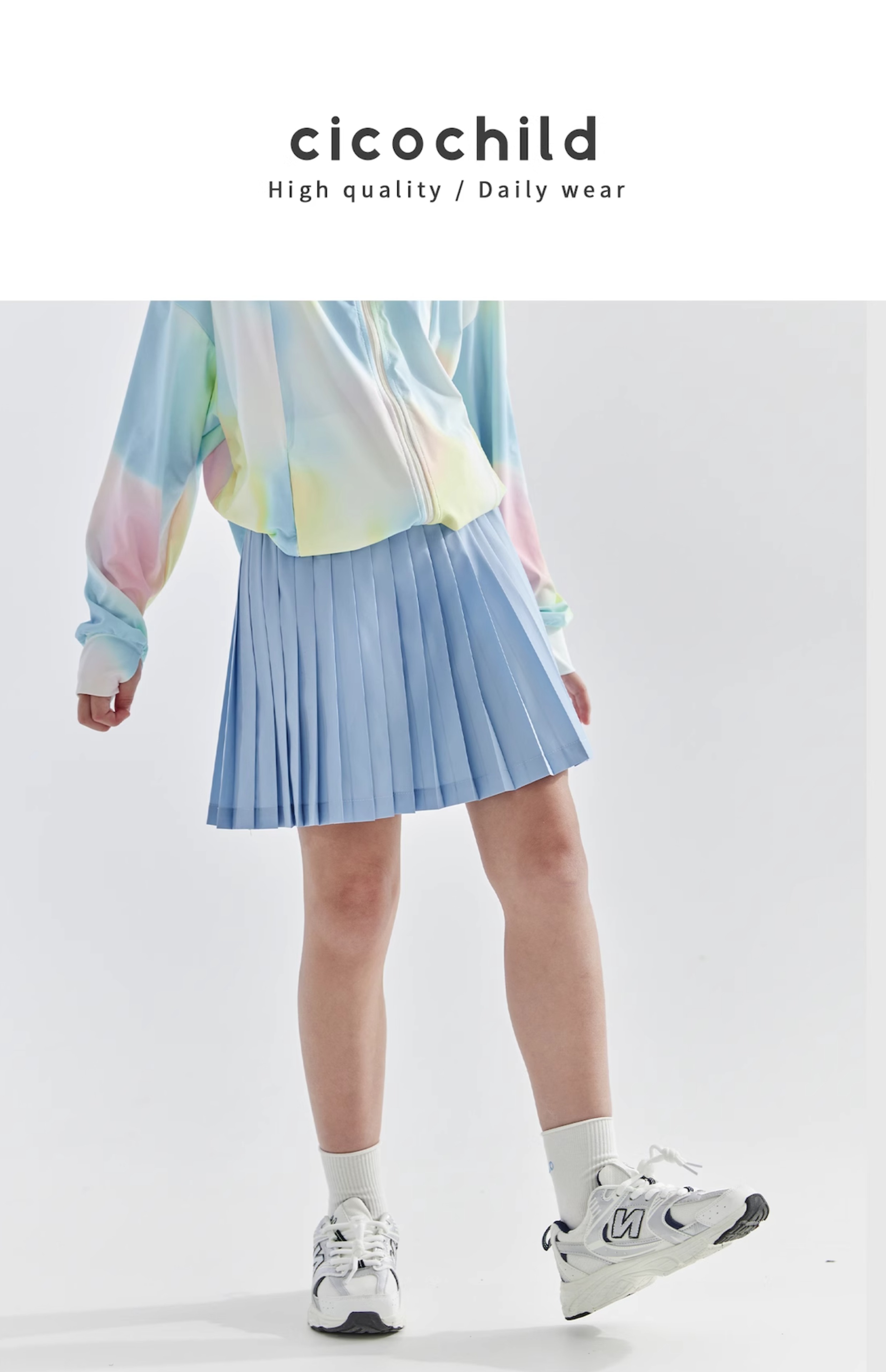 cicochild2025年夏季新款亲子中大女童百褶运动半裙轻盈飘逸裙子