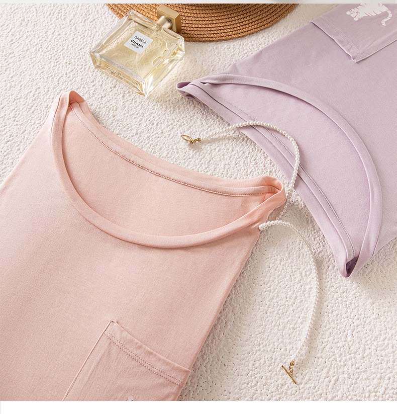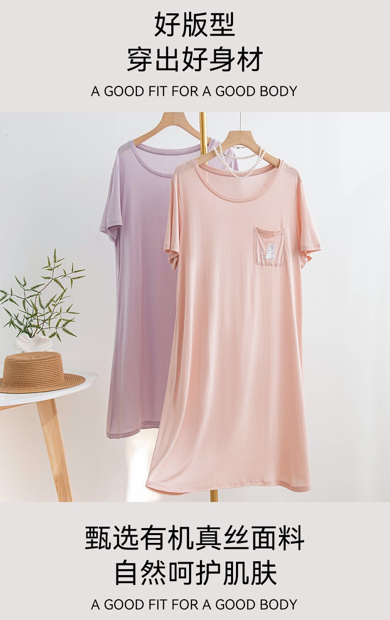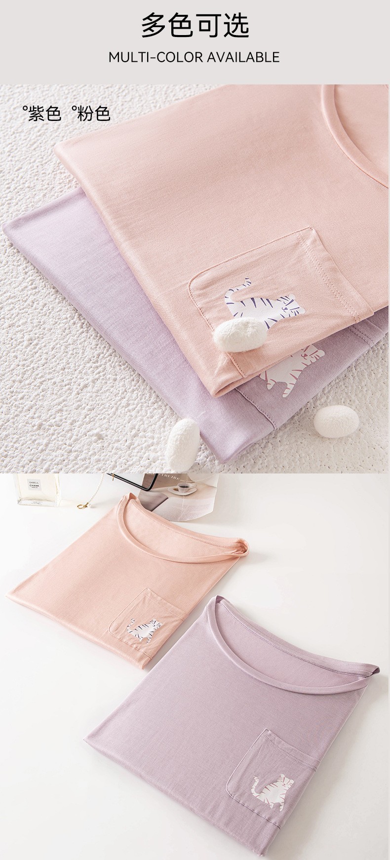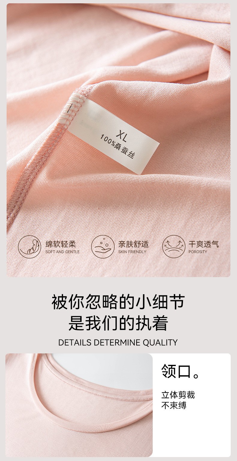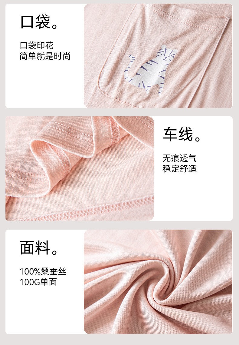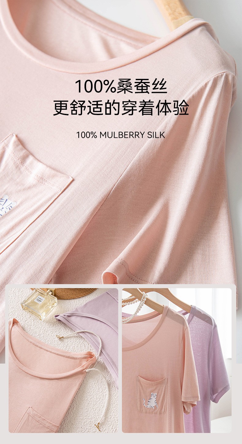 丁摩 真丝新款高级感桑蚕丝睡衣短袖长裤睡裤女薄款圆领家居服夏季5ZF-9622