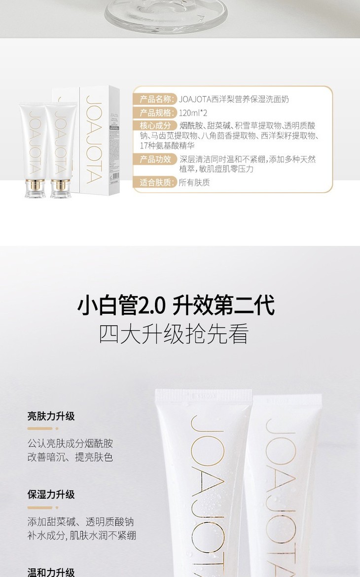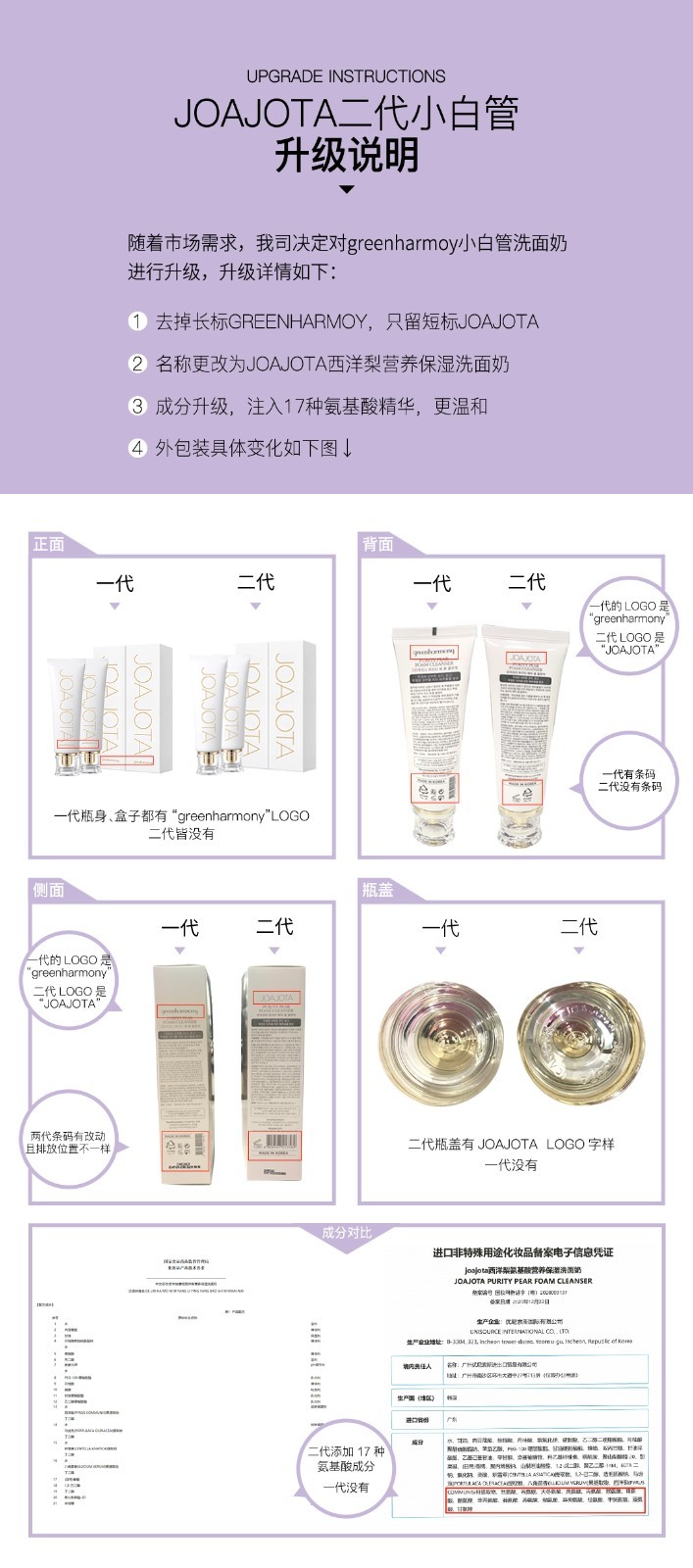 【2支装】韩国JOAJOTA greenharmony小白管氧气洗面奶120ml 2支装/盒
