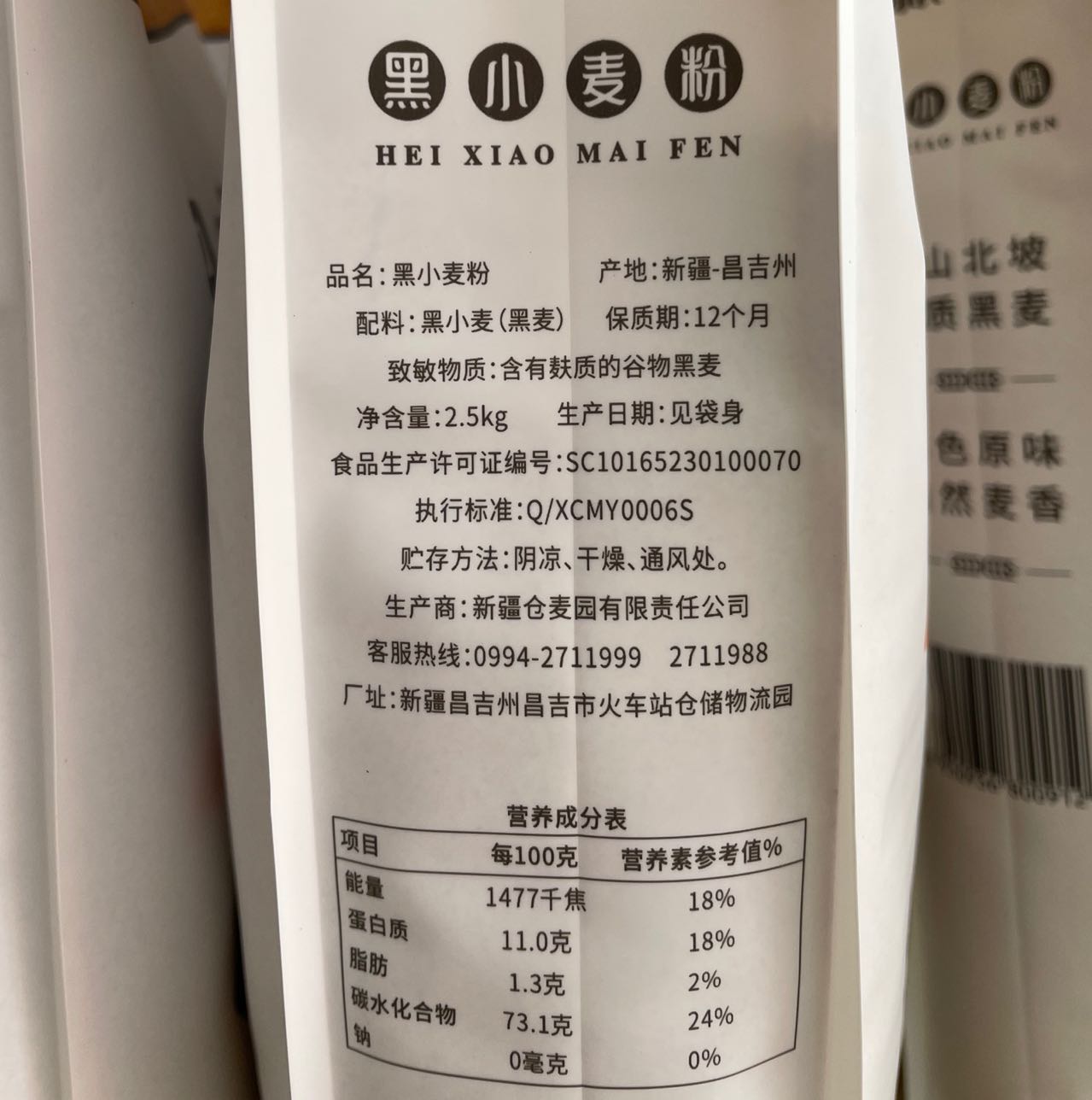 新疆仓麦园黑小麦全麦粉 5斤装 含麦麸无添加低脂低热量 饱腹