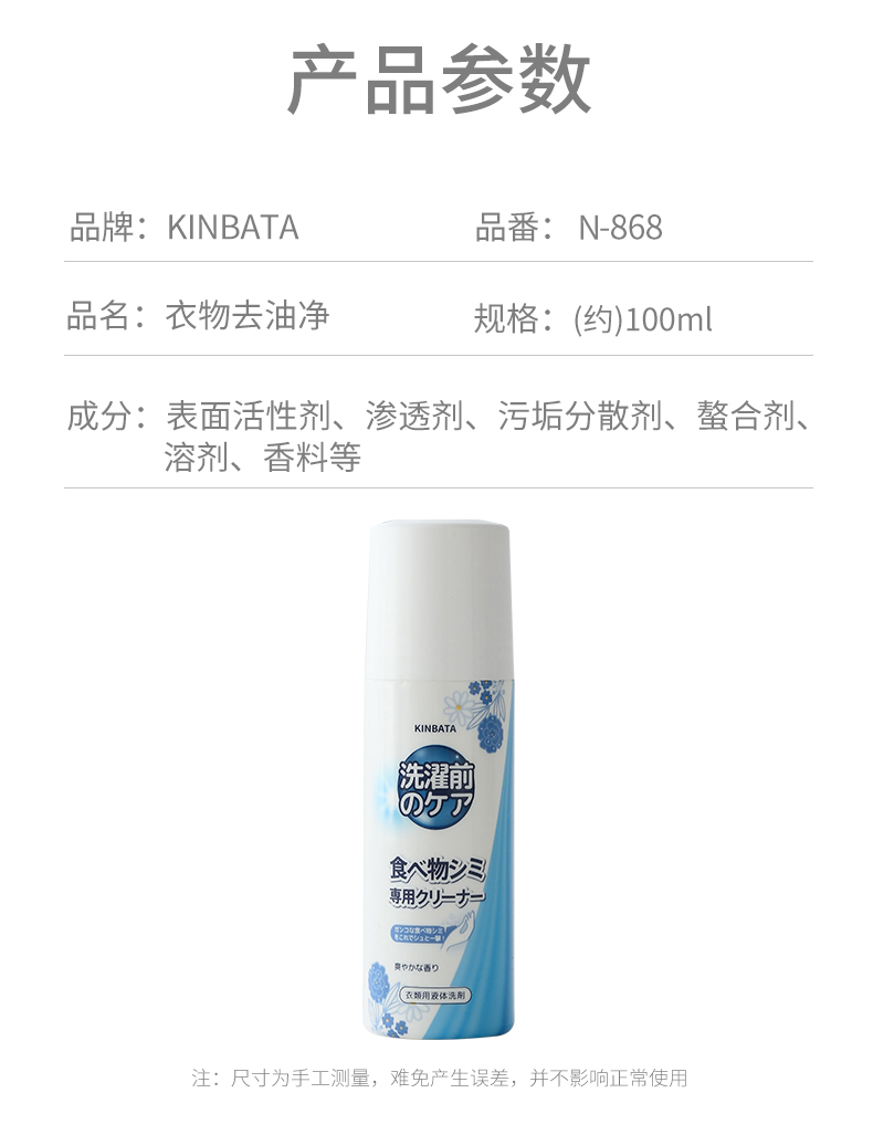 【日本除油污神器】日本KINBATA衣物去油净快速去油污不伤衣物