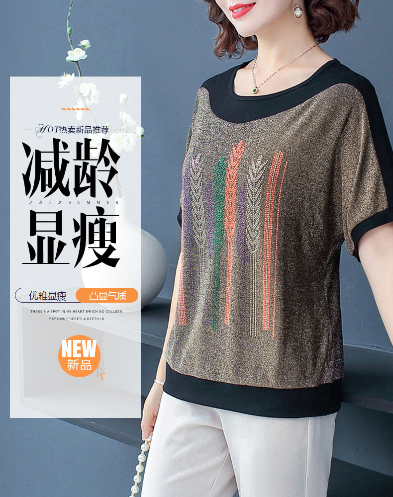 MQ1227-2010新款时尚气质亮丝圆领蝙蝠袖百搭薄款T恤