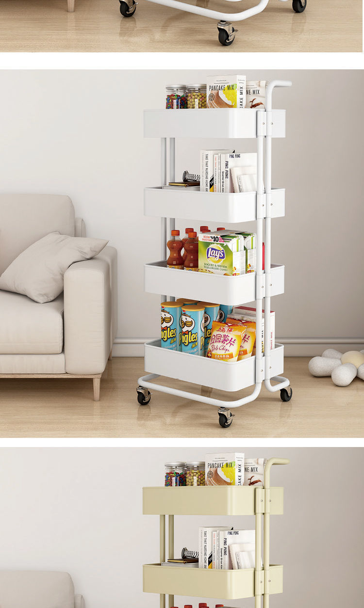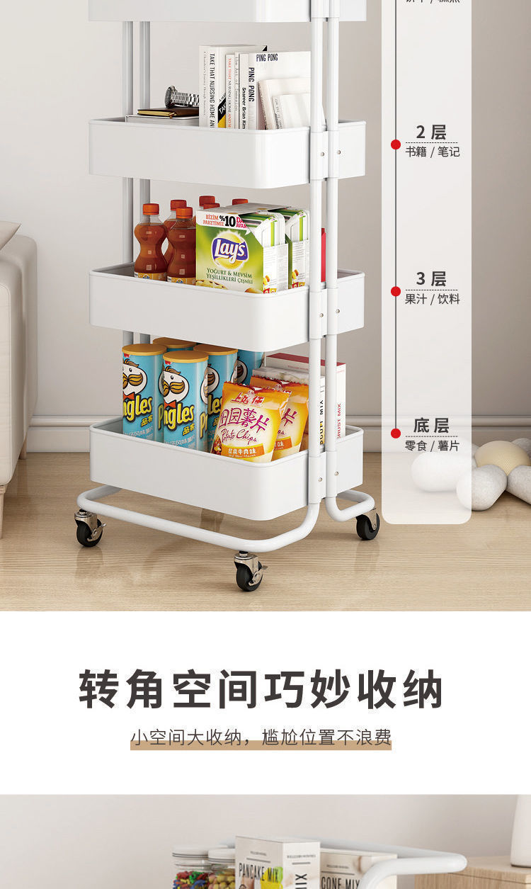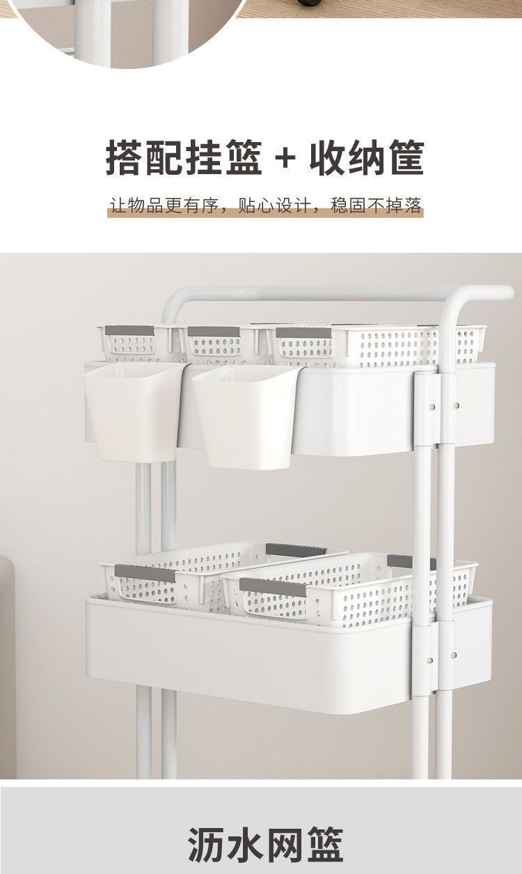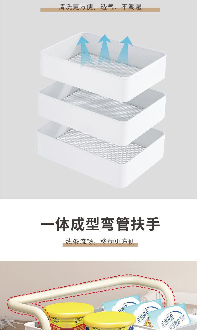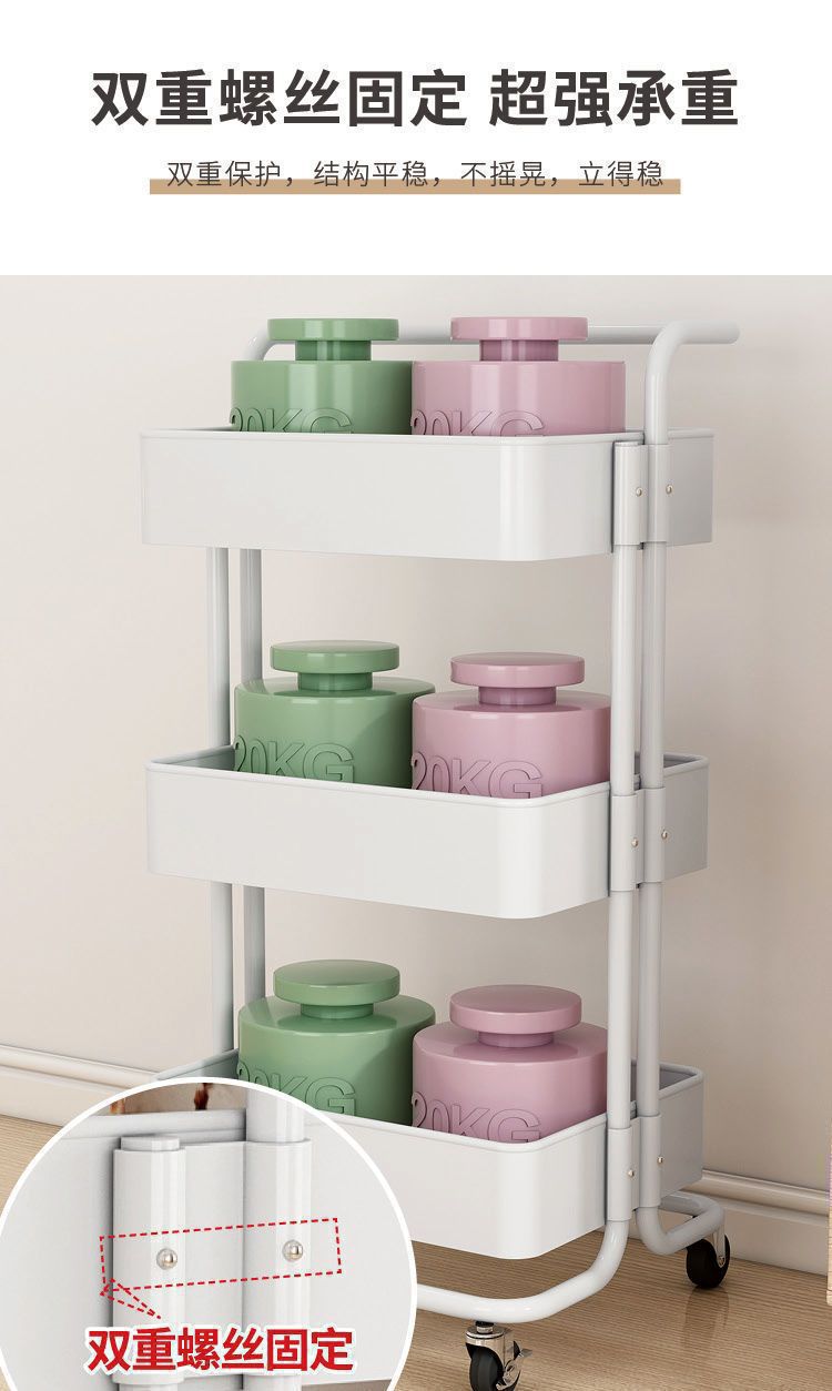 【一体成型弯管扶手❗️双重保护结构平稳】网红小推车置物架家用滑轮厨房卧室零食架客厅多功能储物收纳架。jb