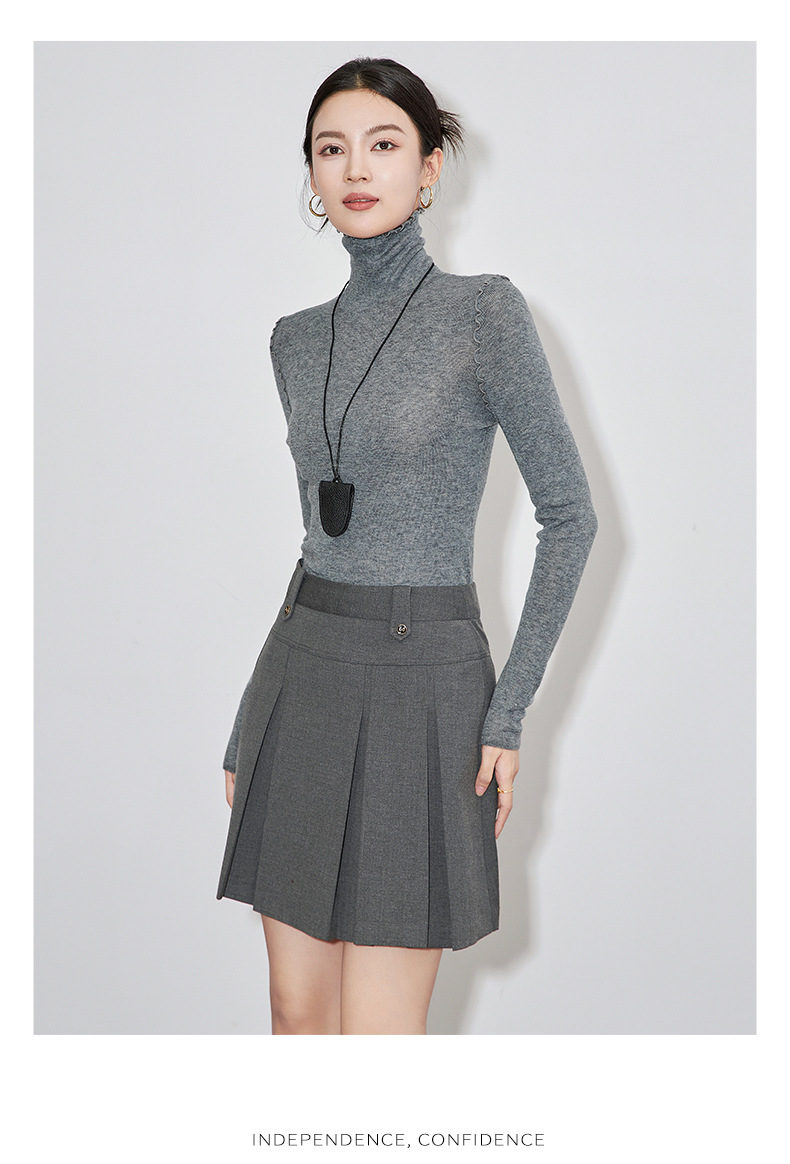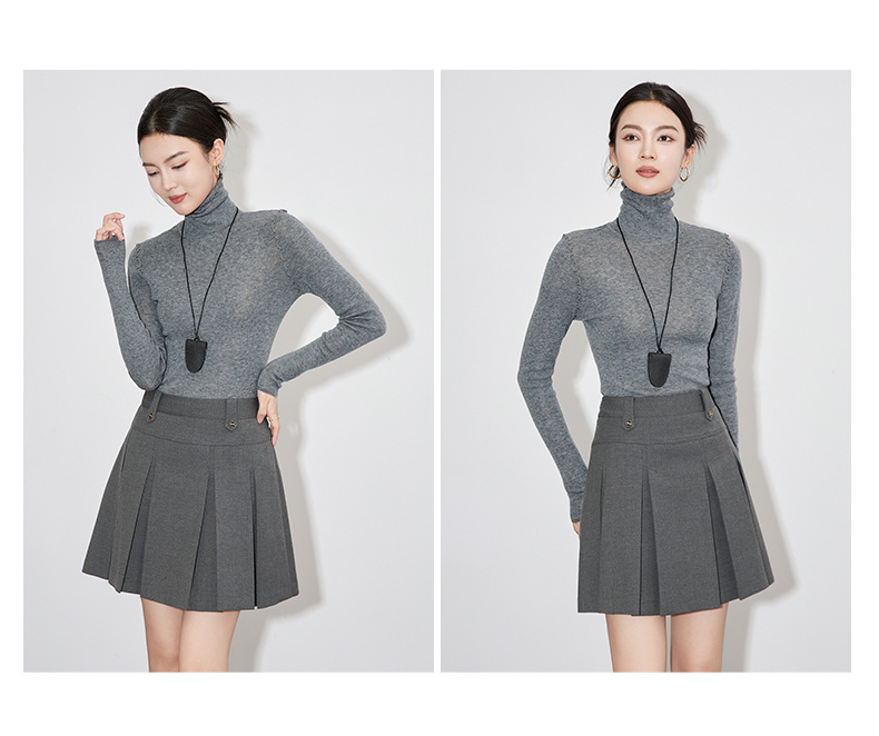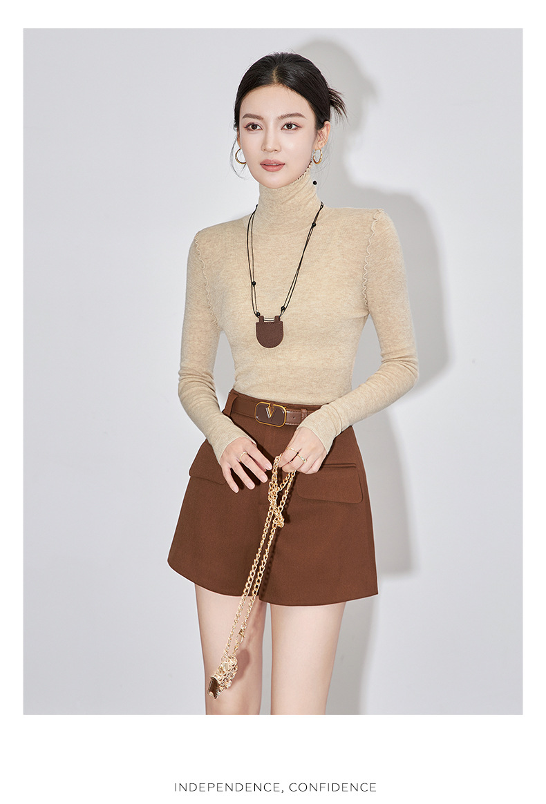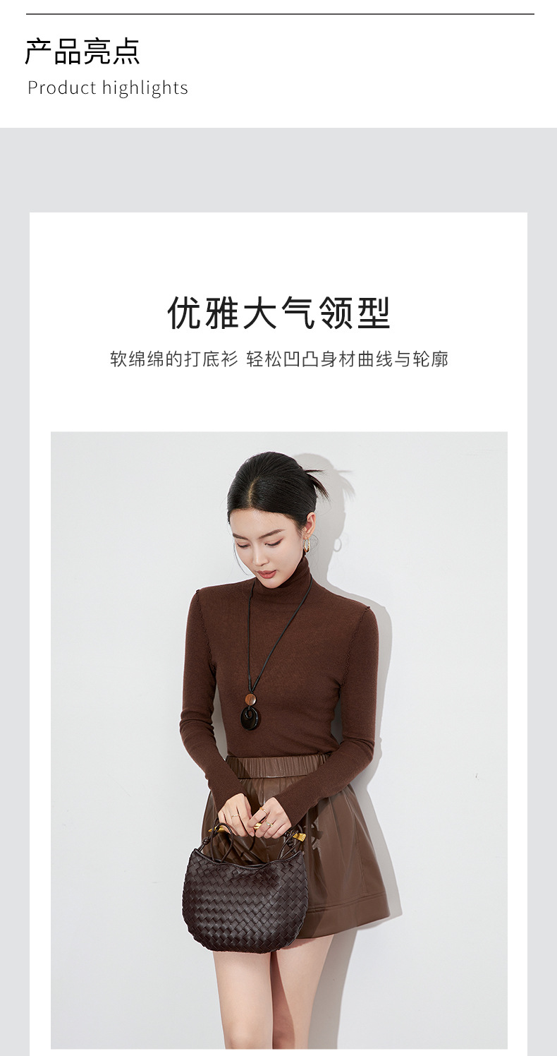 【高货wl】全新升级【铂金会员183/天猫249/差价66】(12845) 洛诗琳秋冬高领亲肤绵羊毛气质针织高领木耳边打底衫上衣