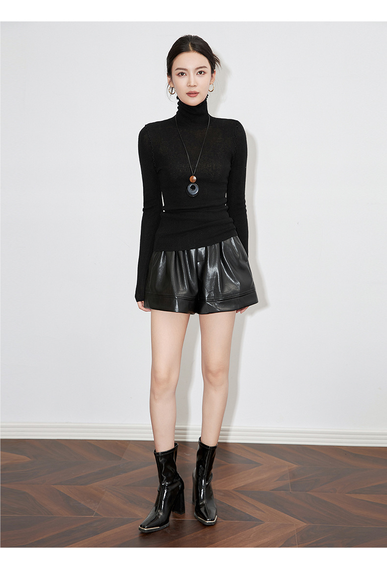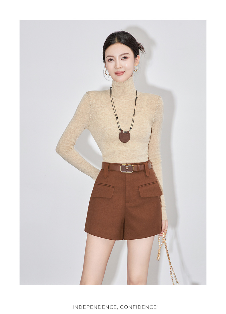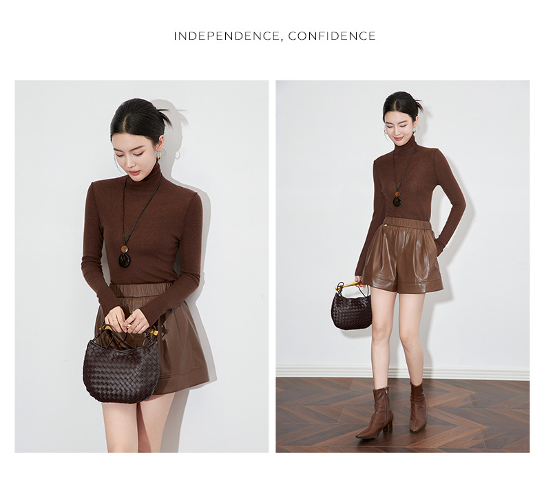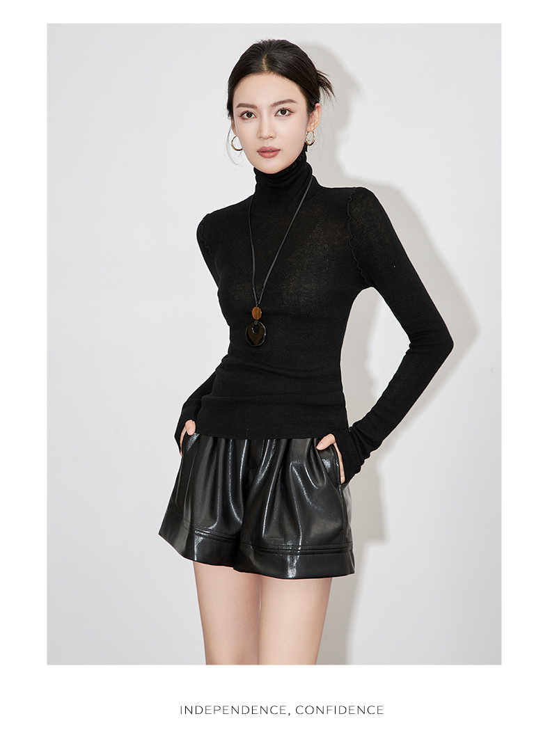 【高货wl】全新升级【铂金会员183/天猫249/差价66】(12845) 洛诗琳秋冬高领亲肤绵羊毛气质针织高领木耳边打底衫上衣
