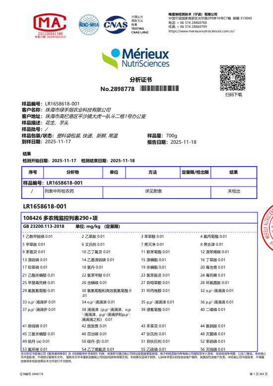 花生在长过程中拔草两次,结果之后,会撒草木灰增加土壤肥力,种植过程无其它化学农药、化肥、除草剂、杀虫剂、激素等投入品。