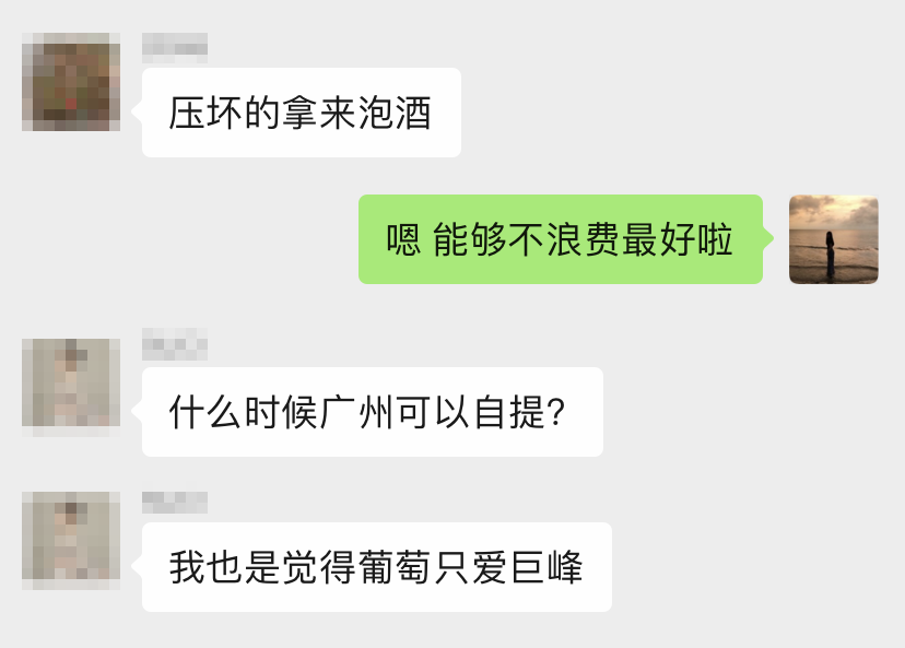 由于没有使用坐果剂,巨峰又属于肉质偏软的品种,特别容易掉粒。巨峰将在9月底结束产出,在此之前,我们将进行1-2次预售,从新疆空运到珠海机场,再泡沫箱+冰袋+气柱包装,尽可能减少损耗,顺丰快递给各位吃货,但不再做售后赔付,大家自由选择,多多包容。