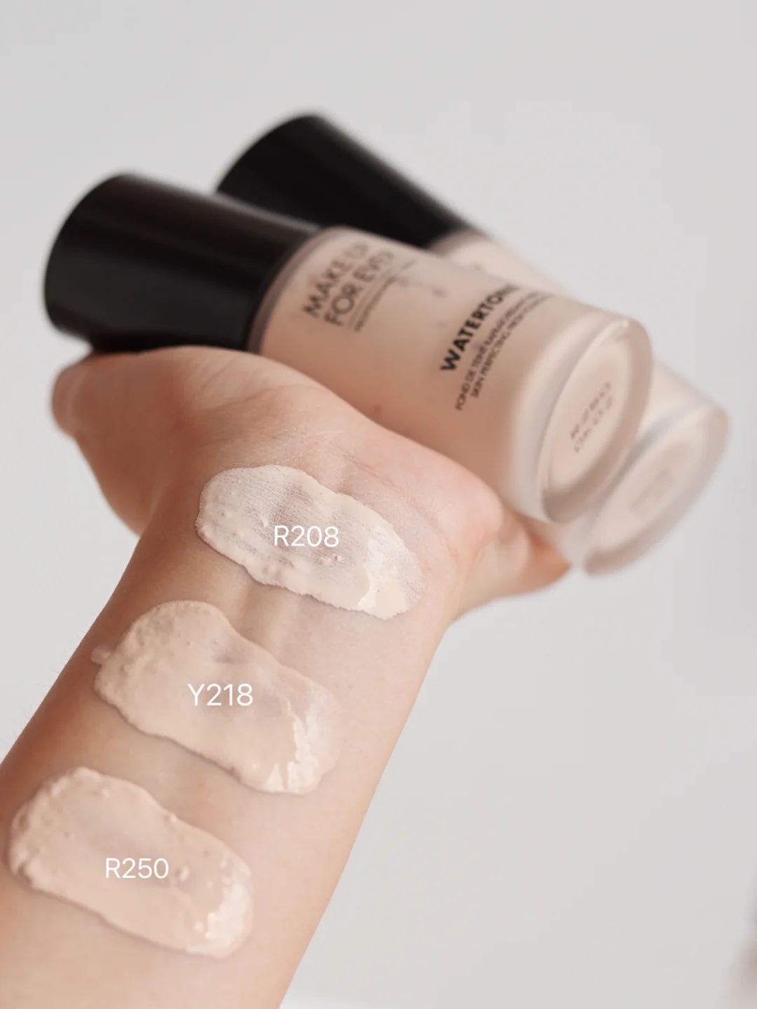 👑MAKEUP FOREVER WATERTONE粉底液#R208/#R230/#Y218👍伪素颜神器🤫。全新双用水粉霜含有78%的维他命水💧,超级滋养肌肤,让妆感“轻薄透”,隐形毛孔,提亮肤色。☁️果冻凝胶质地的无油粉底,自带柔焦妆效。适合混油皮,防水性极佳💦,汗流满面也不易脱妆。小TIPS🌟本款水粉霜主打轻薄裸妆,能与皮肤融合得很好,☺️天生好皮肤既视感,不易假面。☘若想要提升遮瑕力,可多次叠加自然遮瑕。使用前摇一摇🌀,可以使水粉充分融合哦!