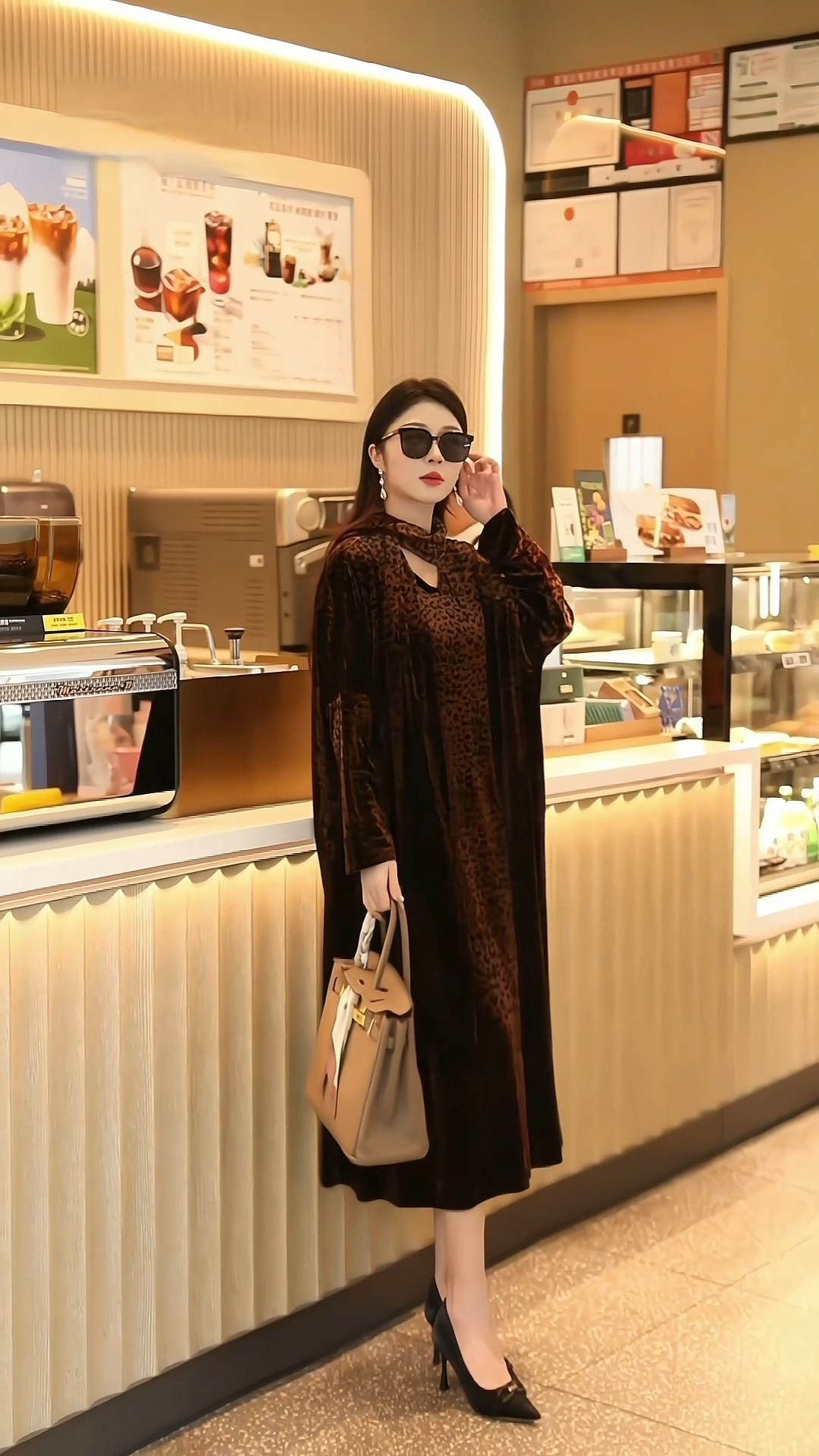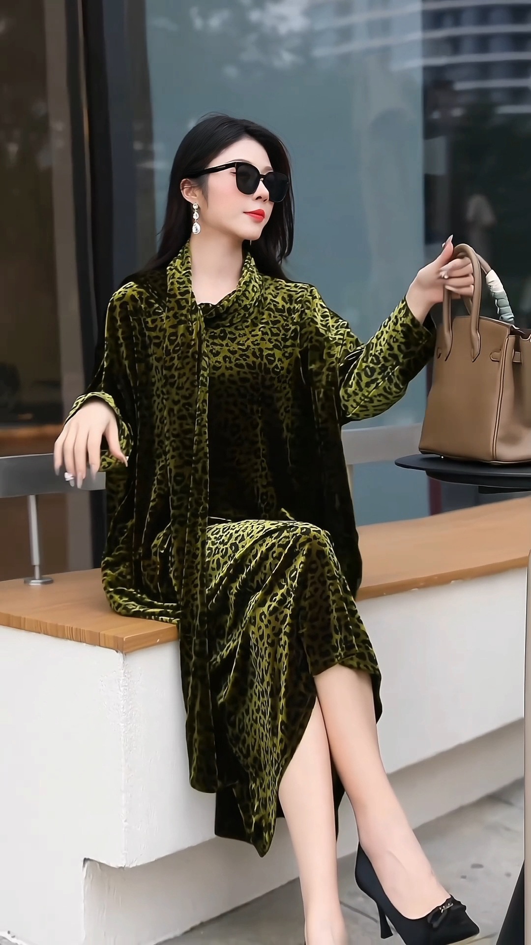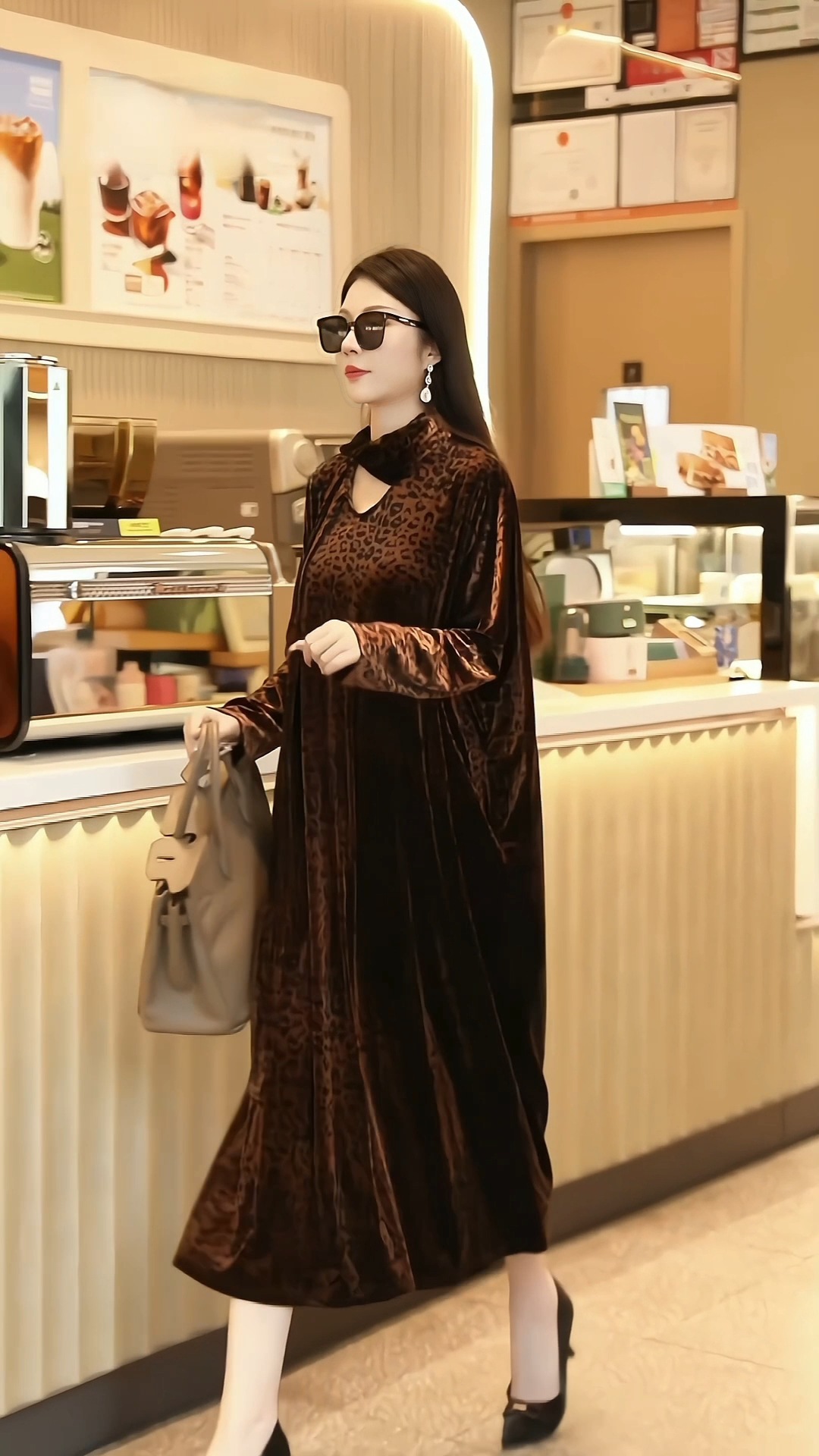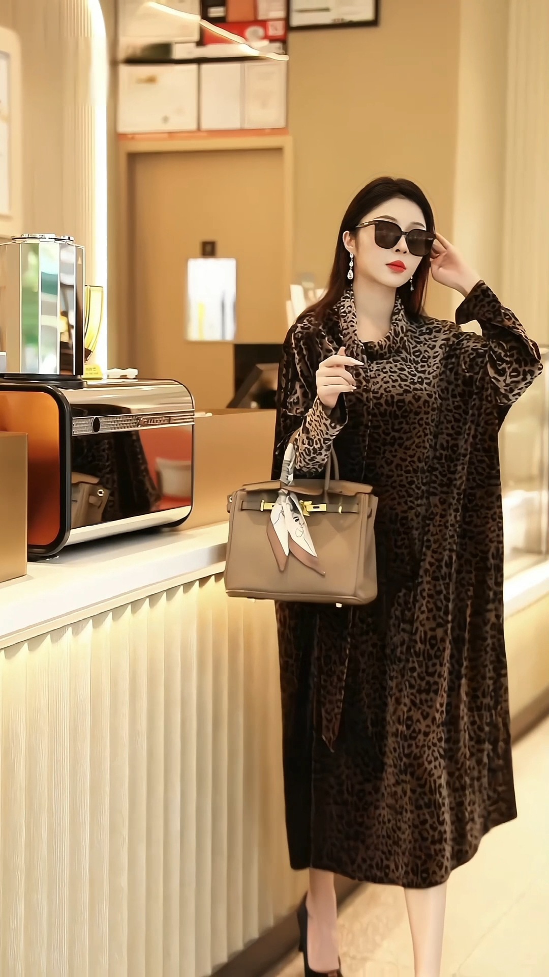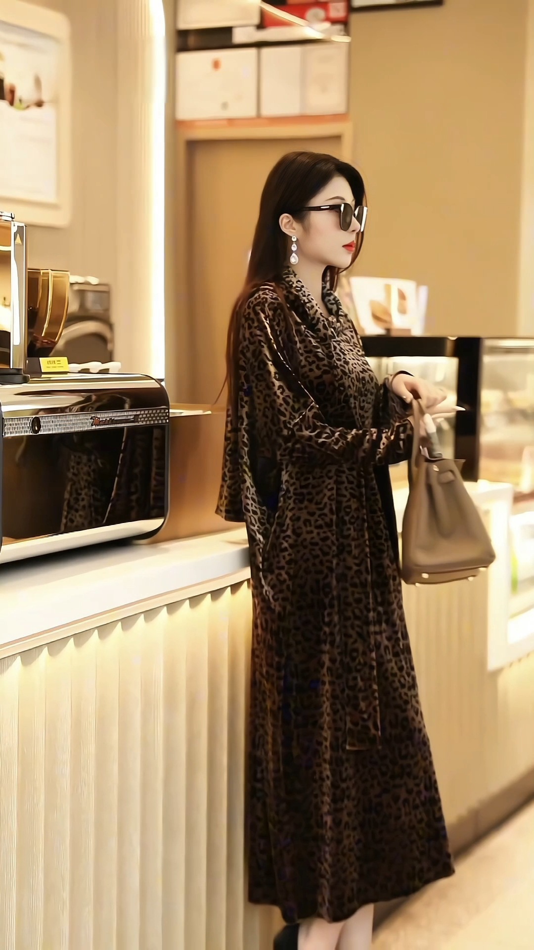 丁摩 秋季新款大码复古贵夫人气质豹纹妈妈装连衣裙宽松显瘦时尚长裙女4ZF-75335