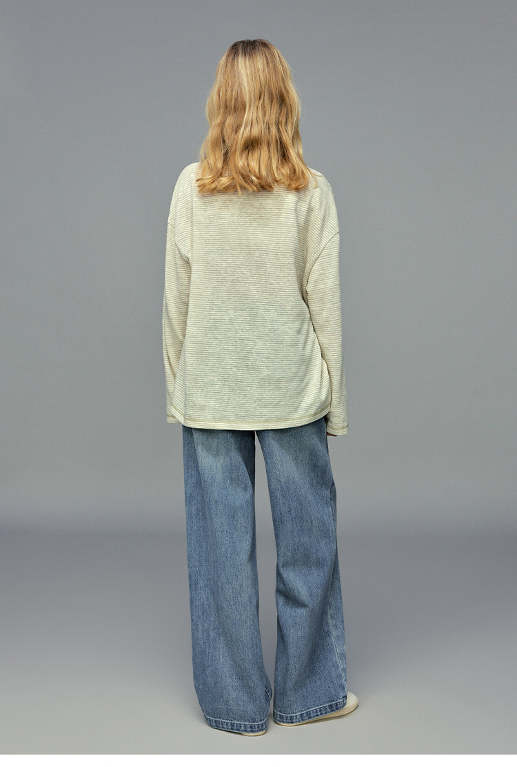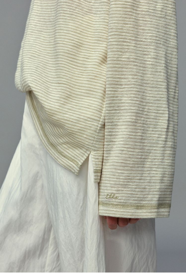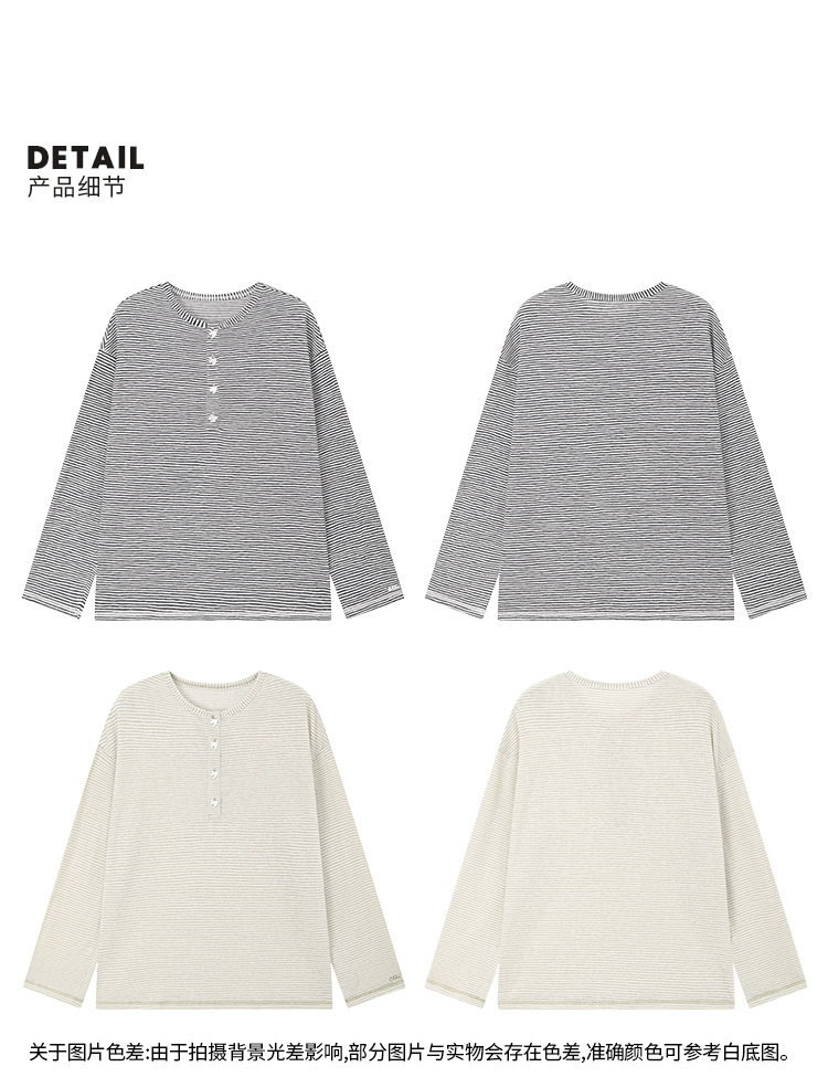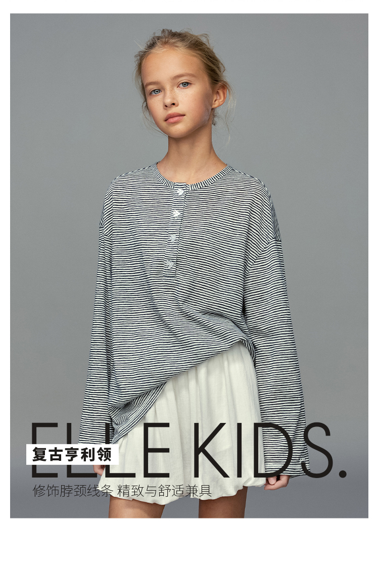 💕春3童装经典撞色条纹亨利领异形小鸟纽扣休闲宽松长袖T恤 商品图4