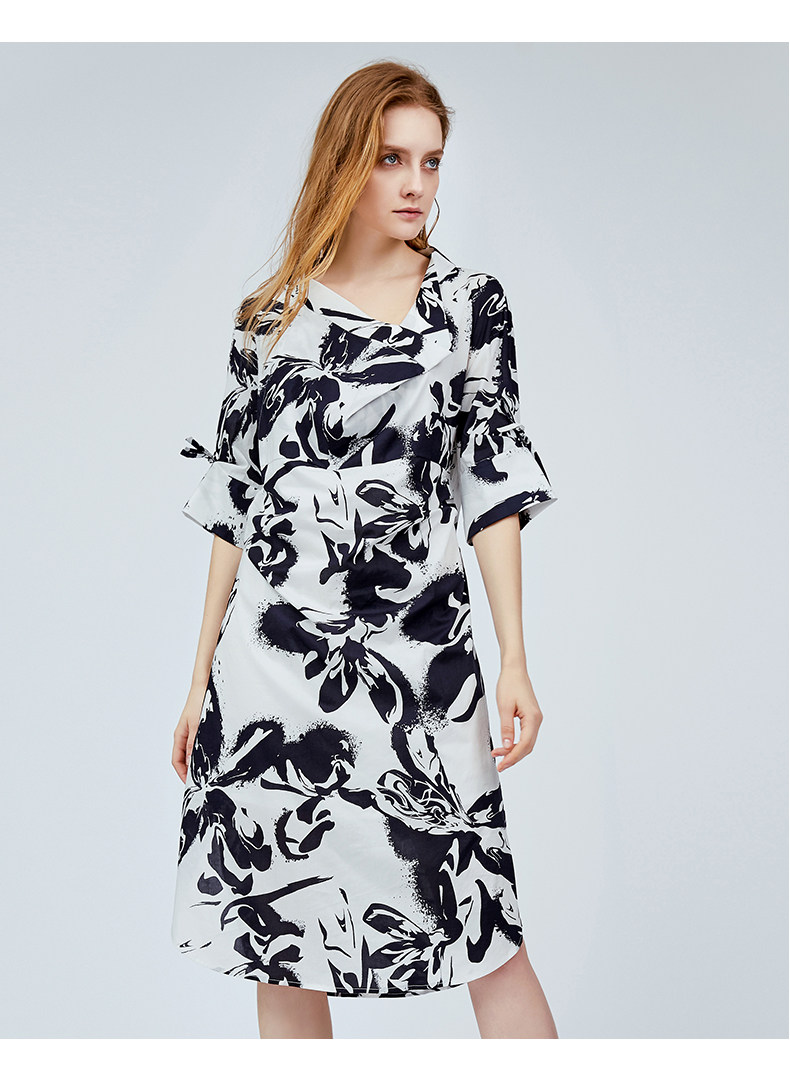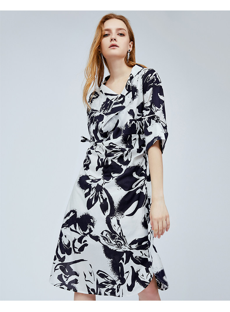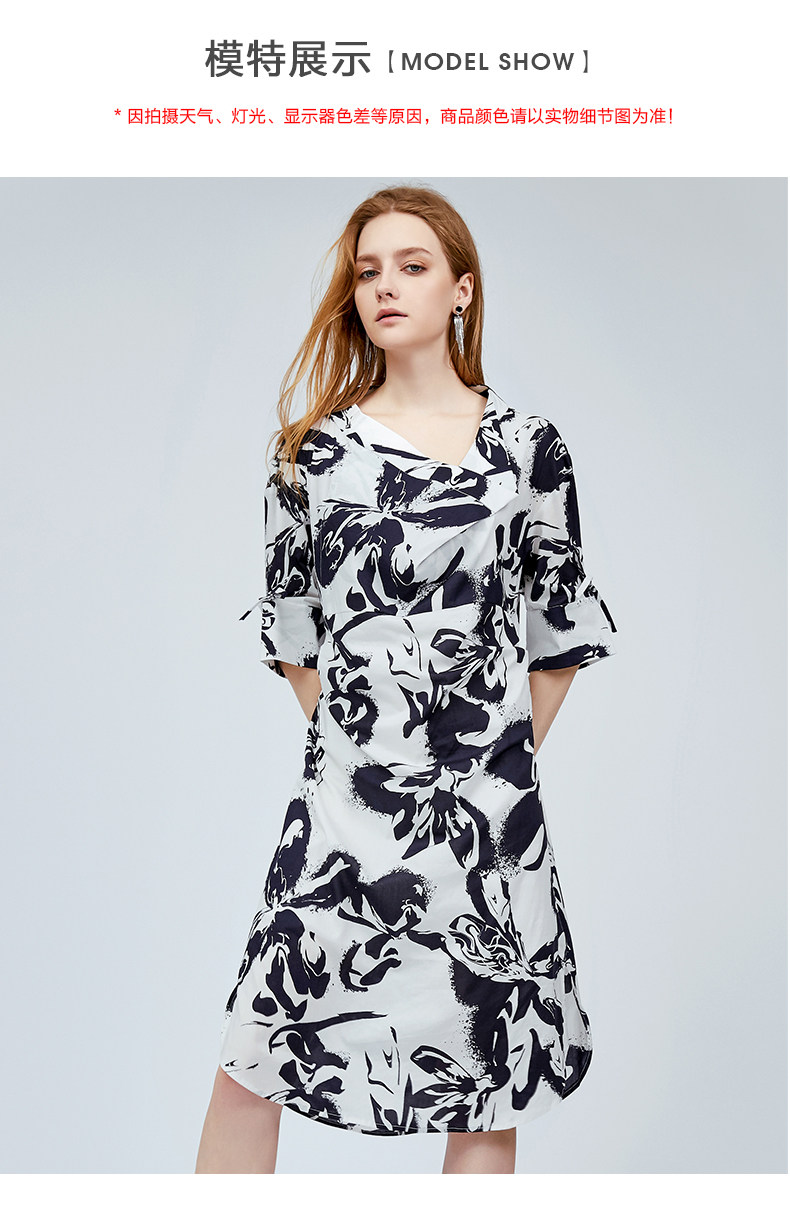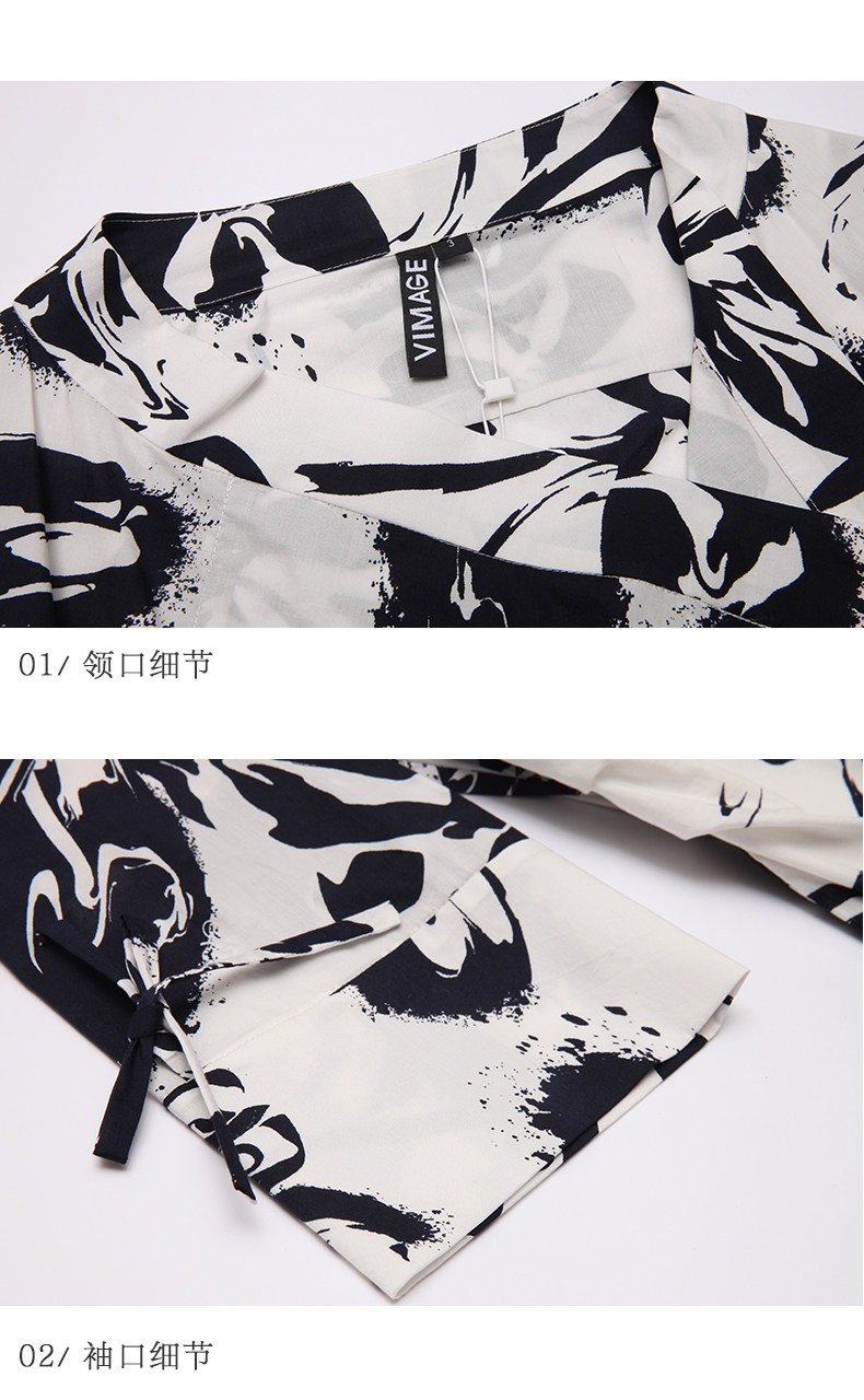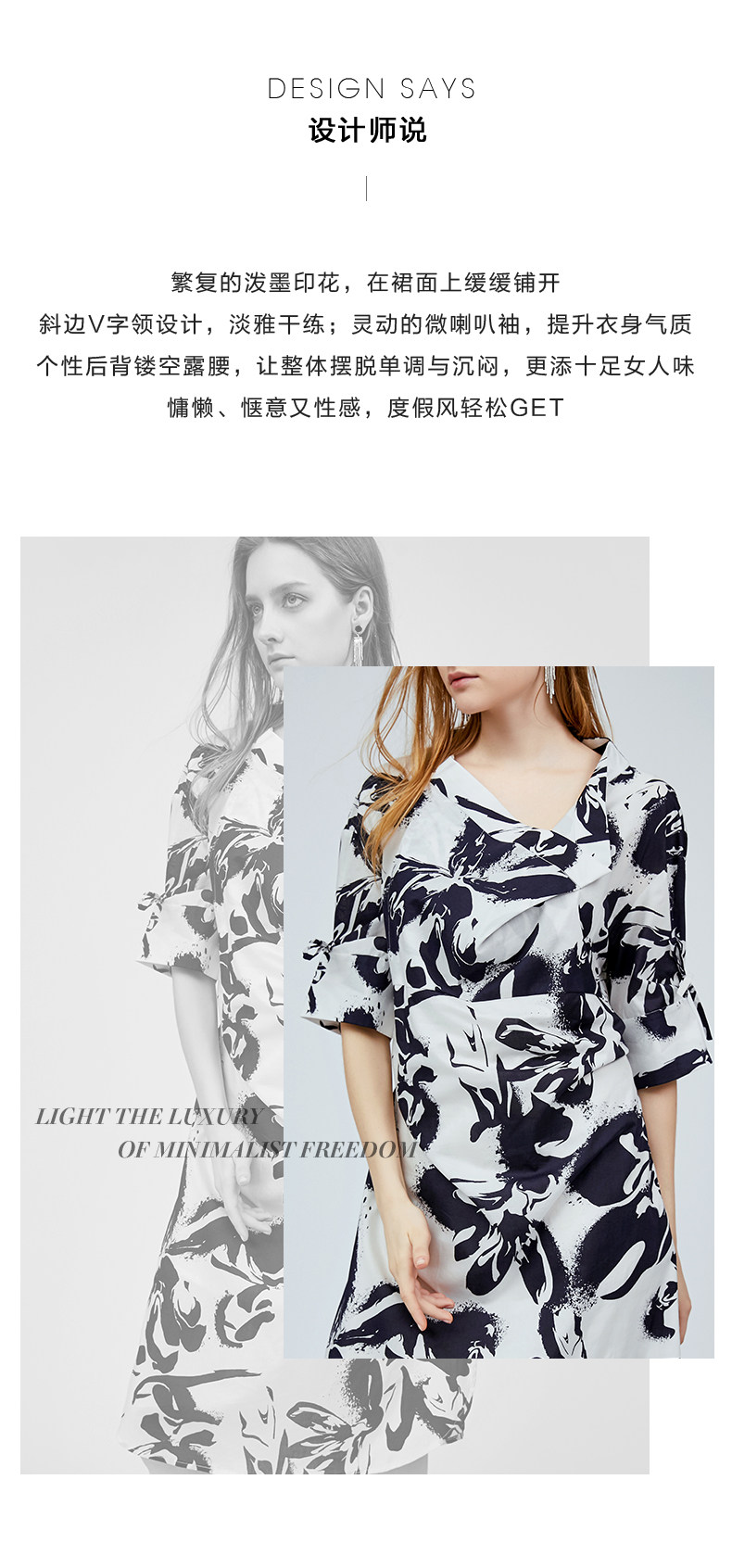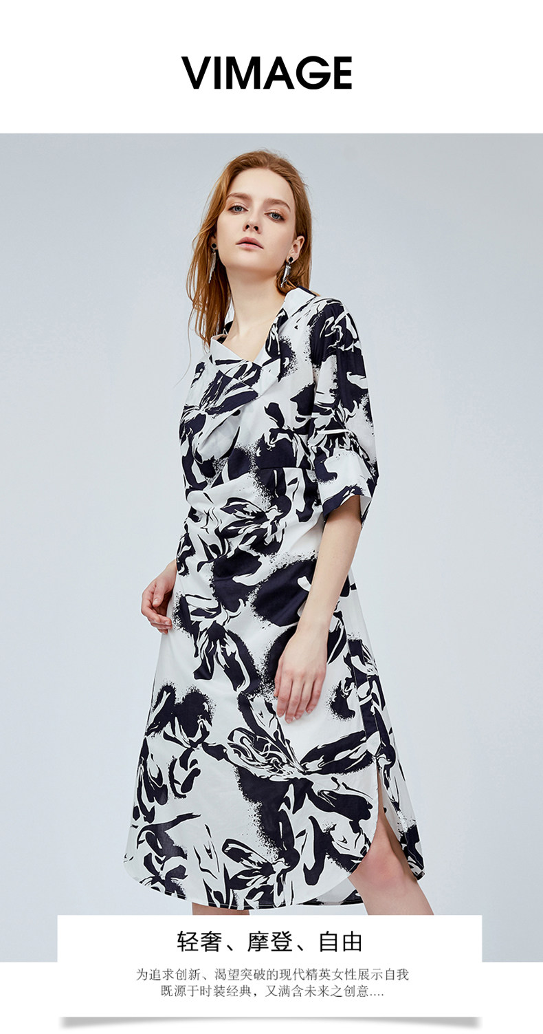 vimage纬漫纪设计师品牌时尚短袖泼墨印花连衣裙夏裙子V1107717