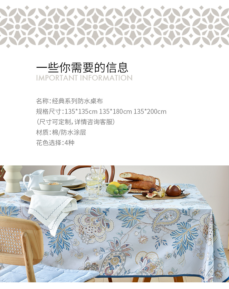 经典款法式四色防水防油桌布