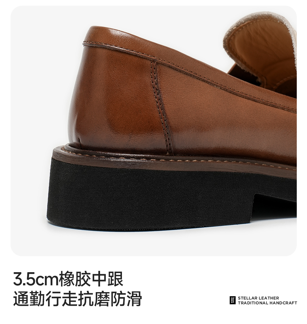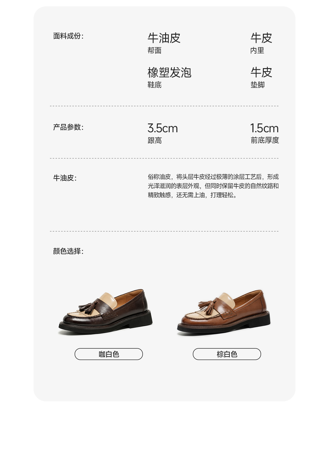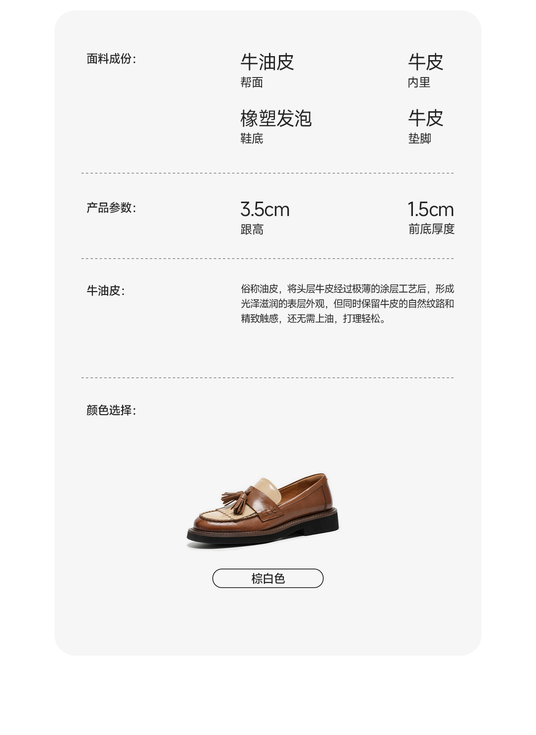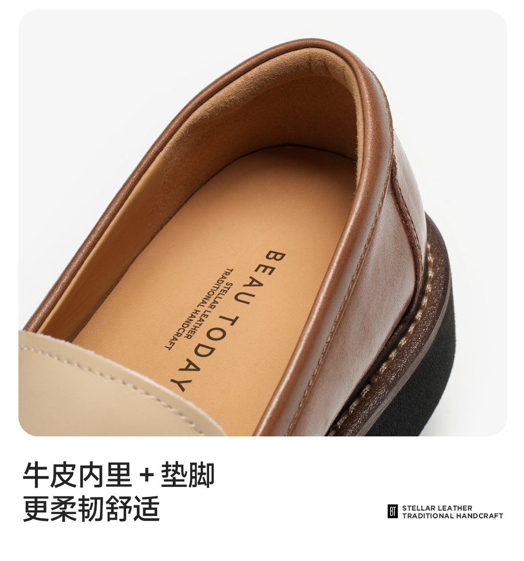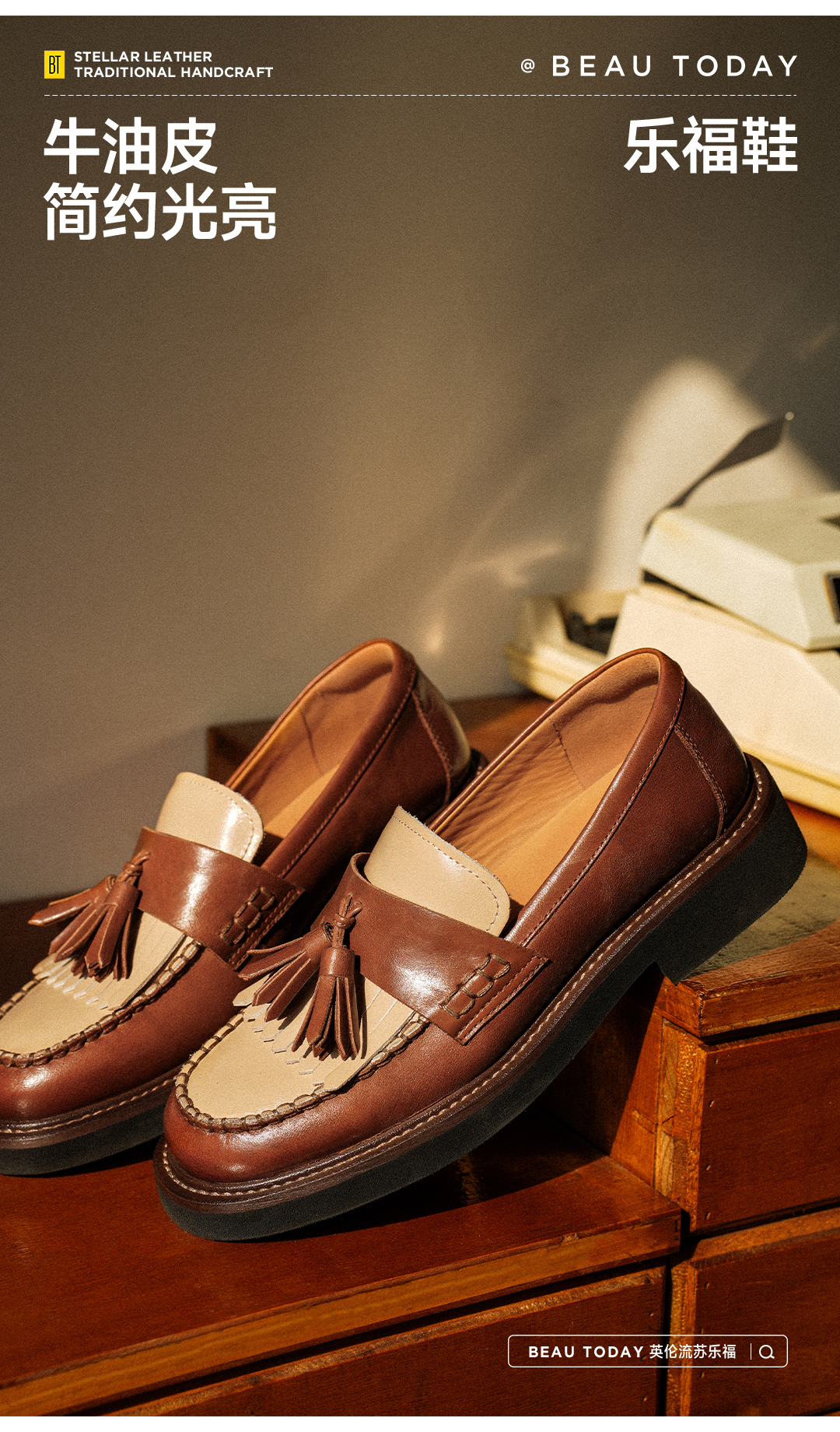 BeauToday 牛油皮拼色流苏吊穗乐福鞋深口单鞋