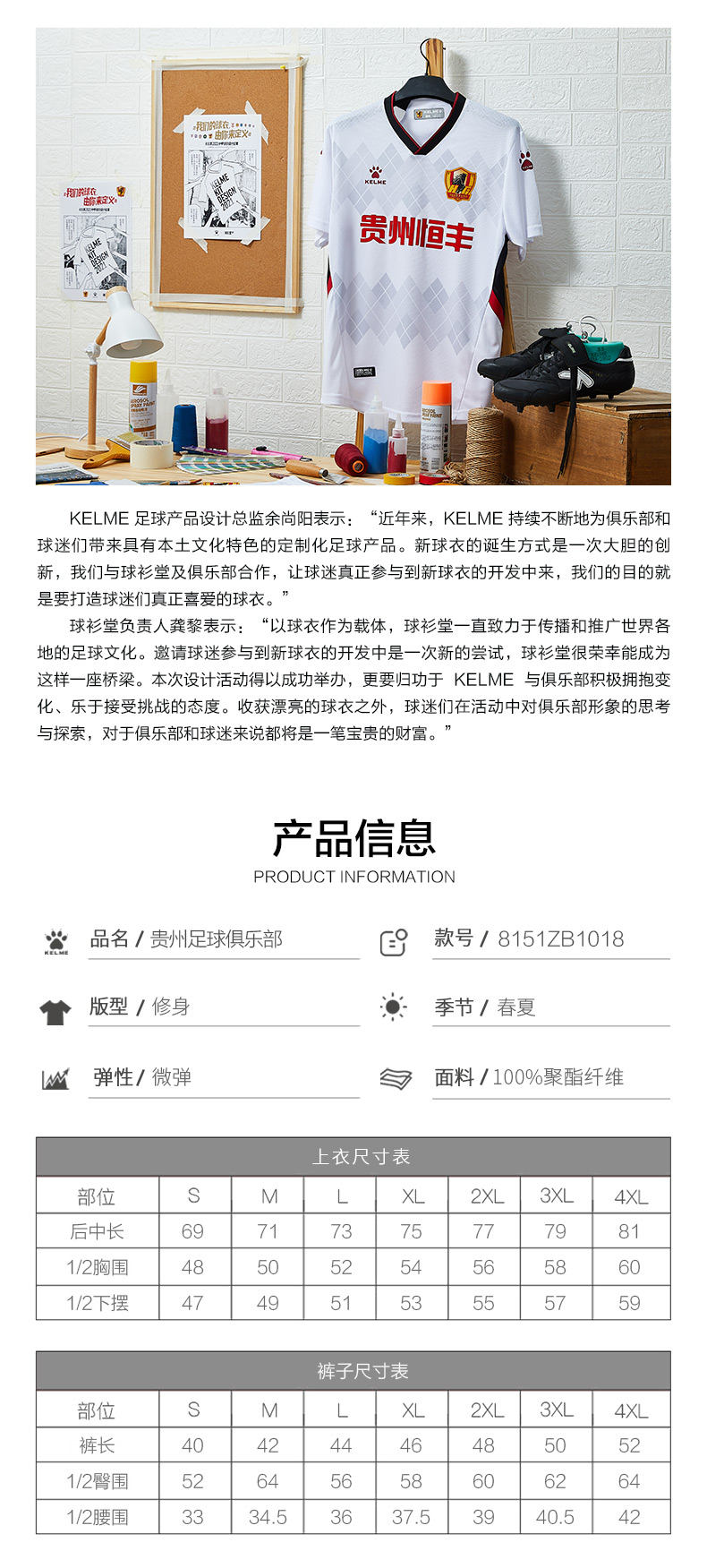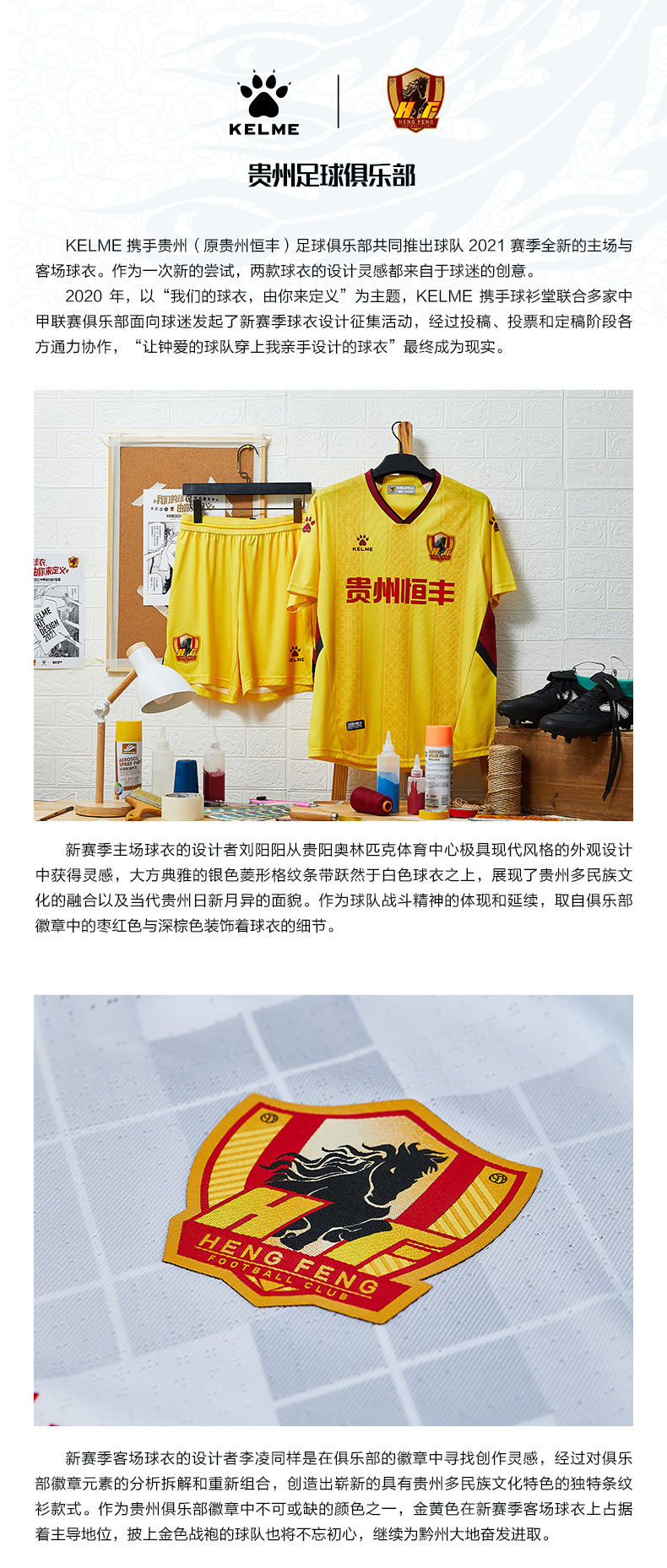 KELME/卡尔美足球服21赛季中甲足球联赛球员版球衣贵州足球俱乐部