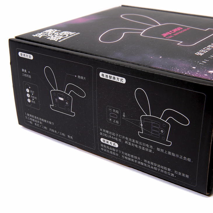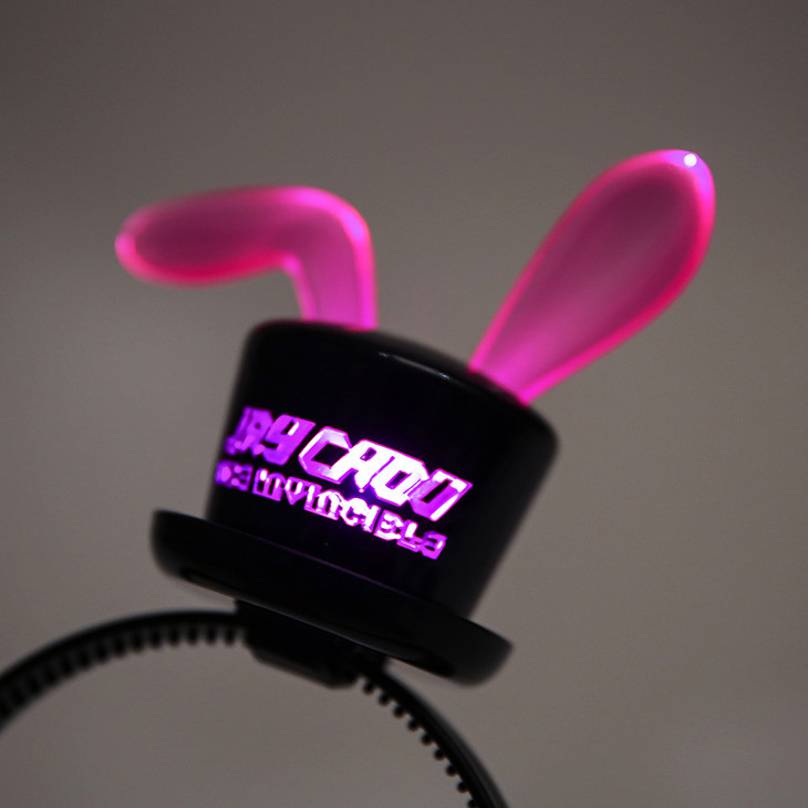 LED荧光灯兔耳朵礼帽的设计灵感来自于杰伦《床边故事》专辑中的兔耳朵绅士帽,搭配杰伦专属"杰伦粉",软萌可爱又有雅痞的绅士酷感,同时也是MRJ的LOGO,两者最强结合。