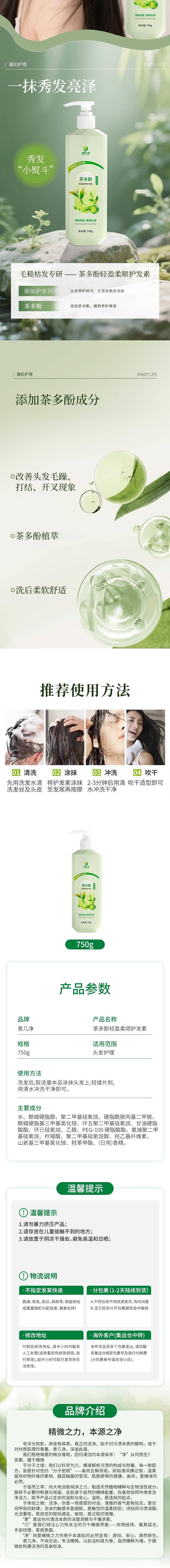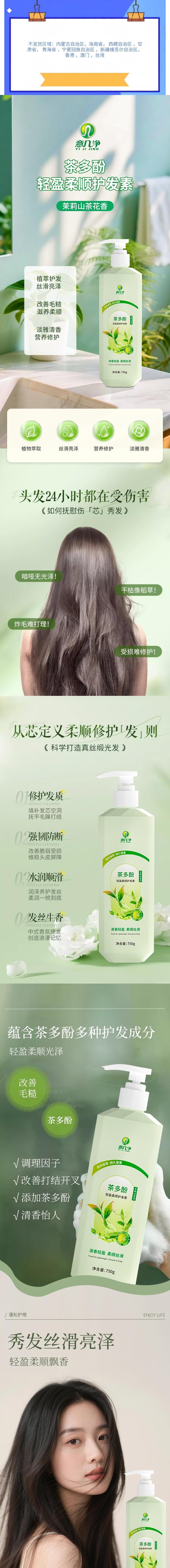 意几净 茶多酚轻盈柔顺护发素-茉莉山茶花香750g 84687