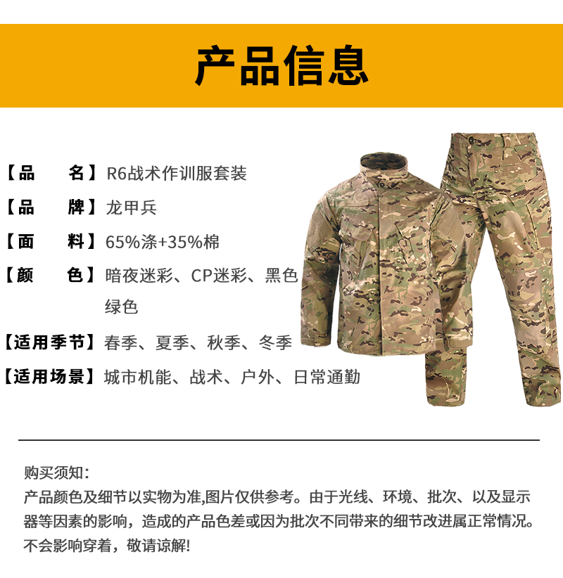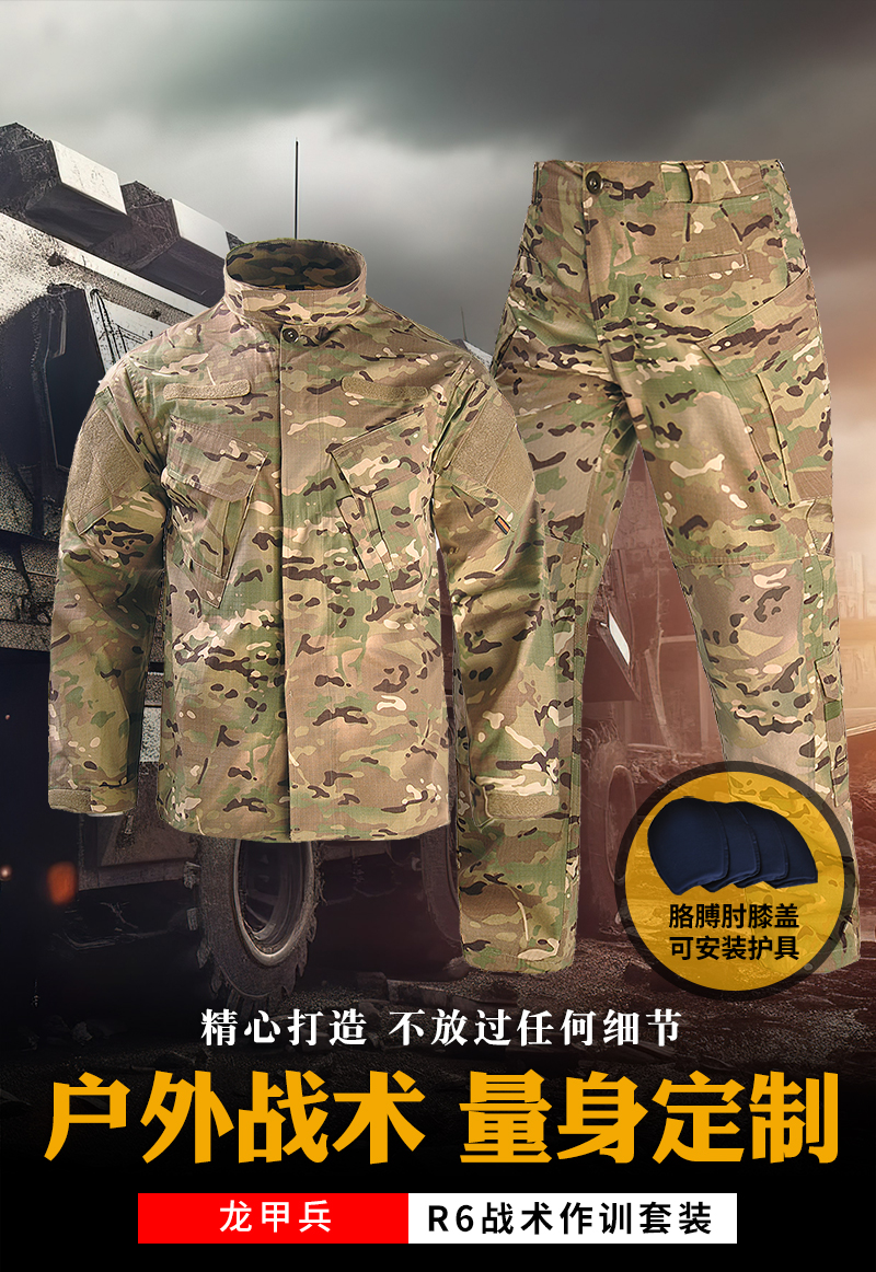 【户外战术 防泼耐撕裂 挺括保型】龙甲兵R6迷彩套户外训练战术套装ds(hy)