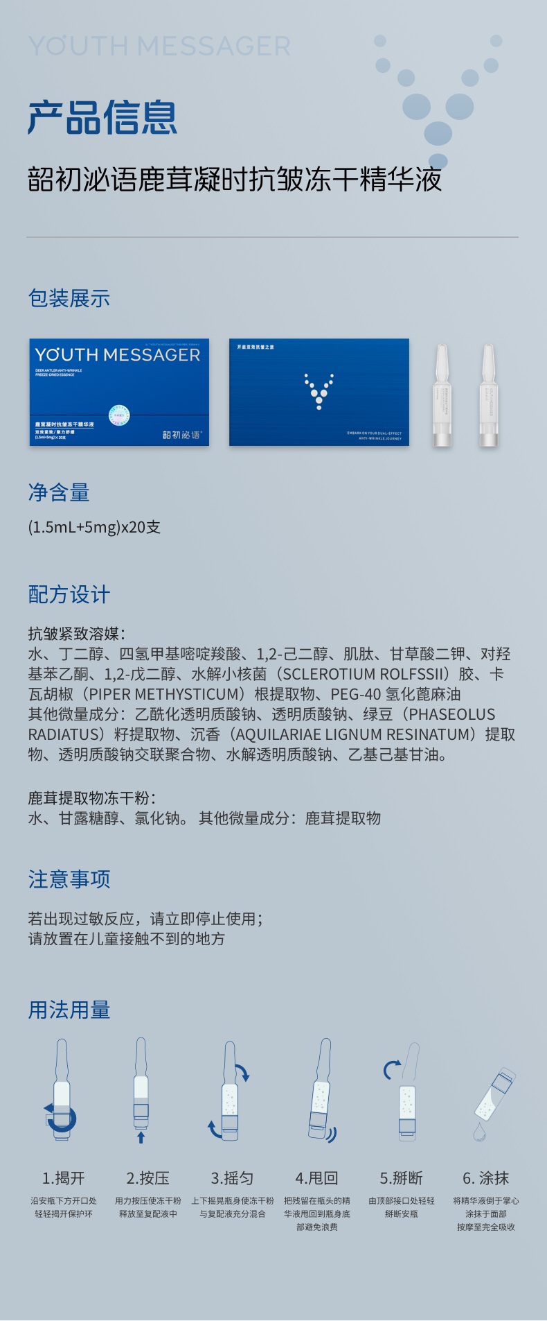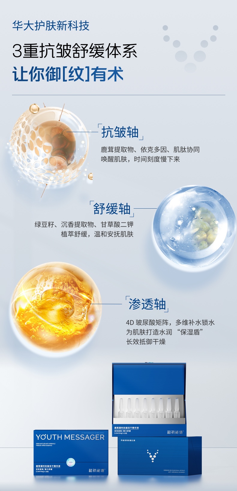 【小鹿精华】韶初泌语—鹿茸凝时抗皱冻干精华液,补水保湿 抗皱细纹 次抛精华 华大护肤品(20支/盒)