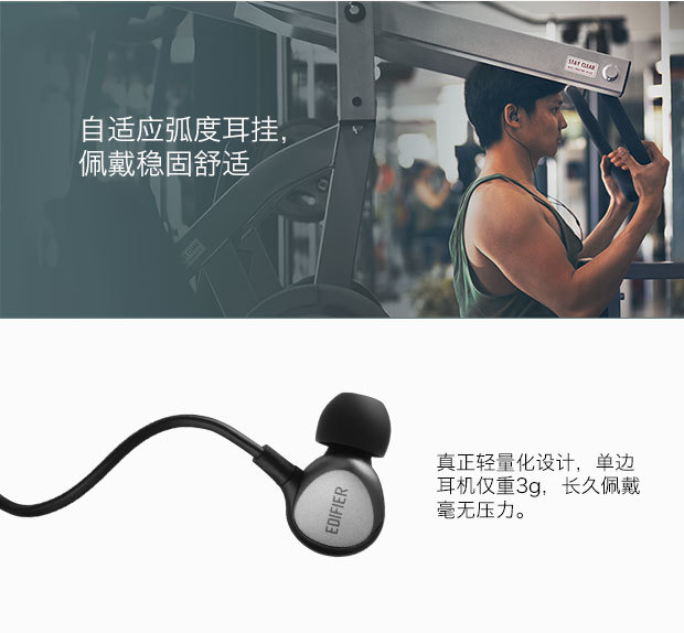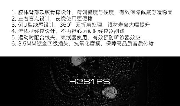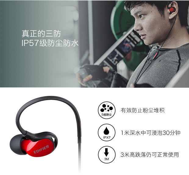 Edifier/漫步者 H281PS 跑步运动耳机防水入耳式耳机重低音线控