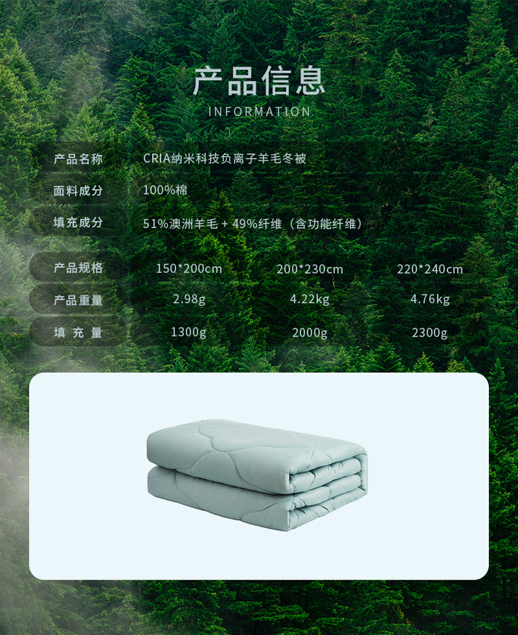 诗意精选 | CRIA 负氧离子澳毛冬被430gsm