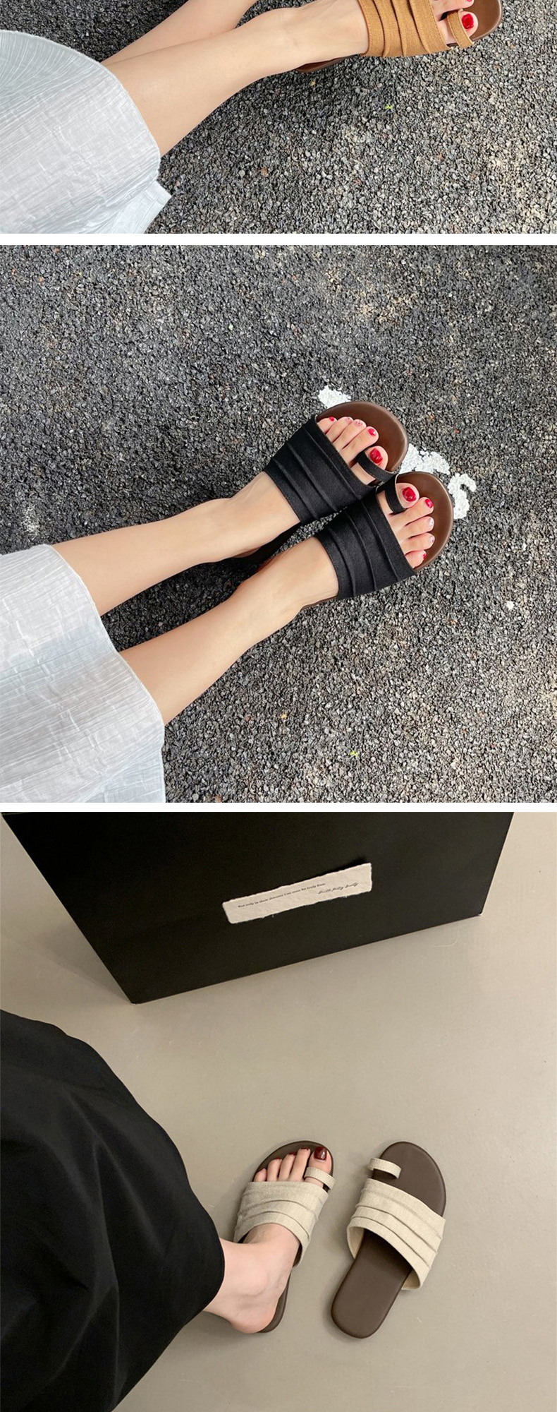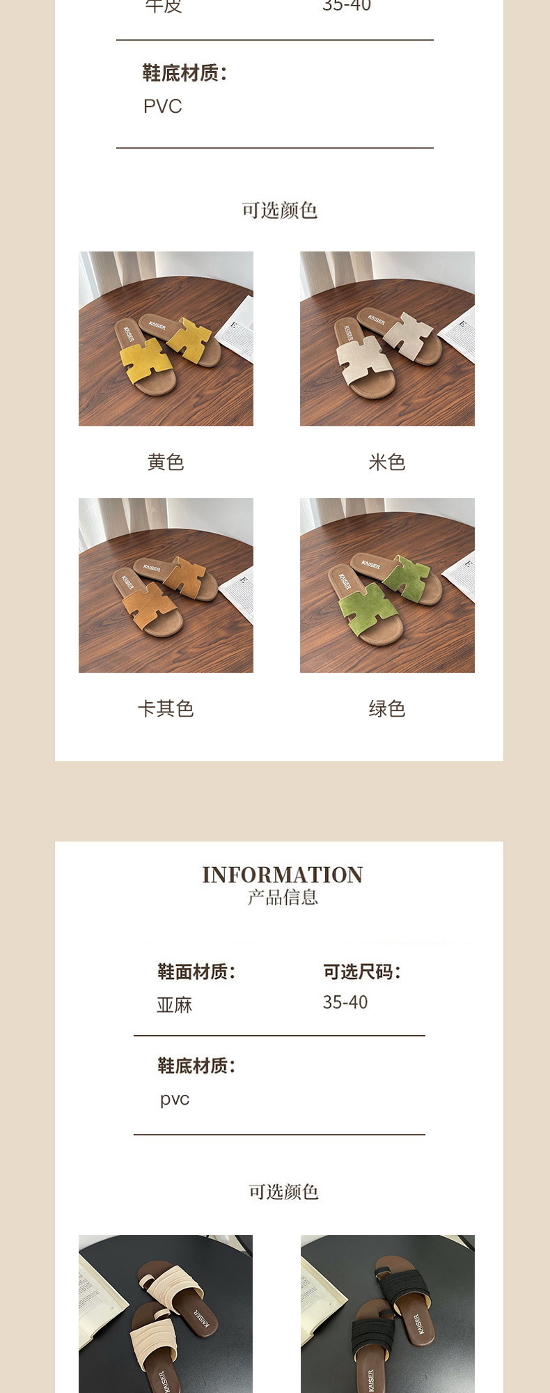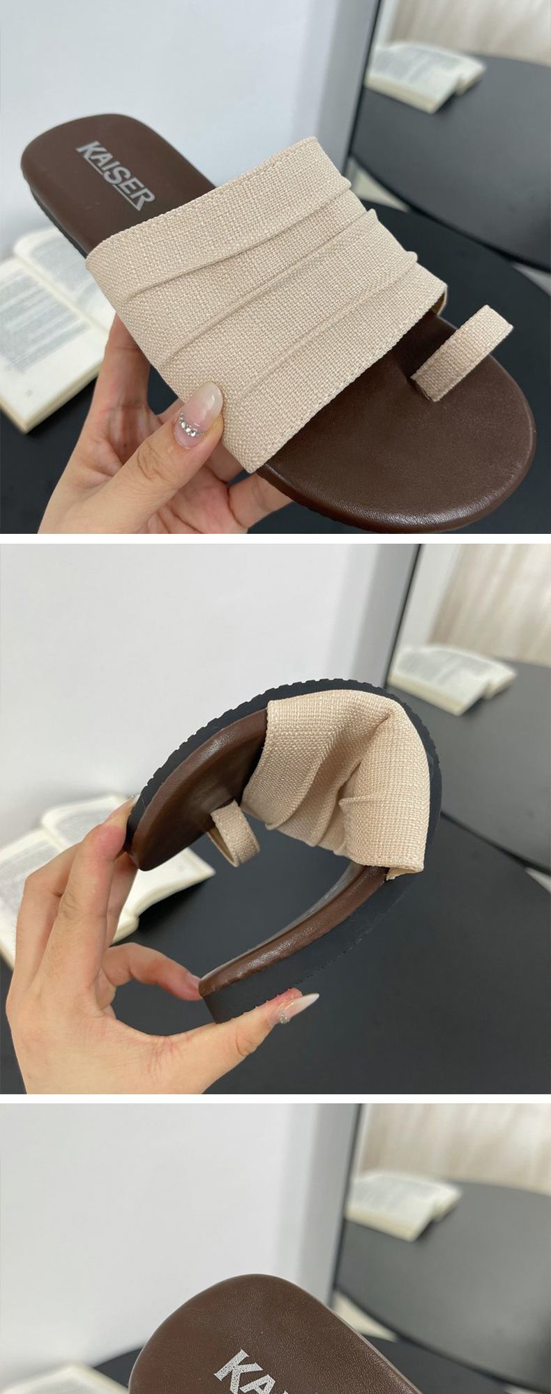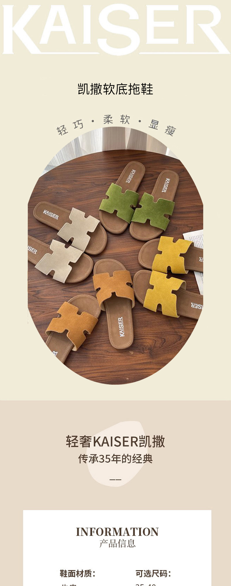 【预售3-7天内发货】【时髦百搭,遮肉显脚小】【轻盈优雅】夏季新款女意大利凯撒KAISER软底软面慵懒假日真皮H拖鞋鞋褶皱亚麻套趾拖鞋100%