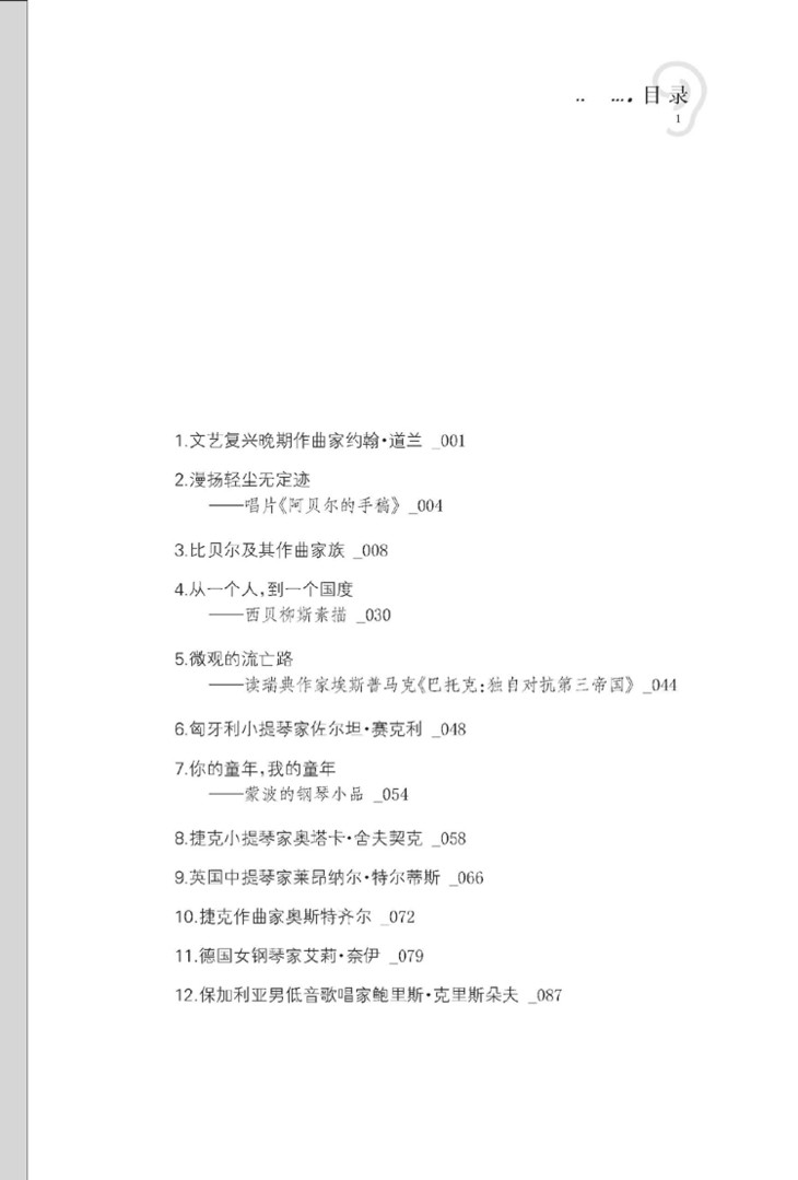 本书是青年乐评人詹湛先生的乐评文集,文章大多数在《音乐周报》《爱乐》等杂志或报纸上发表过,内容为乐评范围中“议人”类文章。