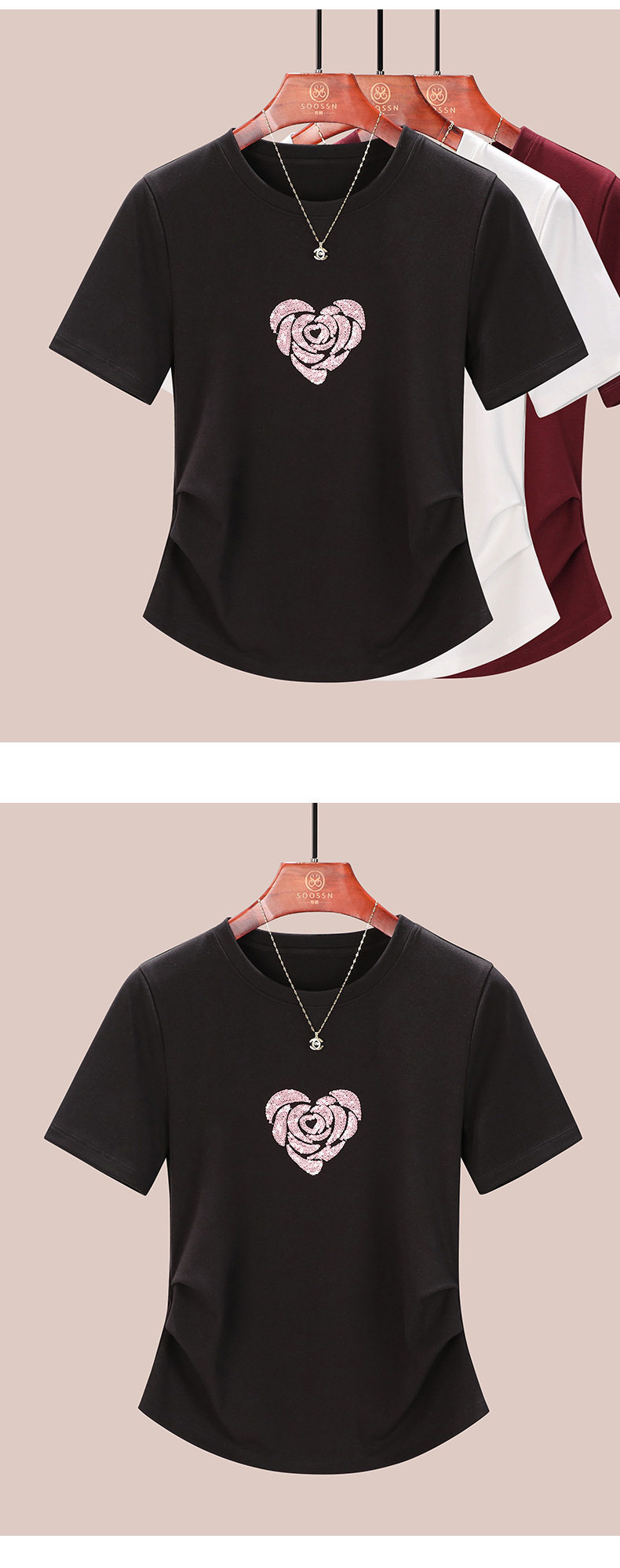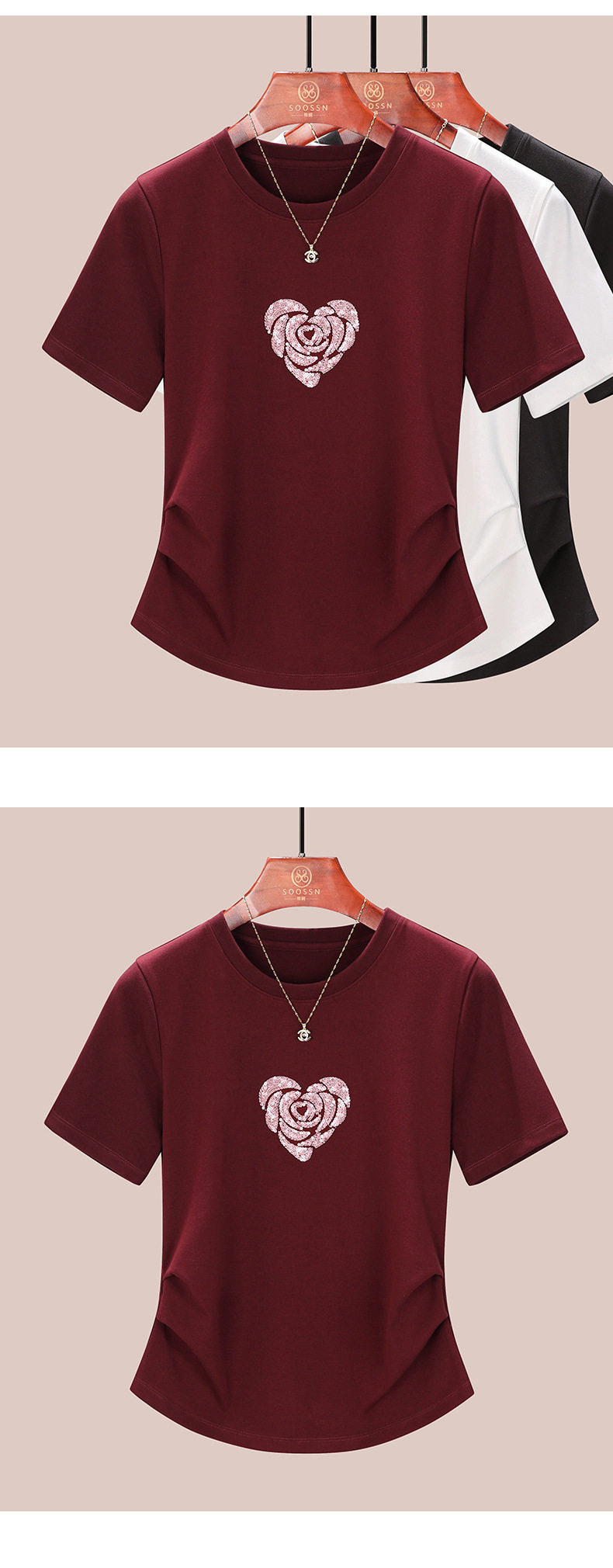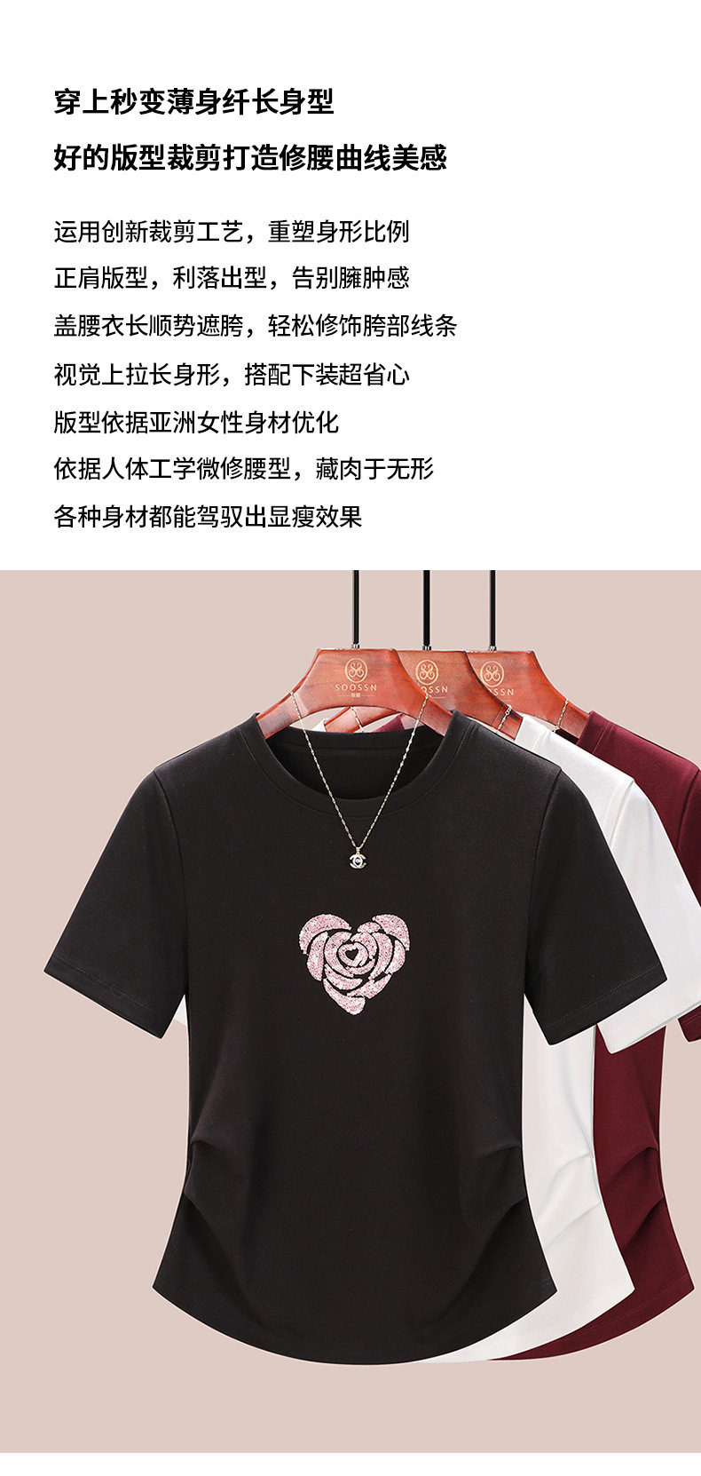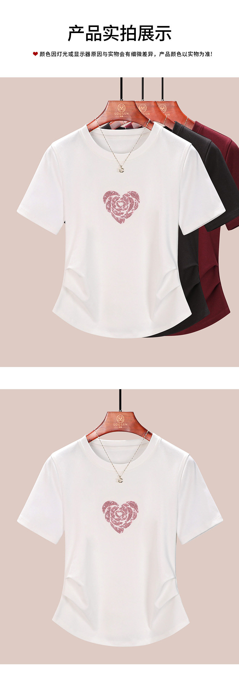 正肩短袖t恤女立体亮片爱心刺绣夏季褶皱收腰上衣女 BY-M679
