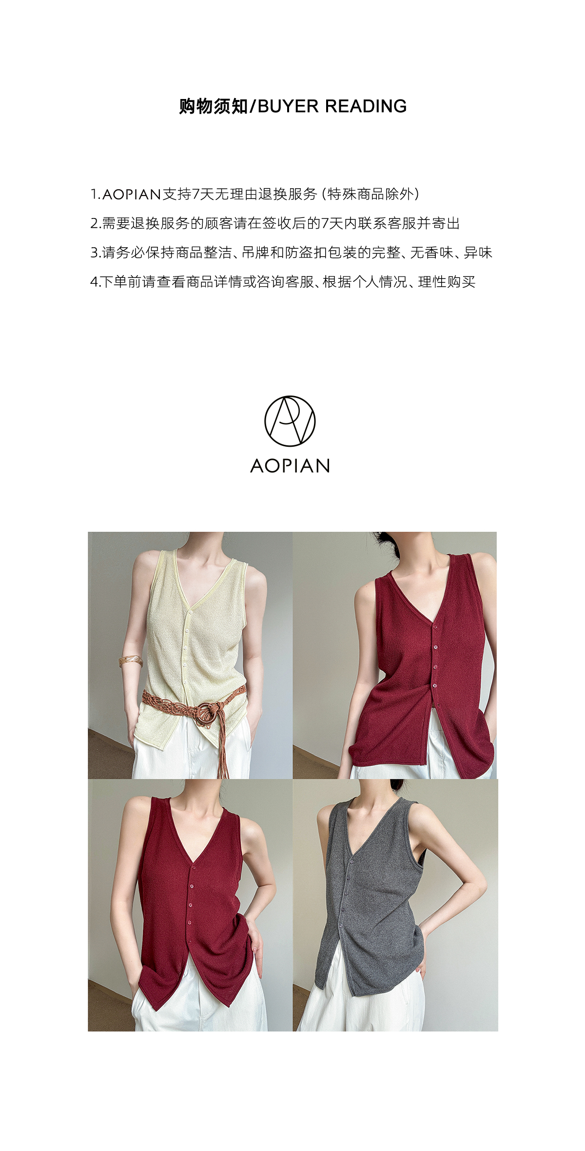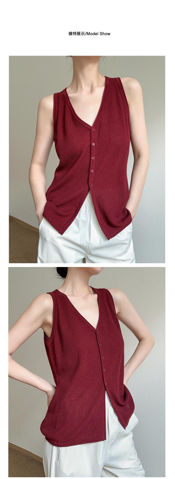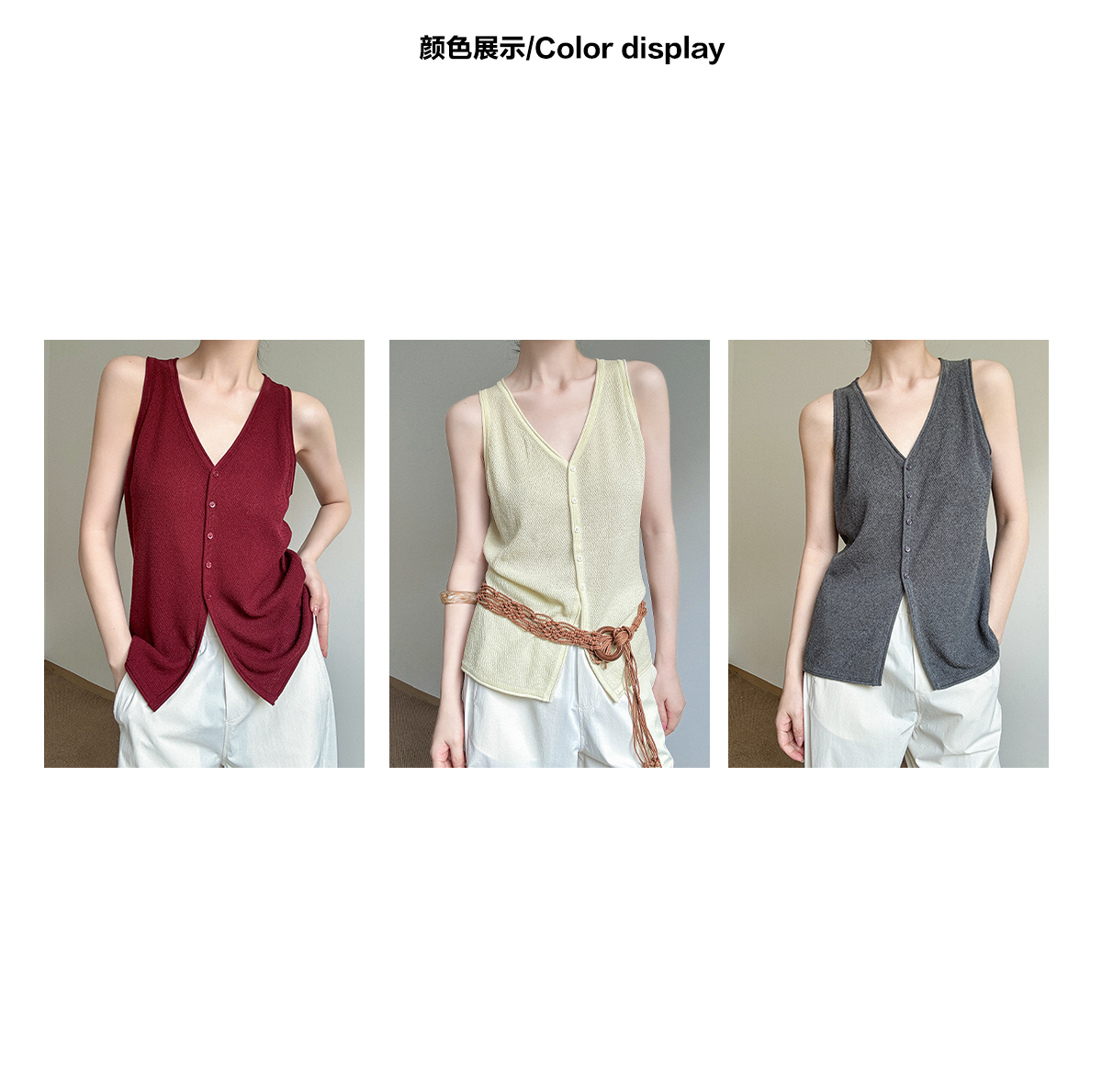 奥篇V领纽扣马甲 复古老钱风针织小背心无袖百搭显瘦开衫马甲