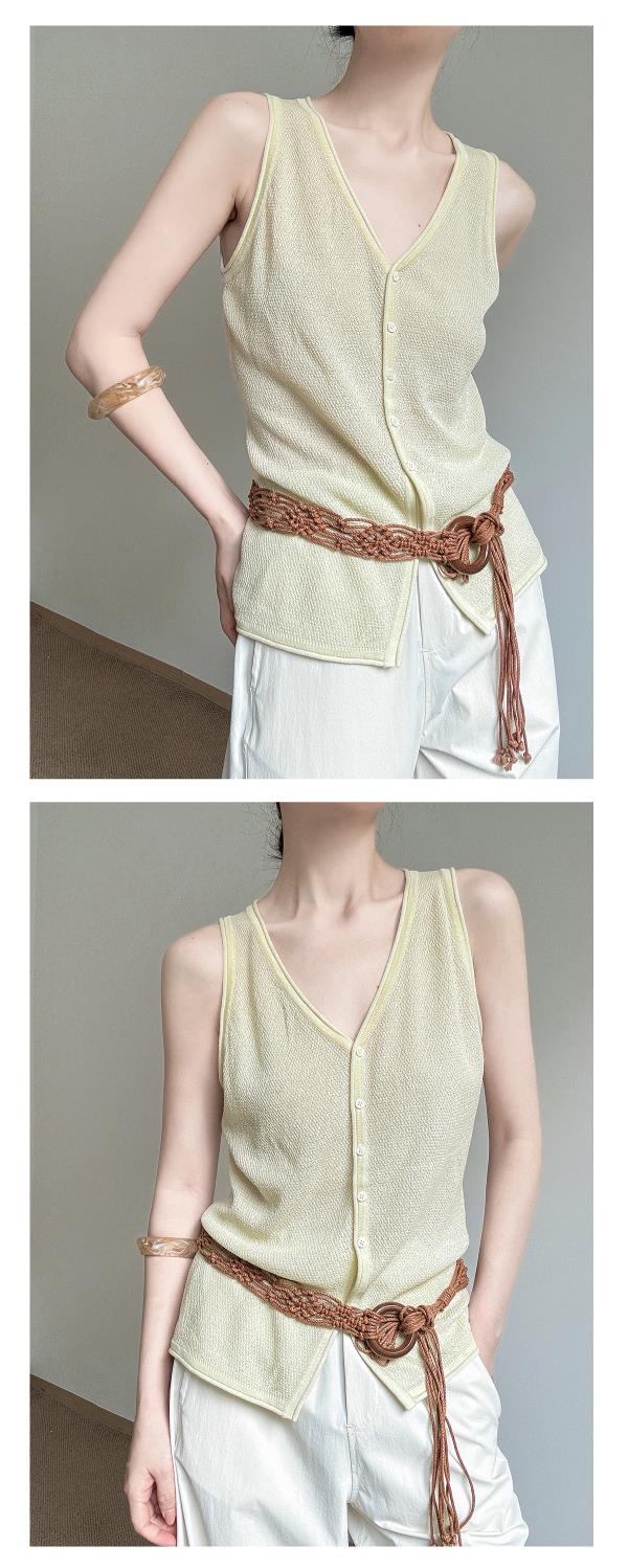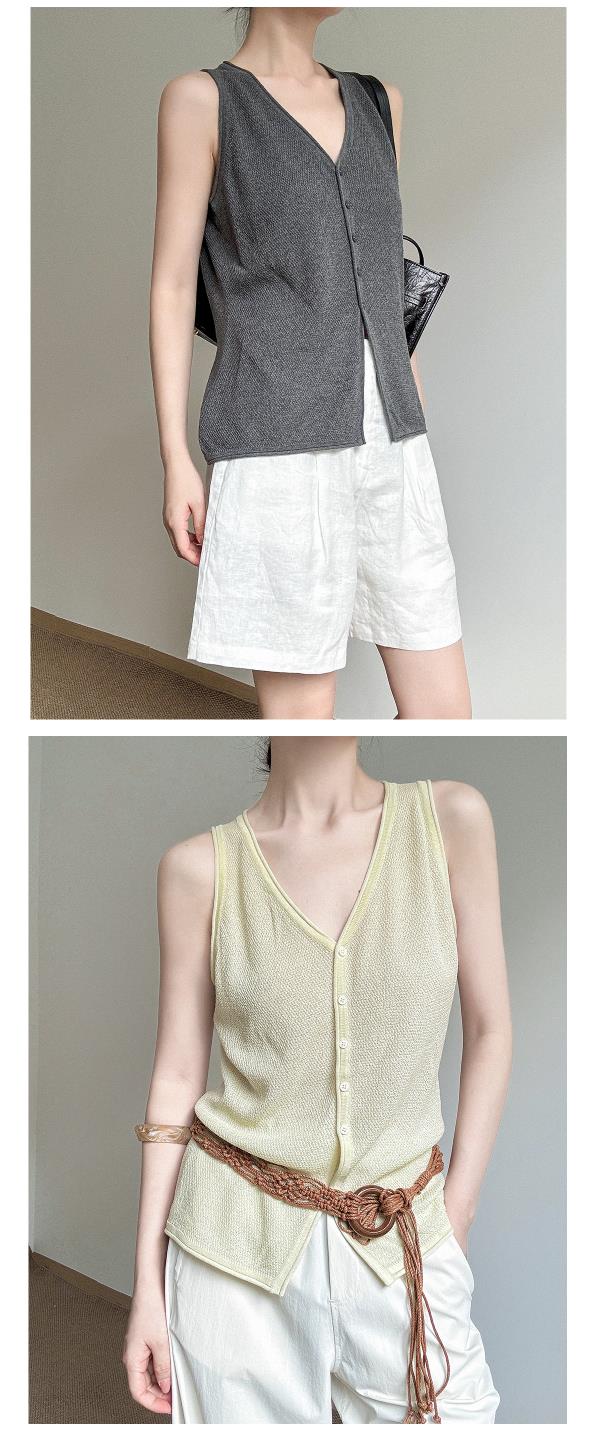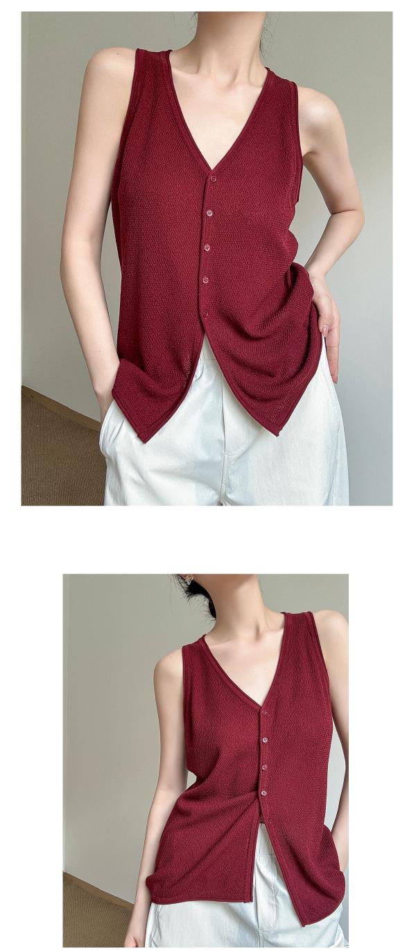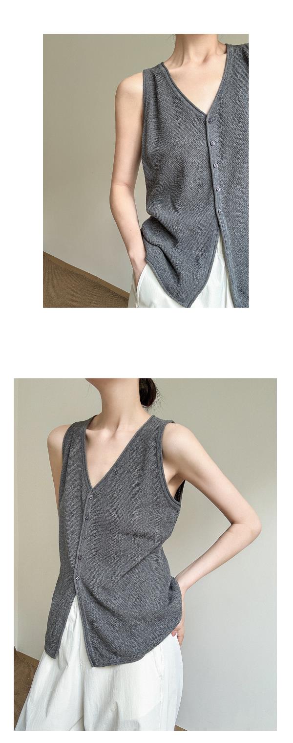 奥篇V领纽扣马甲 复古老钱风针织小背心无袖百搭显瘦开衫马甲