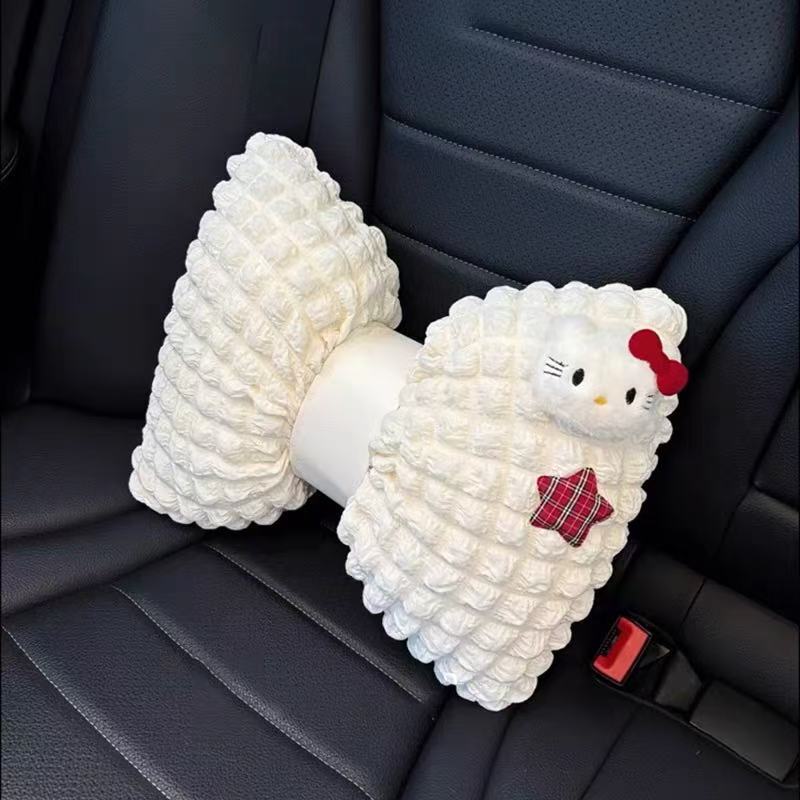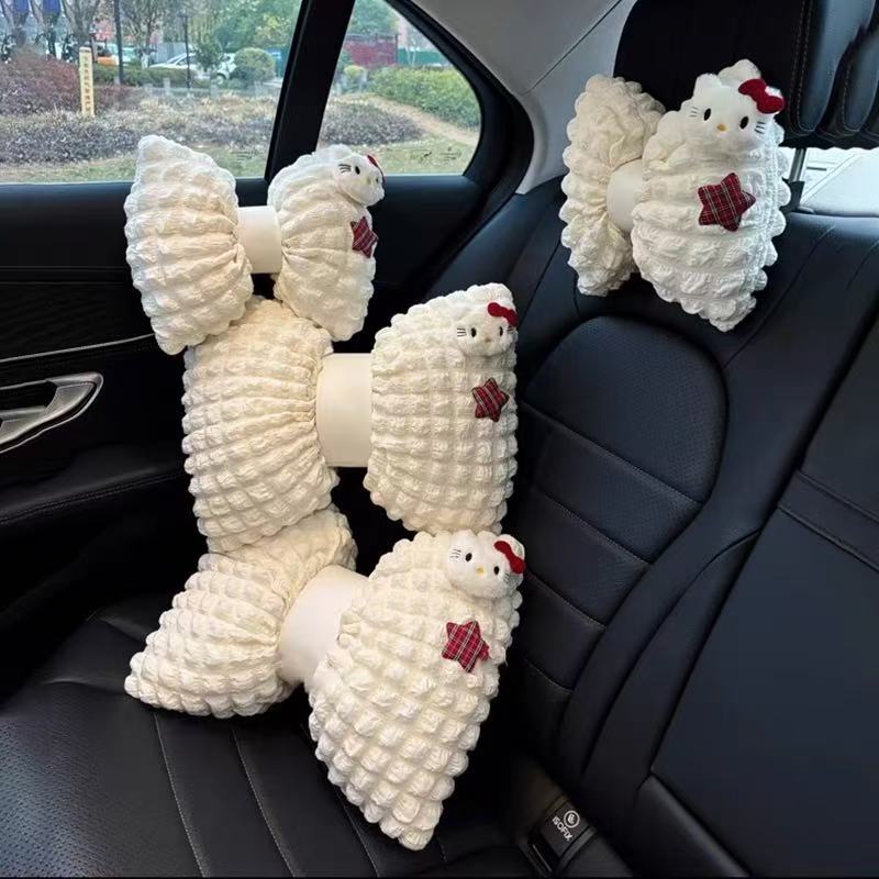 【柔软亲肤!耐用】可爱少女心Kitty汽车头枕护颈枕透气车用护颈枕靠枕汽车内饰用品。xb