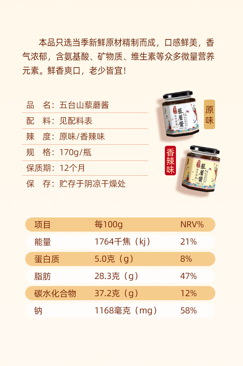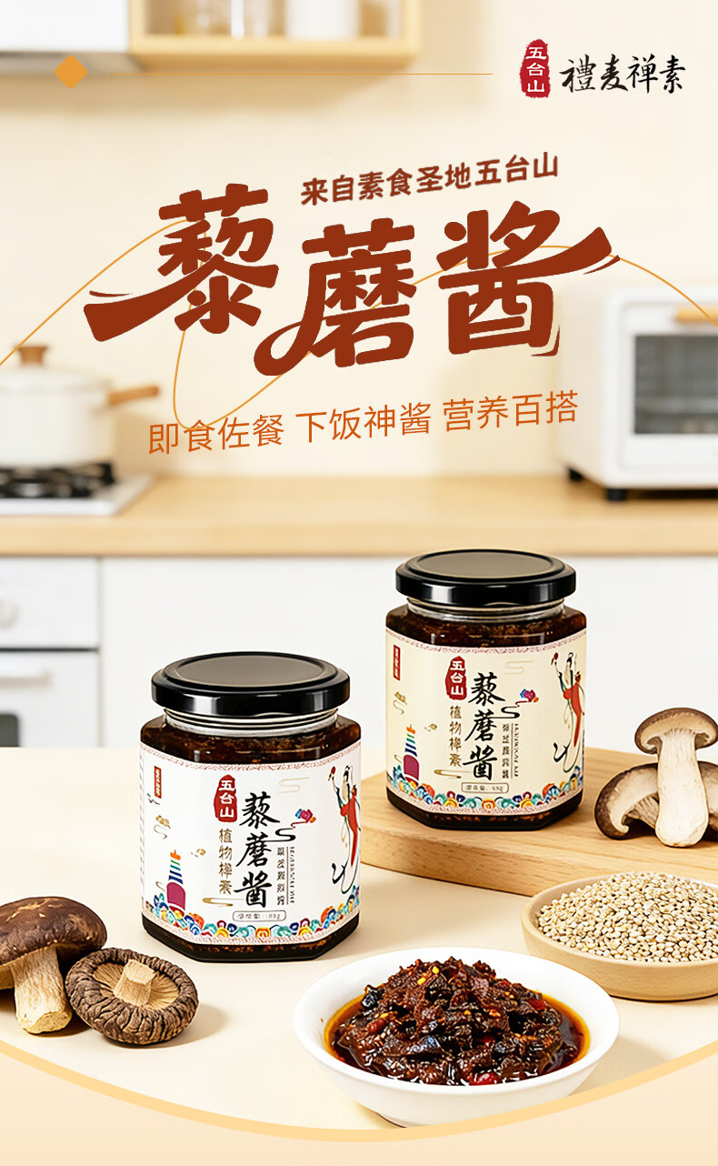 礼麦·拌饭酱下饭菜佐餐调味品 五台山特产 素食原味藜蘑酱礼盒170g*4瓶