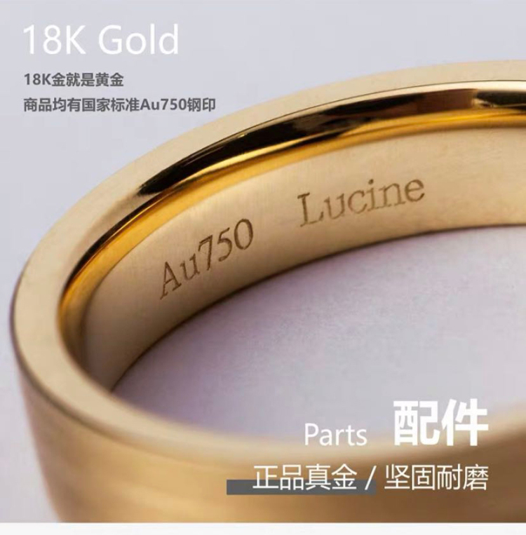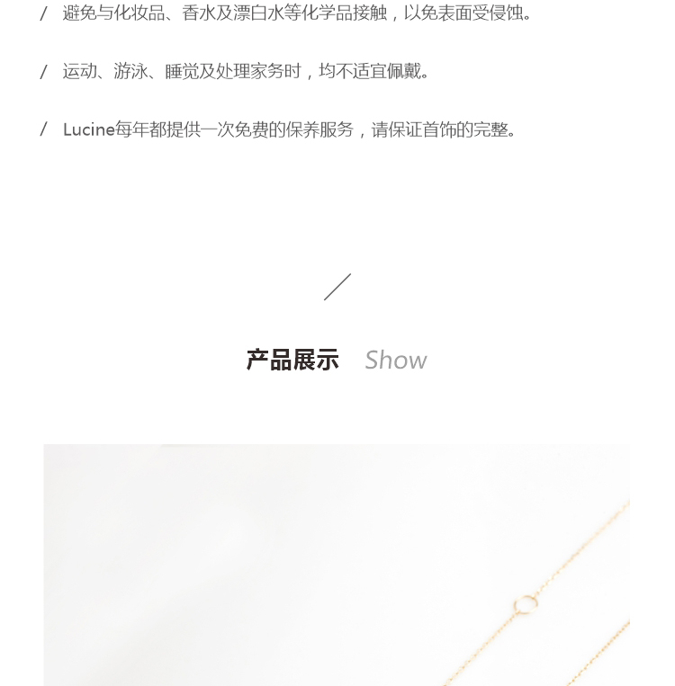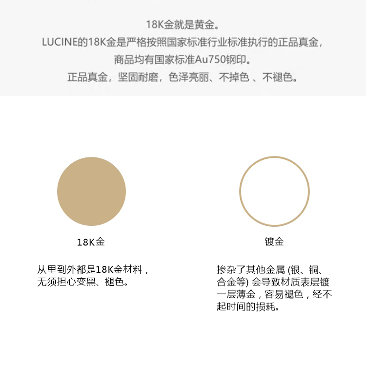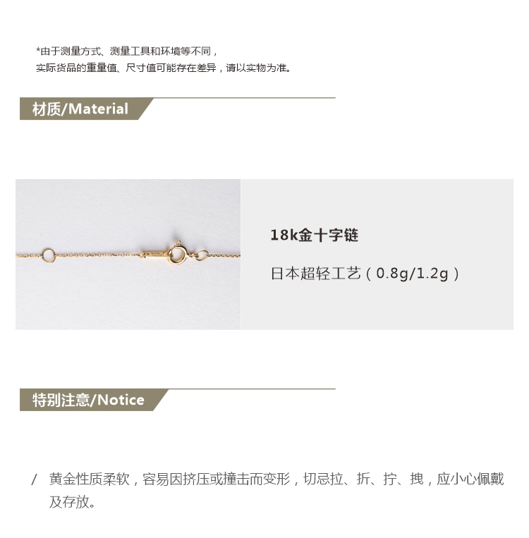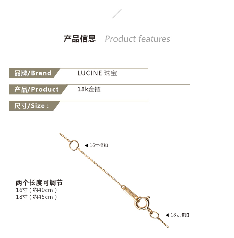 LUCINE K金彩金18K金链十字黄金链可调长短素链真金AU750锁骨链女
