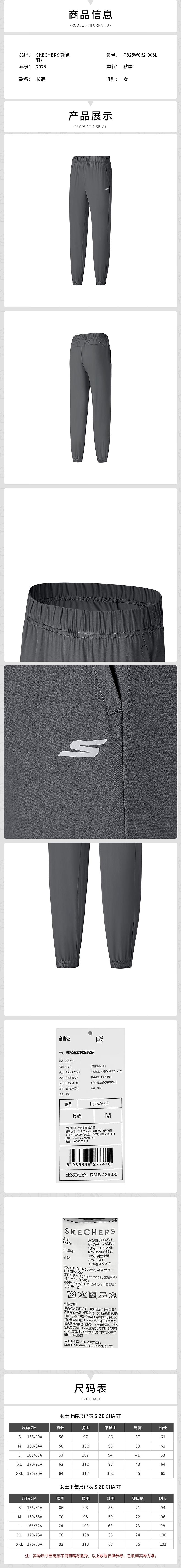 Skechers斯凯奇 女梭织长裤 P325W062-006L