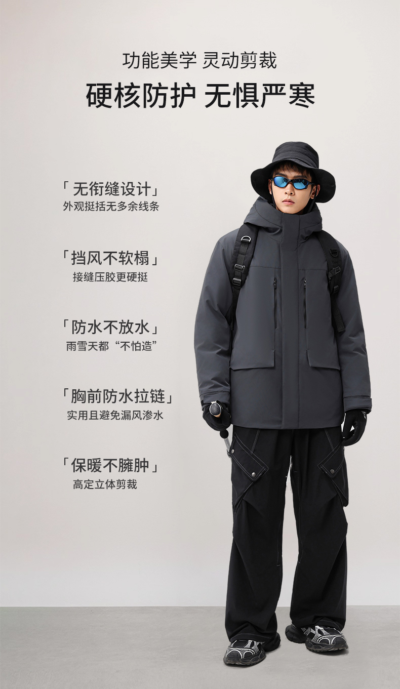 個调冬季新款户外机能男士商务通勤休闲短款探险羽绒服露营百搭羽绒服2012