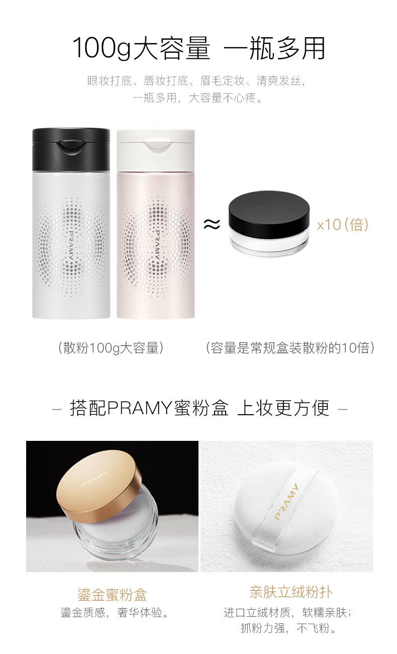 PRAMY/柏瑞美清透无暇丝柔蜜粉(大容量100g)