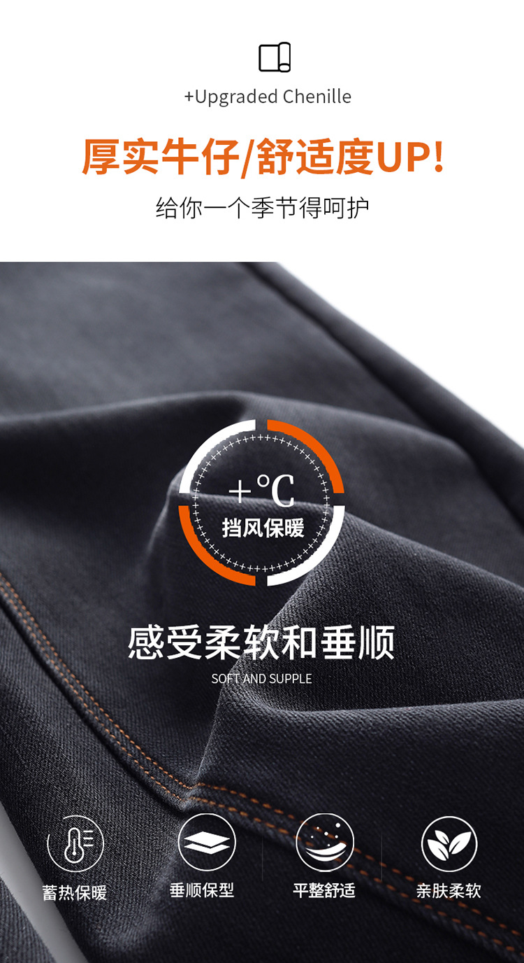 加绒牛仔直筒裤垂坠感,宽松显瘦阔腿裤洋气休闲长裤MYX-OZY-25322-L