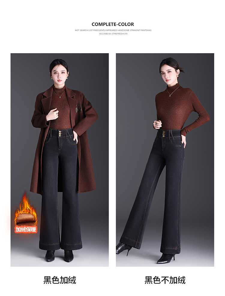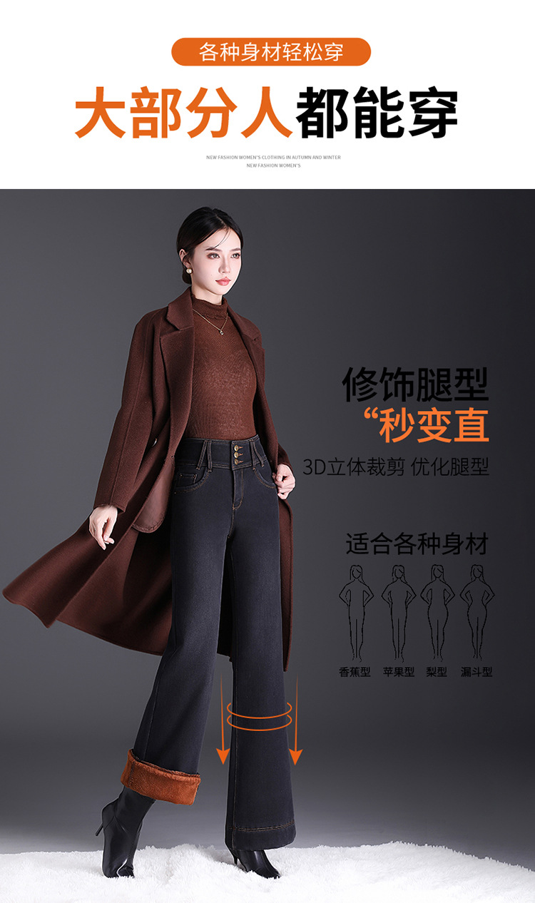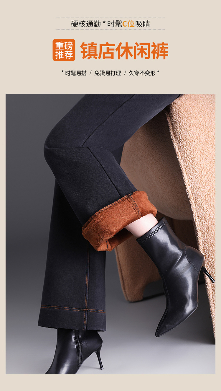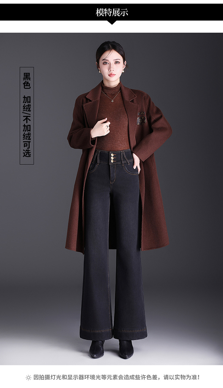 加绒阔腿裤宽松休闲裤,气质女装高腰厚款保暖长裤时尚牛仔裤MYX- GFL-9719-Y