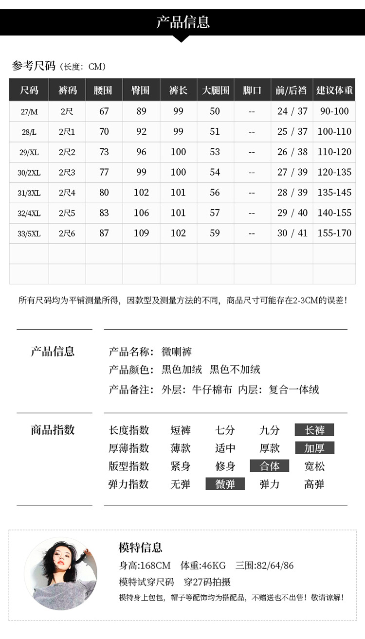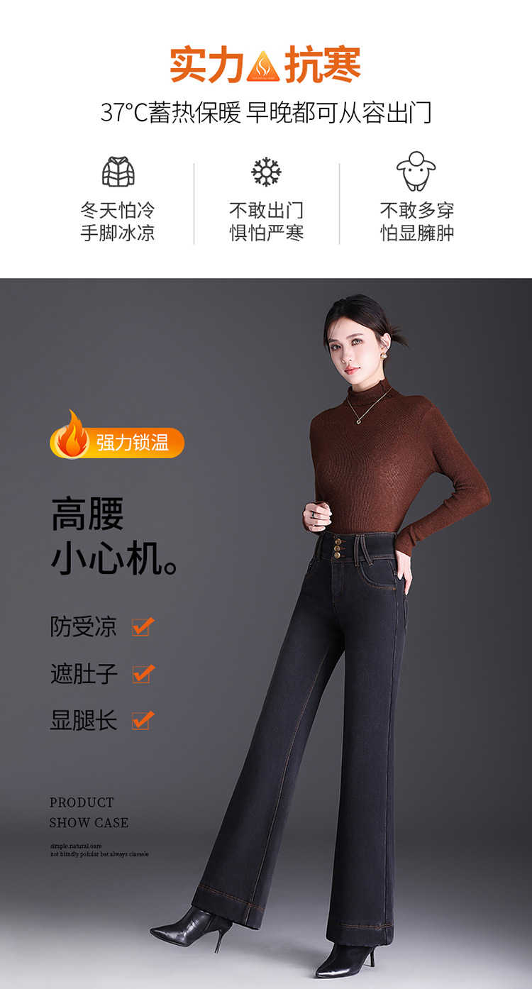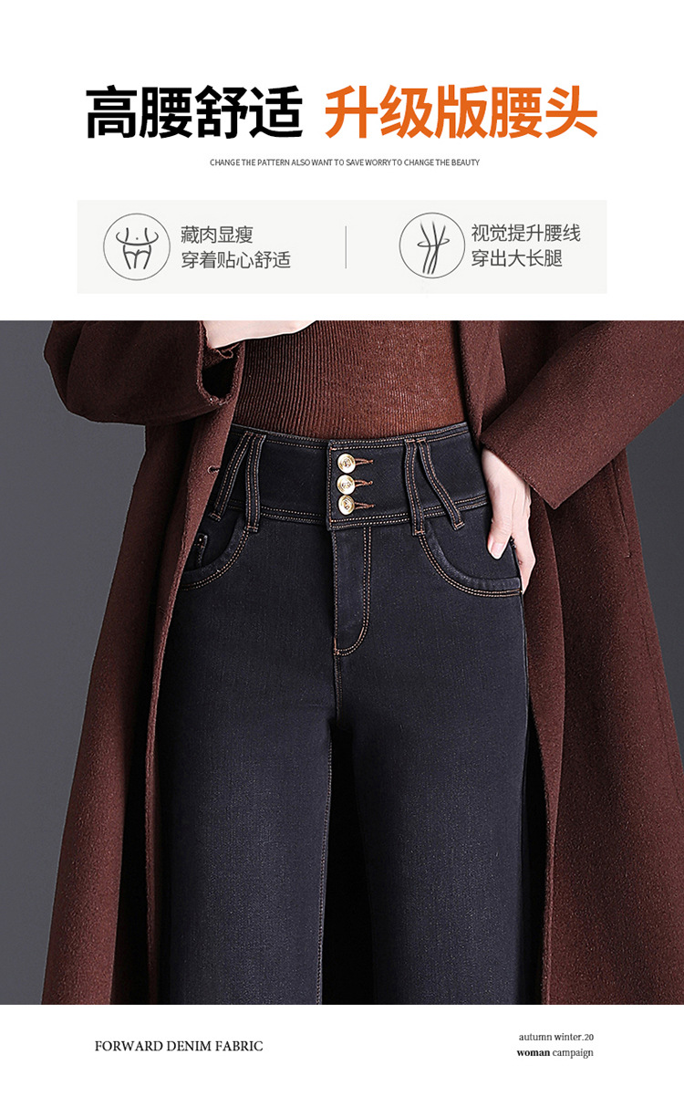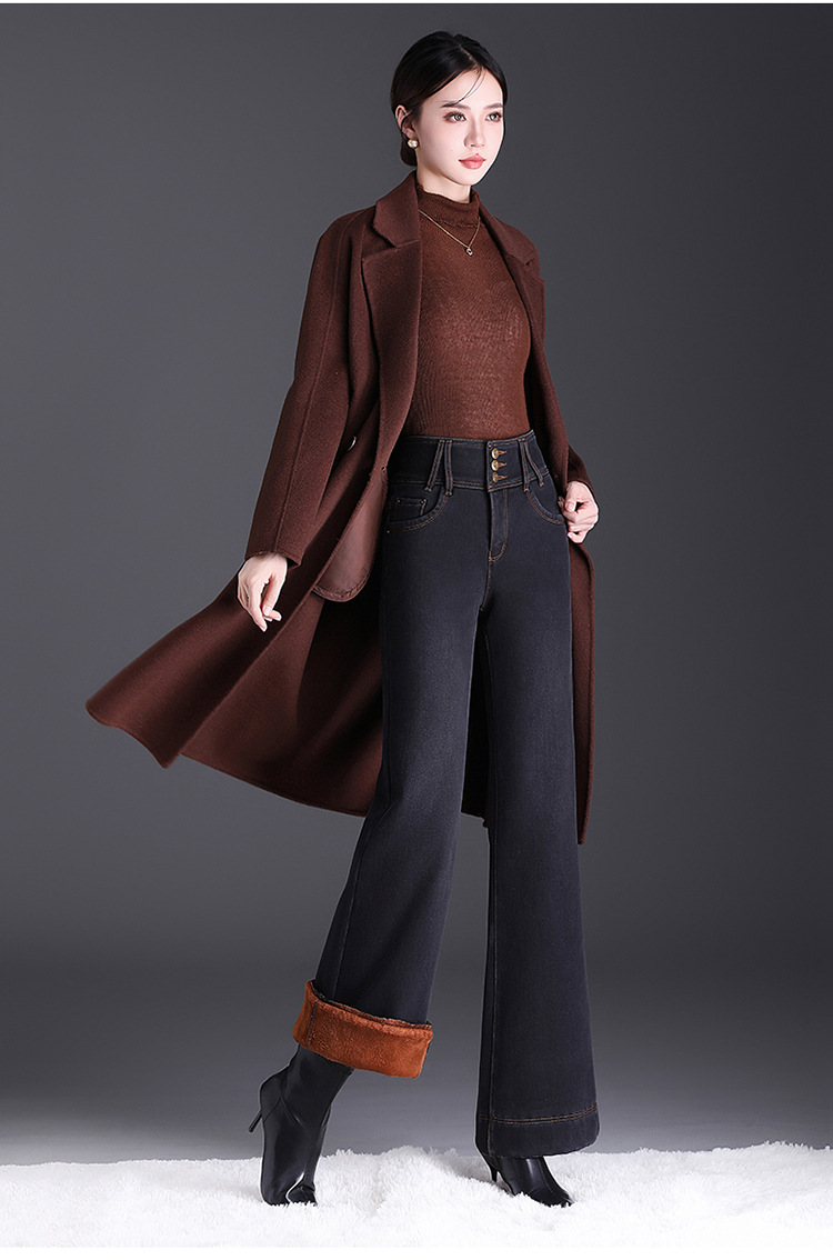 加绒阔腿裤宽松休闲裤,气质女装高腰厚款保暖长裤时尚牛仔裤MYX- GFL-9719-Y