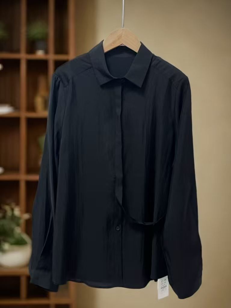 冰点价!仅限11.11!退货勿拍【秋新品】古泥7029 100%天丝黑色长袖衬衫-喜出