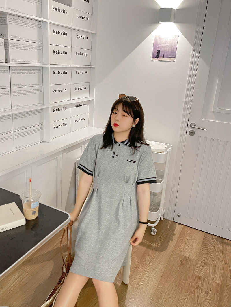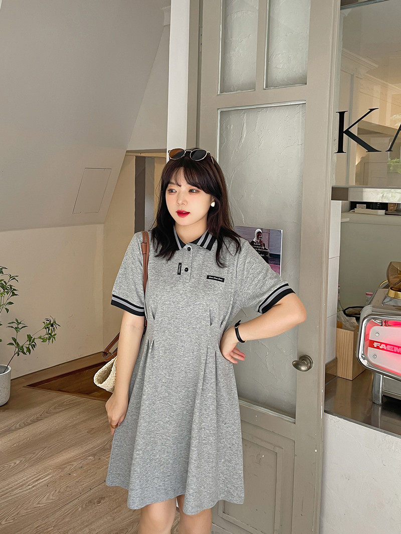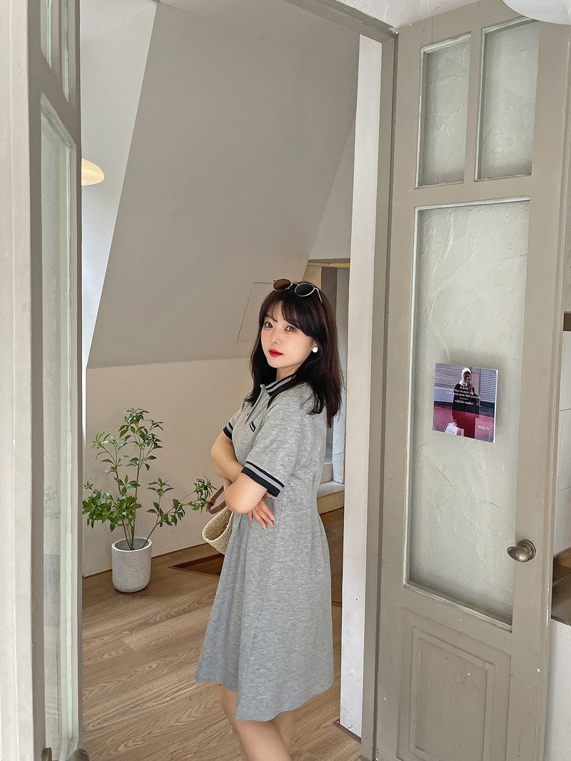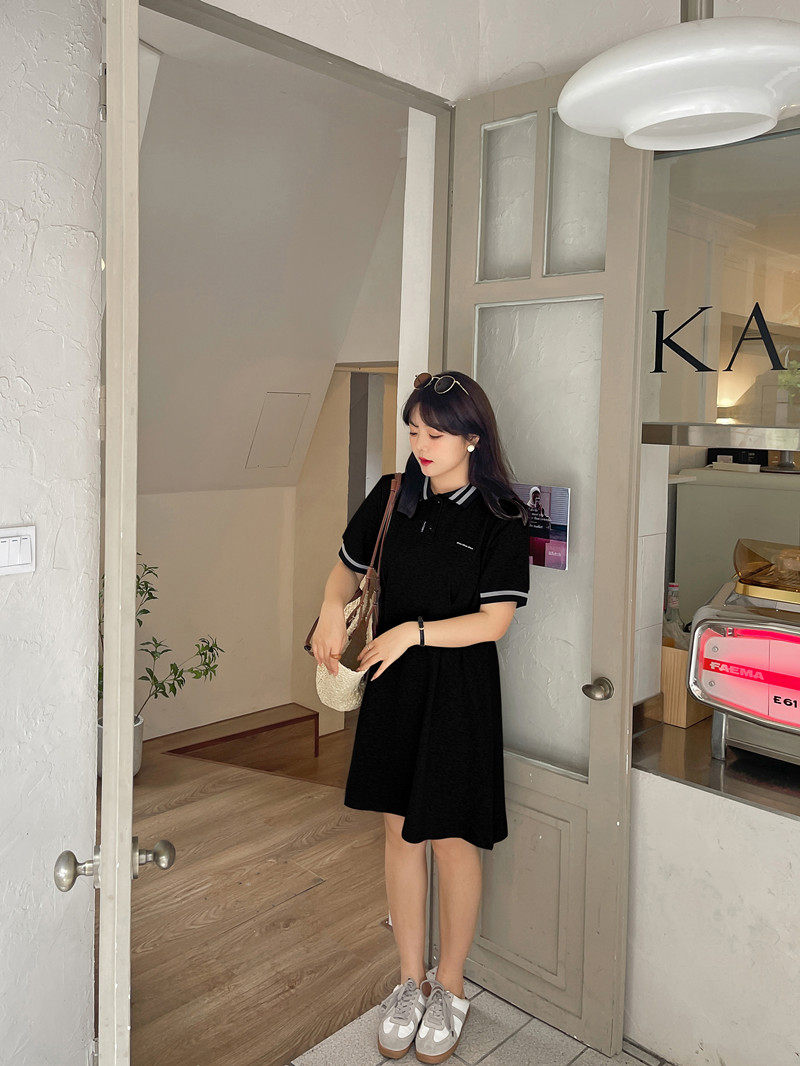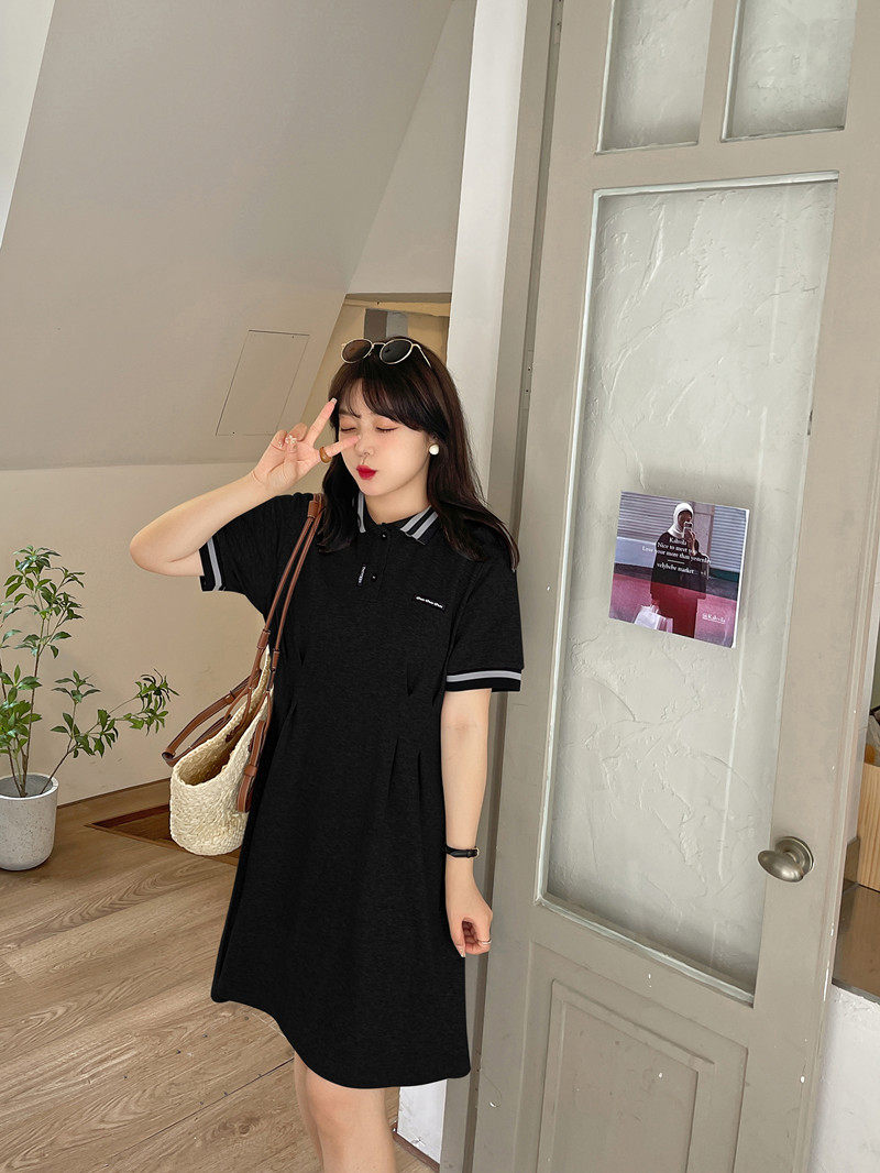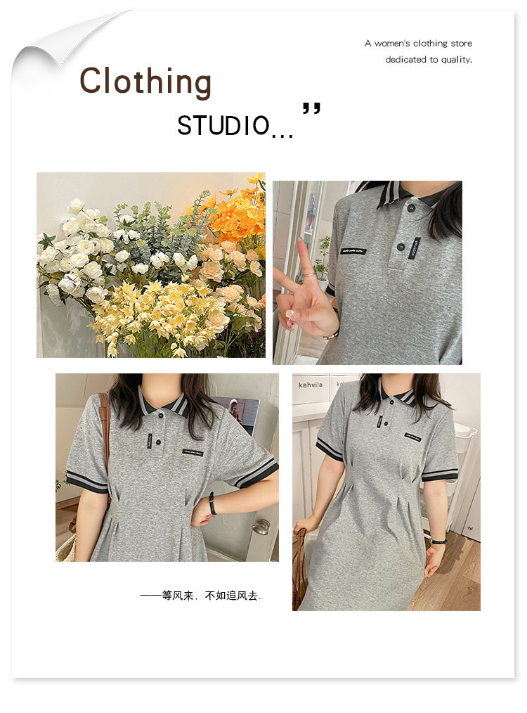 【诗铭洛可】XC7774T恤裙翻领拼色条纹领POLO连衣裙B18-2