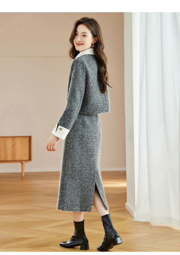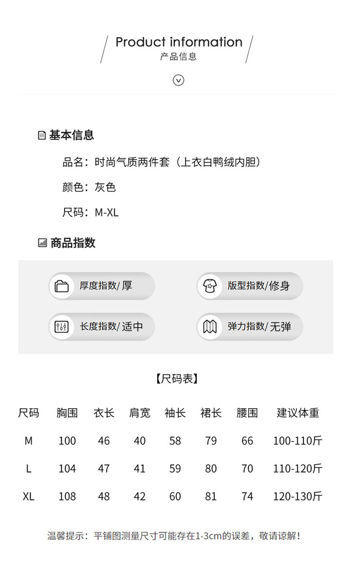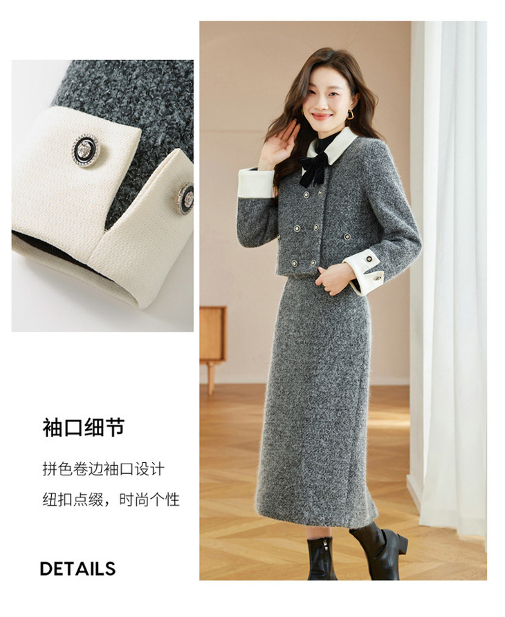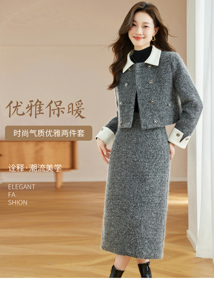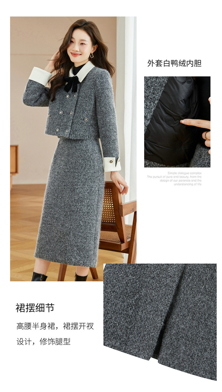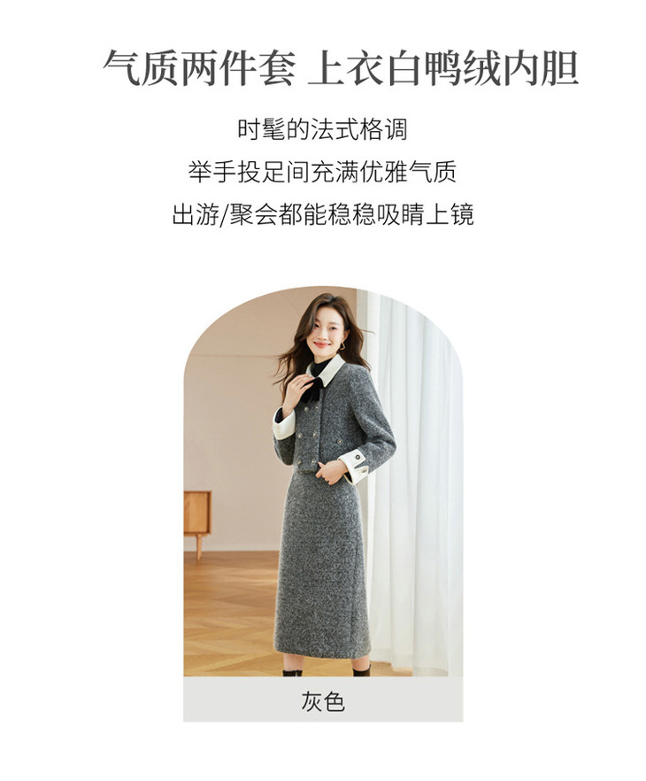 气质时尚小香风白鸭绒,加厚保暖上衣+半身裙两件套HR-WW52209