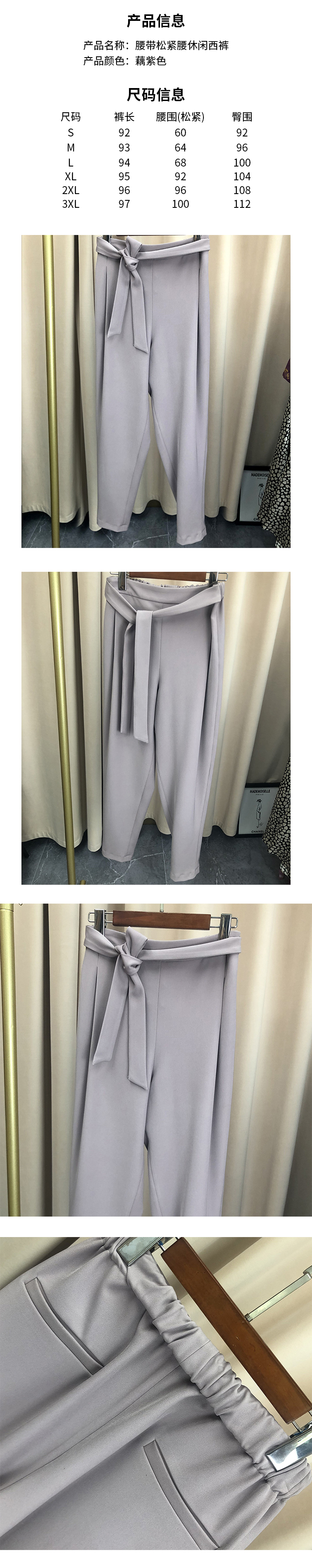 丁摩 春夏腰带松紧腰褶皱宽松垂感休闲西裤长裤19-57 -DJ99