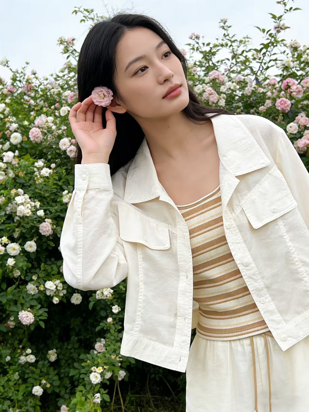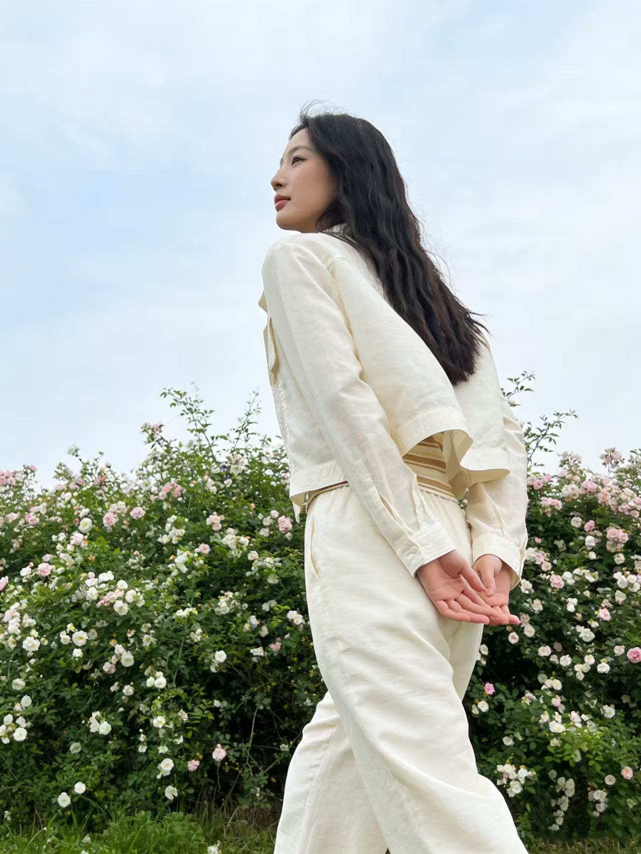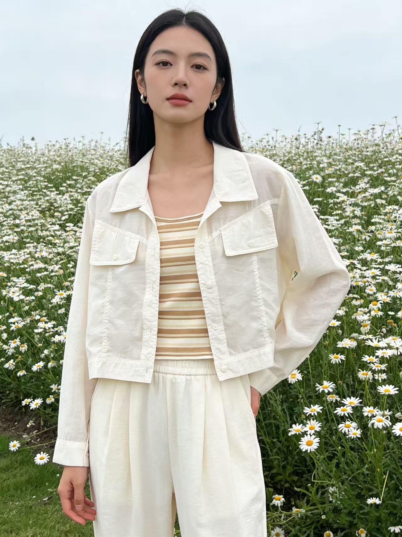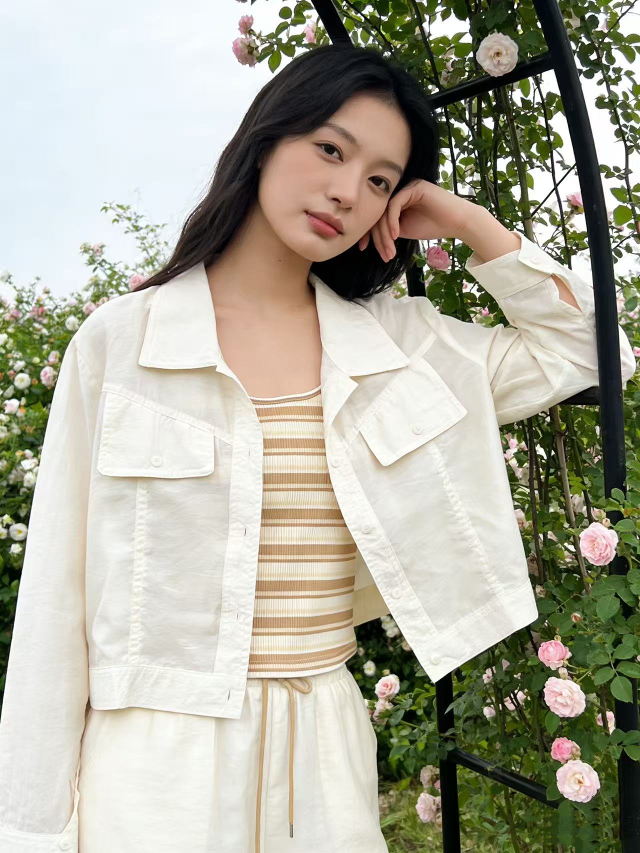 品牌促【自营】衣周期 (两件套)9123 23%天丝 短款衬衫➕纯棉背心 套装两件套上衣-喜出