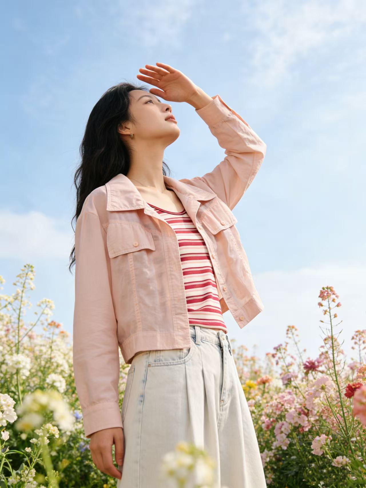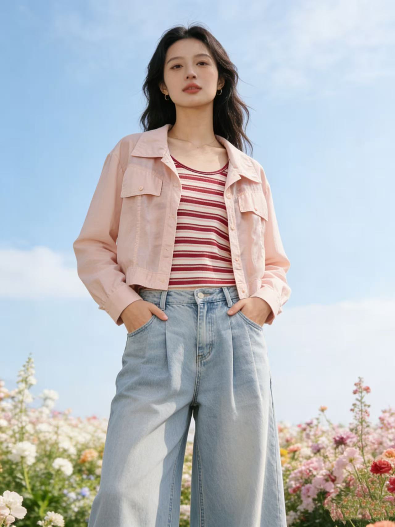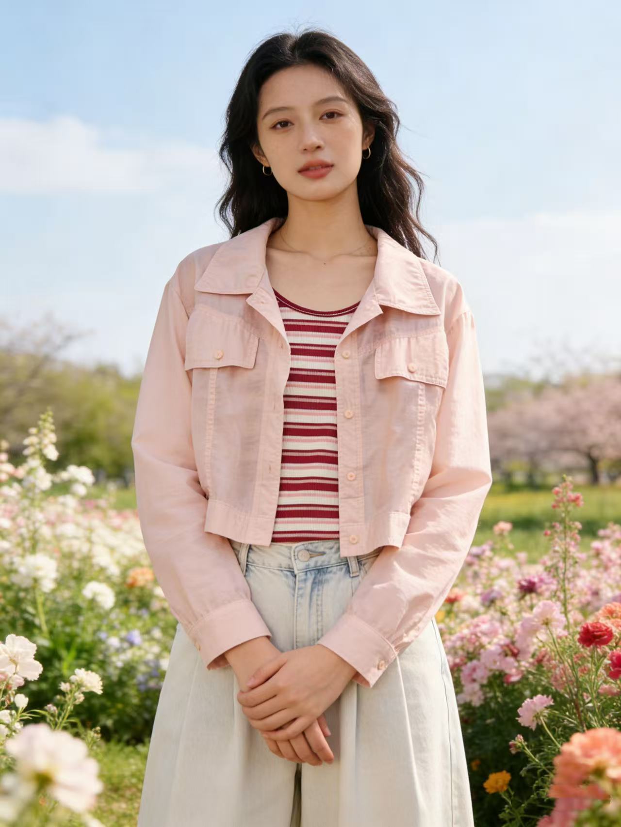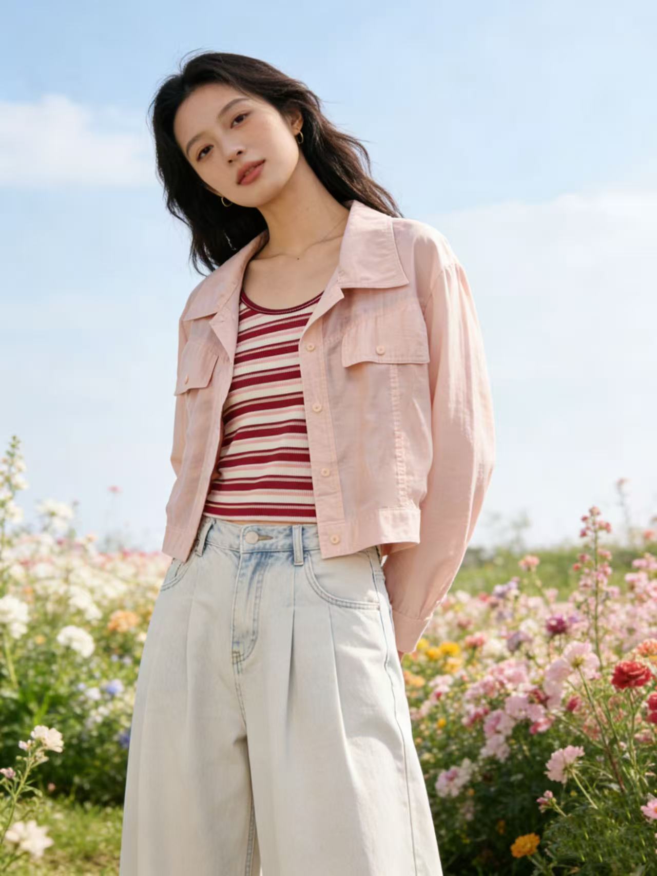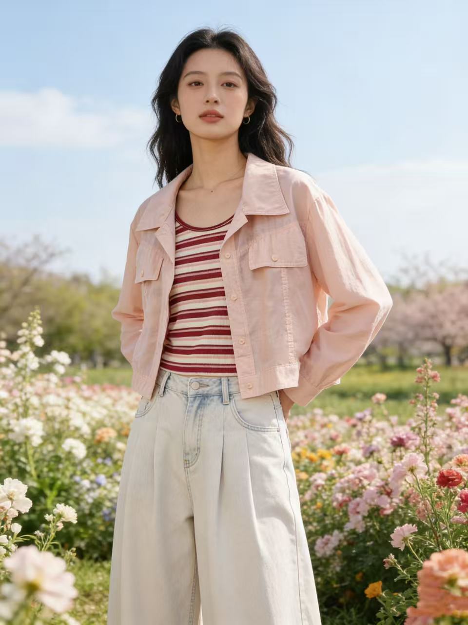 品牌促【自营】衣周期 (两件套)9123 23%天丝 短款衬衫➕纯棉背心 套装两件套上衣-喜出