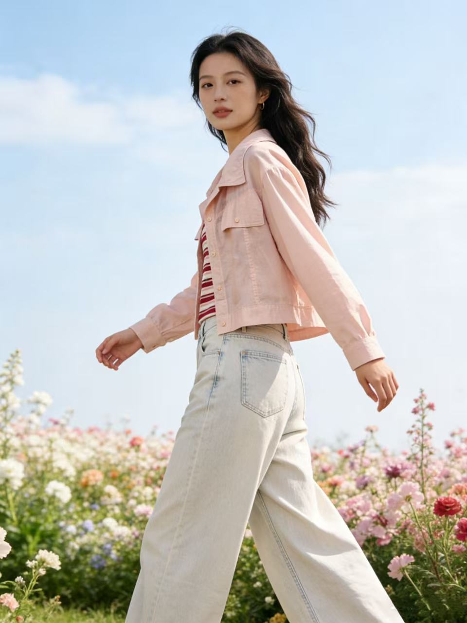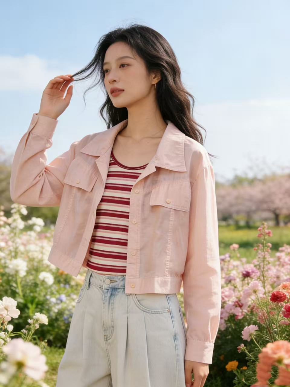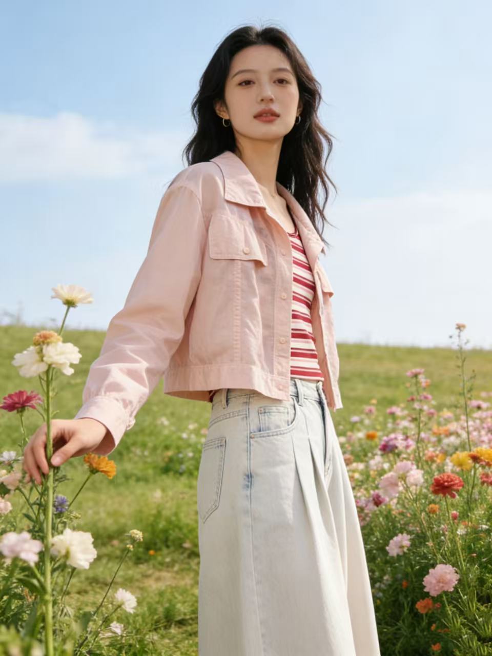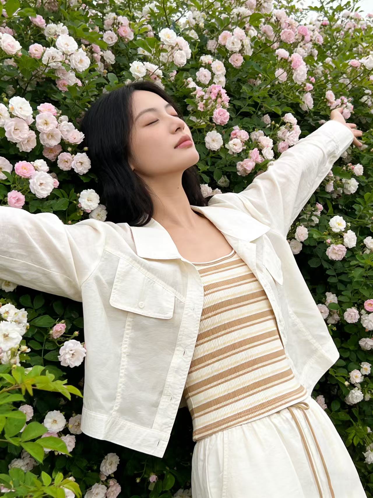 品牌促【自营】衣周期 (两件套)9123 23%天丝 短款衬衫➕纯棉背心 套装两件套上衣-喜出
