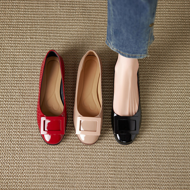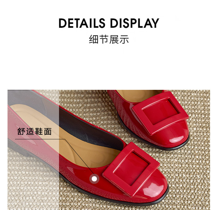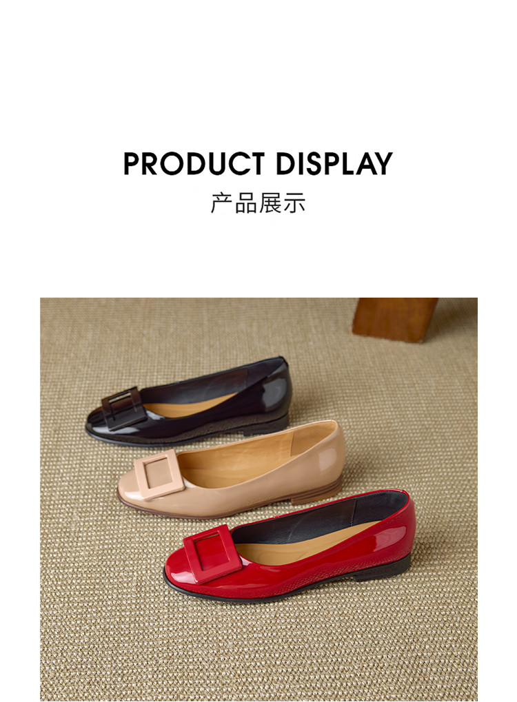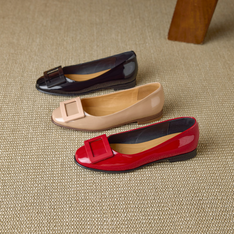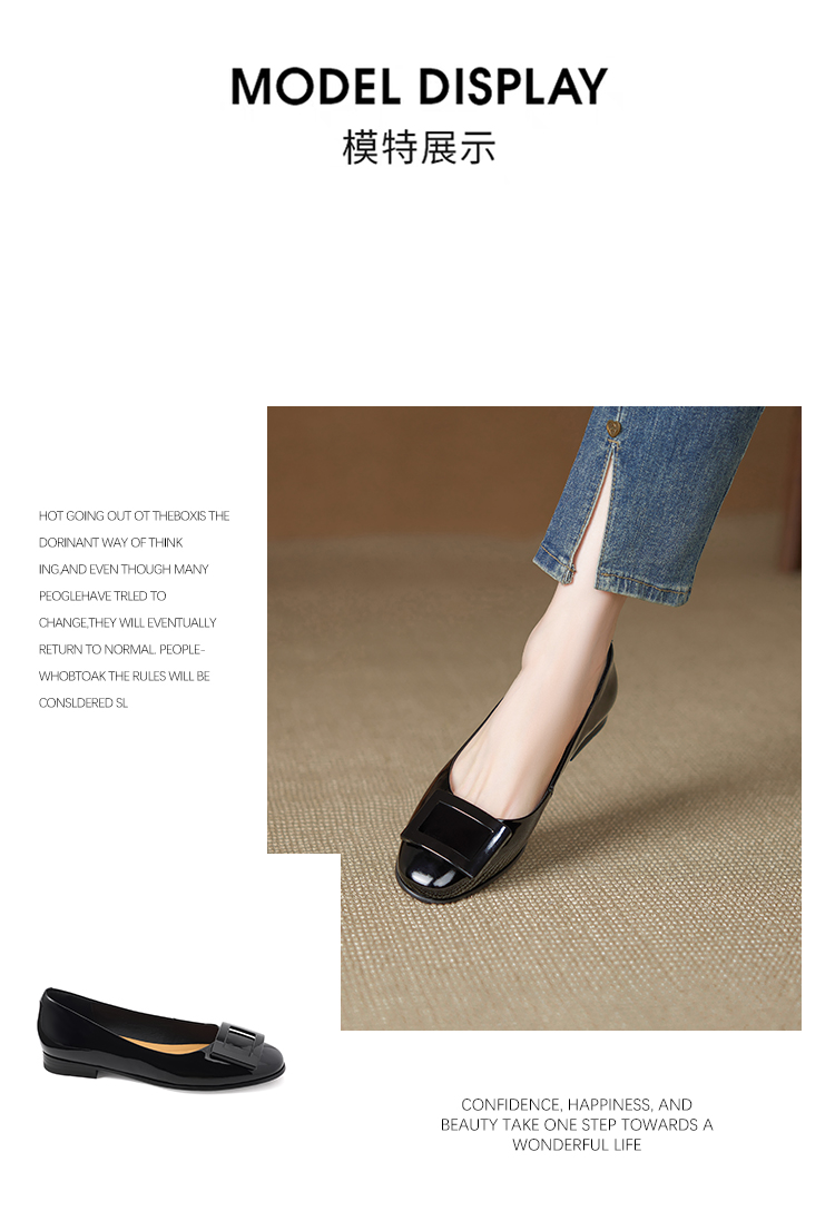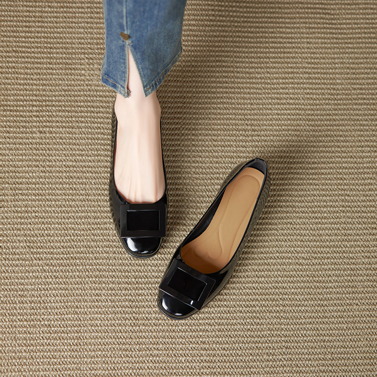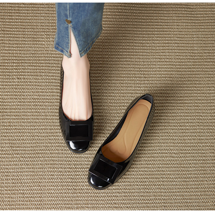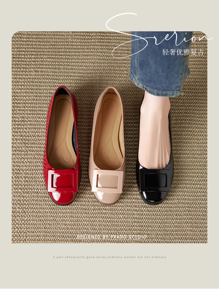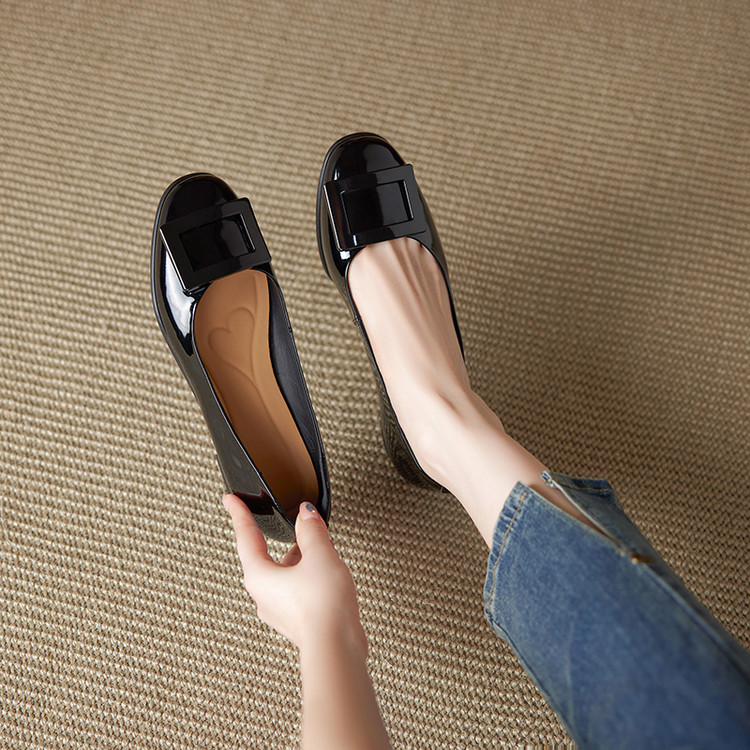 【预售5天】舒适百搭方扣浅口单鞋女圆头漆皮低跟工作鞋平底鞋女YS&A1820