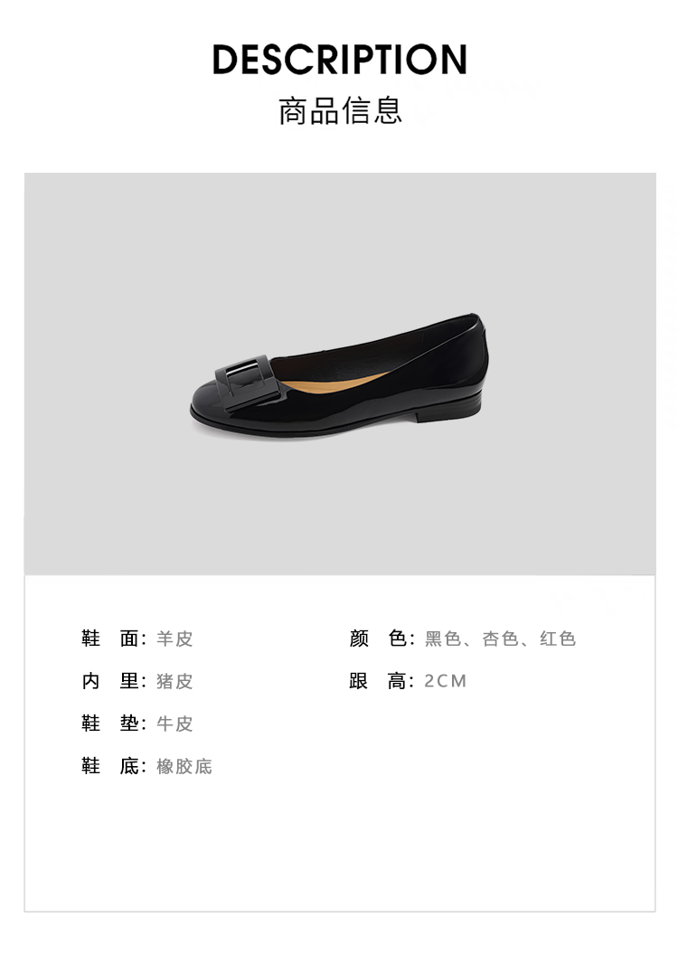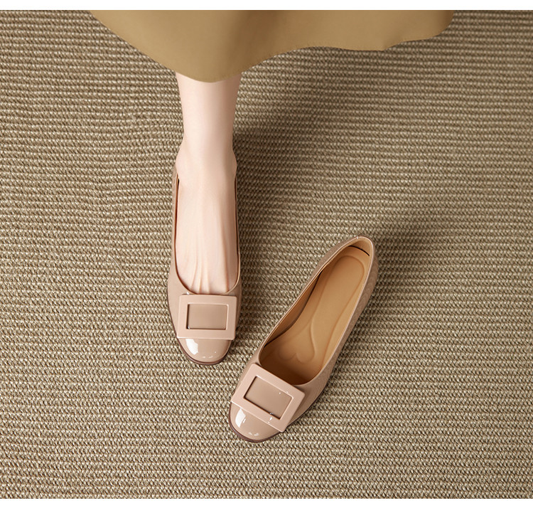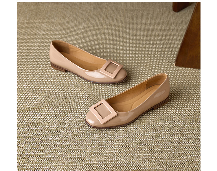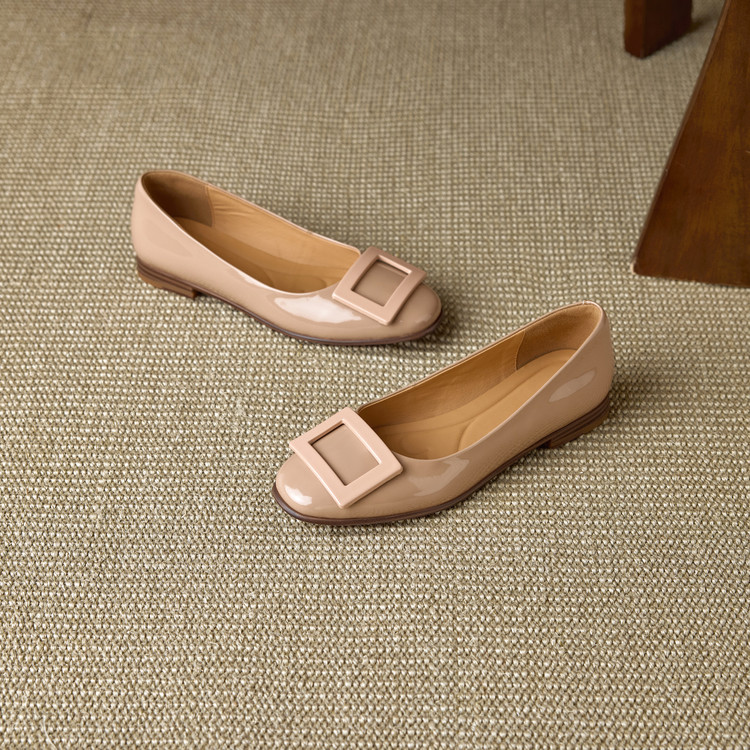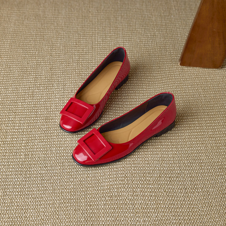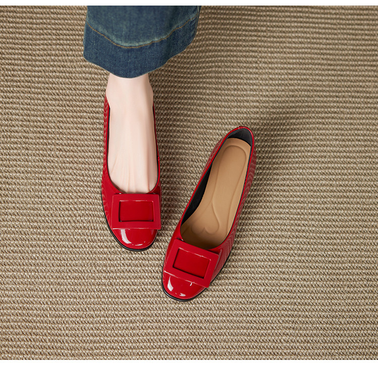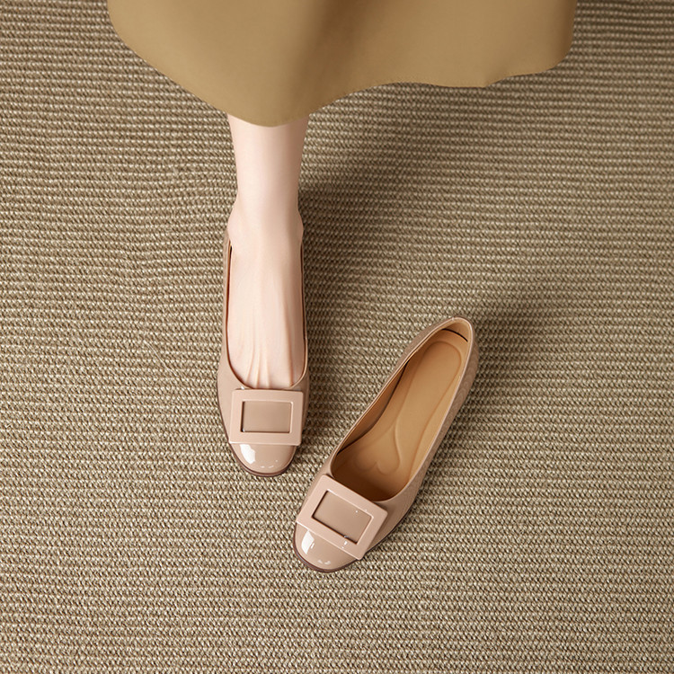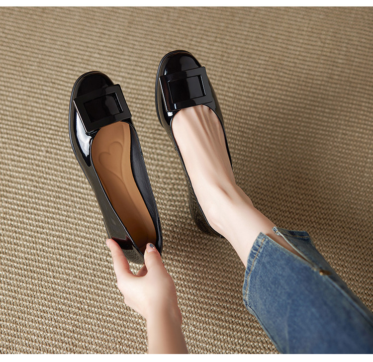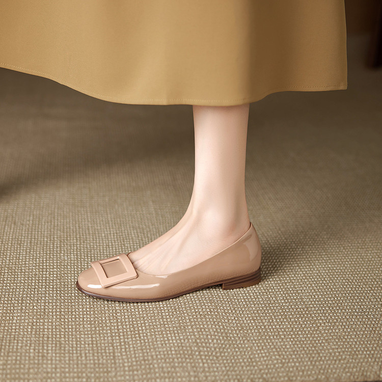 【预售5天】舒适百搭方扣浅口单鞋女圆头漆皮低跟工作鞋平底鞋女YS&A1820