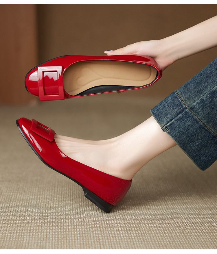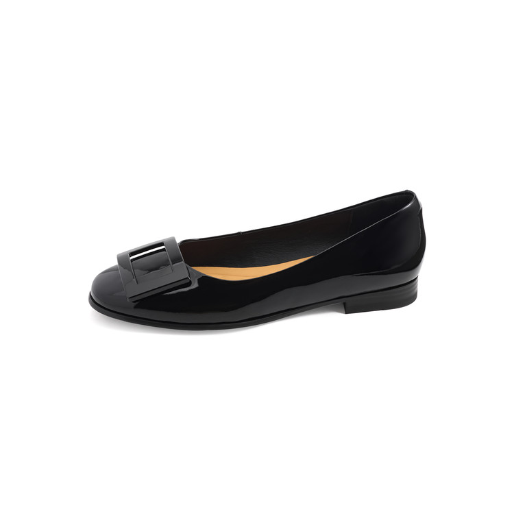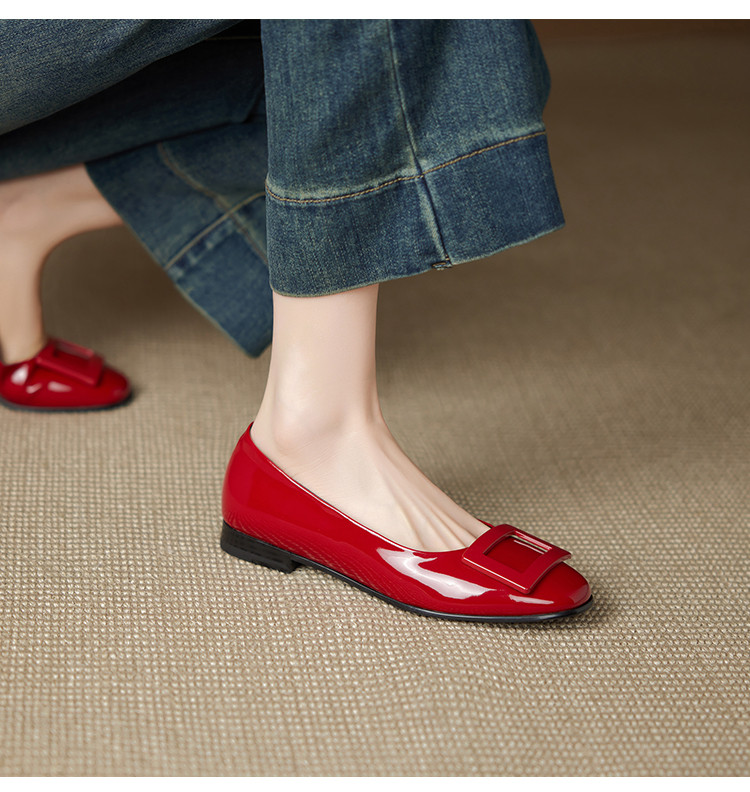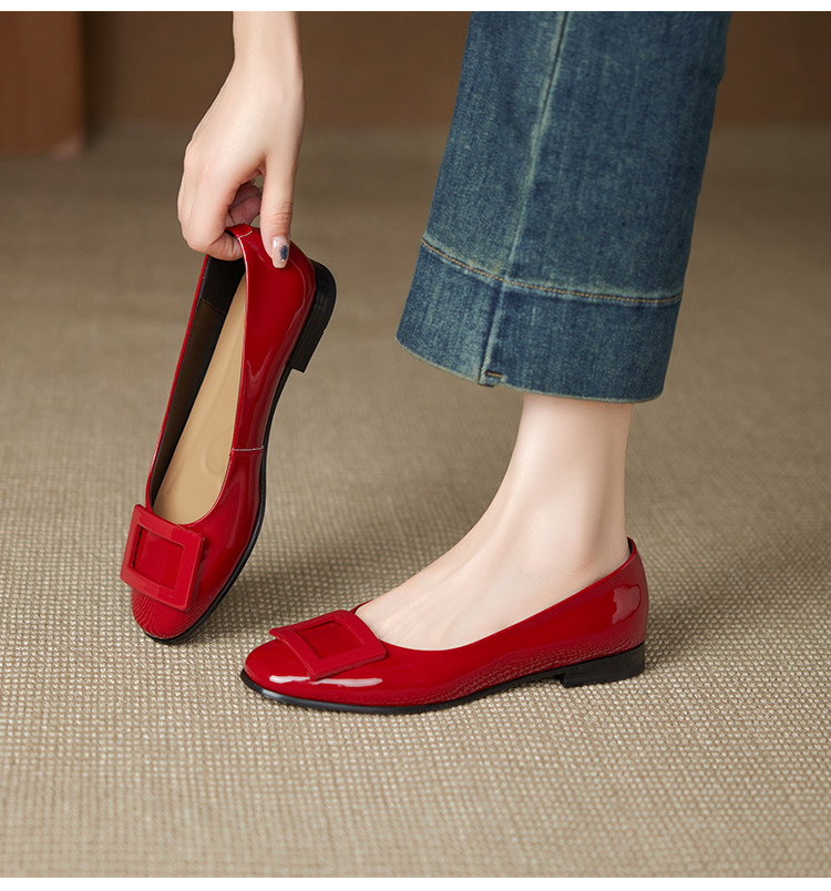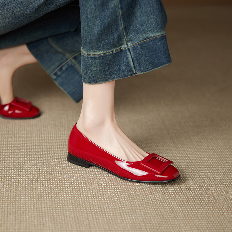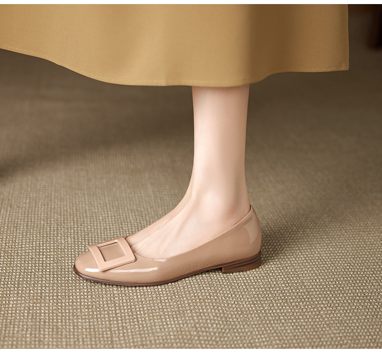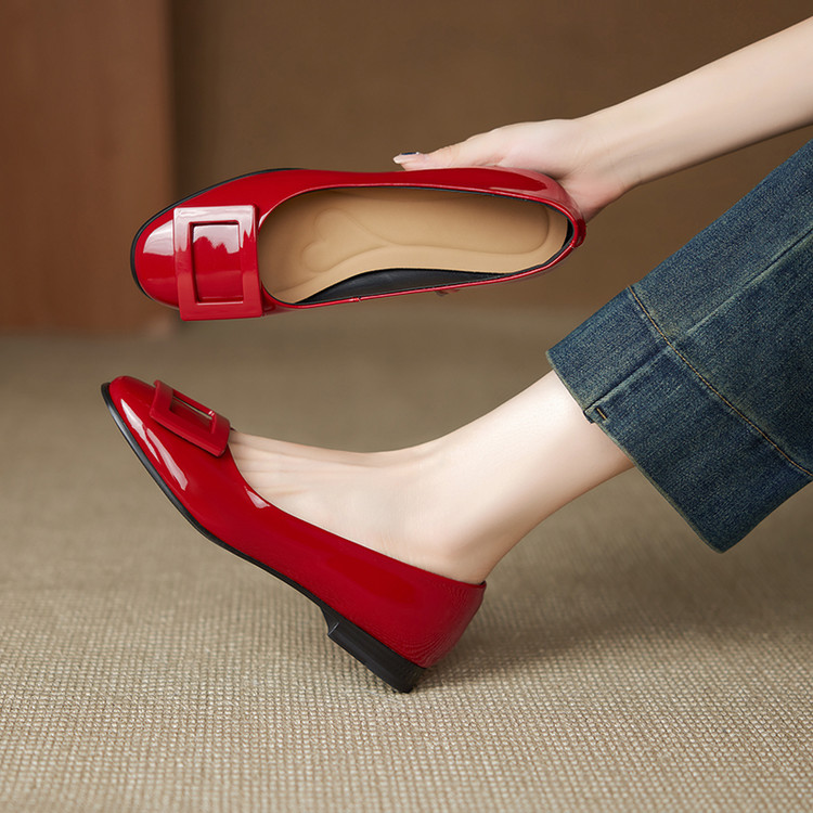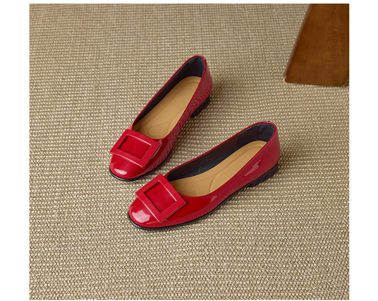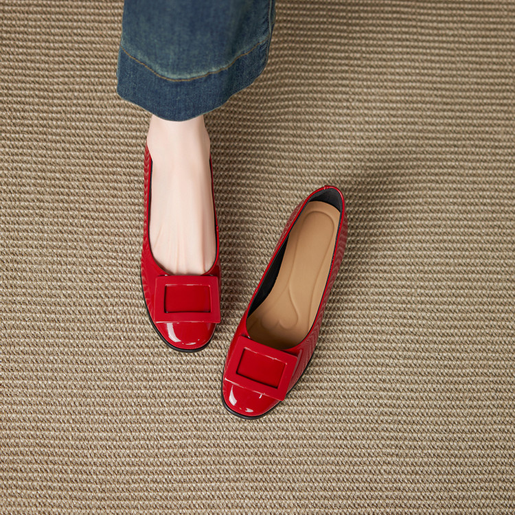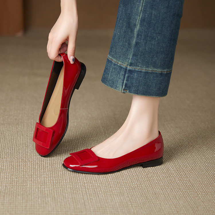 【预售5天】舒适百搭方扣浅口单鞋女圆头漆皮低跟工作鞋平底鞋女YS&A1820