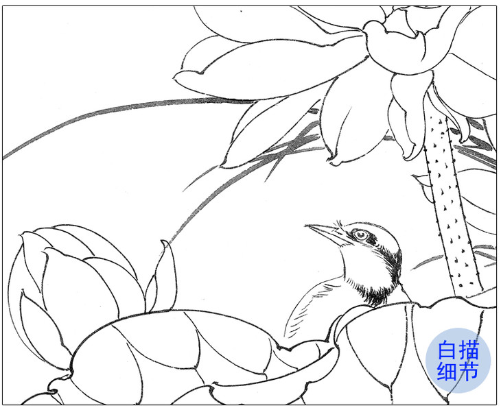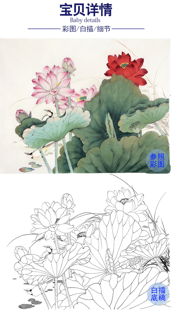 陈军工笔花鸟白描底稿-荷花-斗方小品册页-多种白描尺寸可选 CJ54