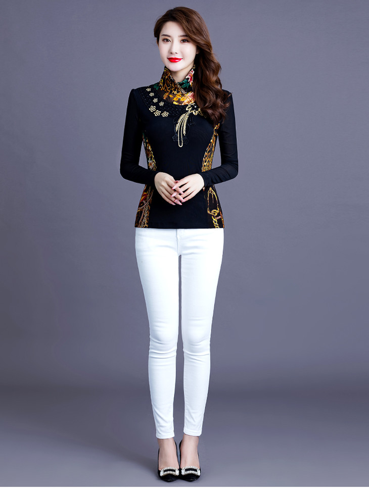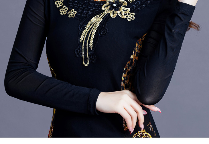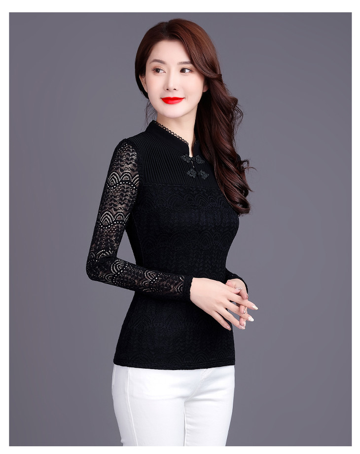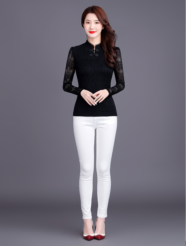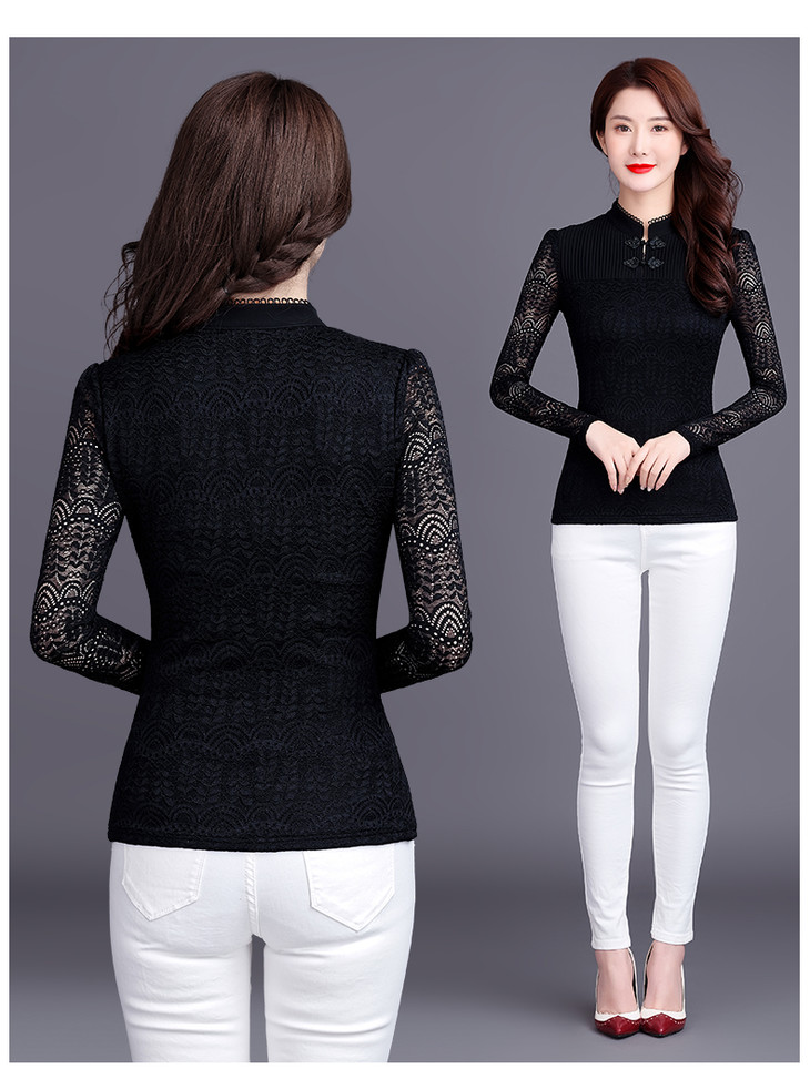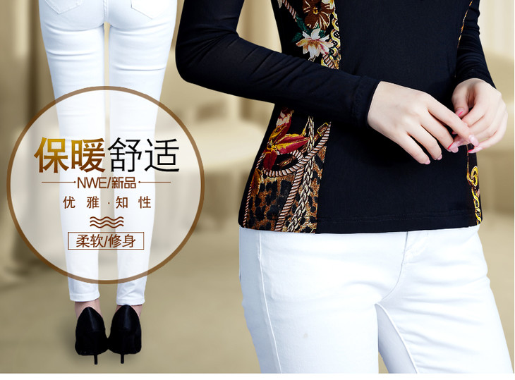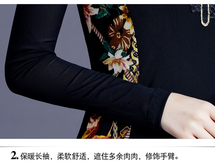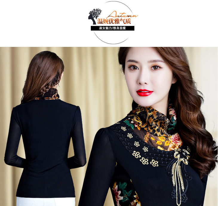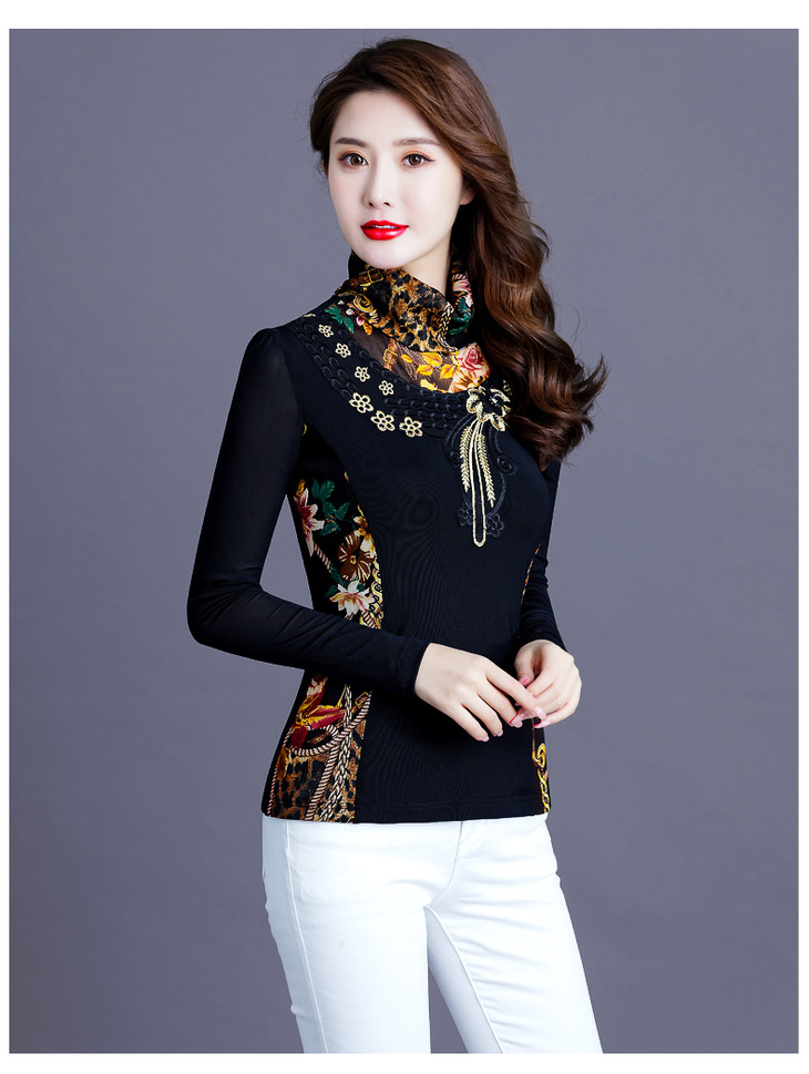 W-36645秋冬季新款时尚洋气网纱高领镂空碎花保暖打底衫
